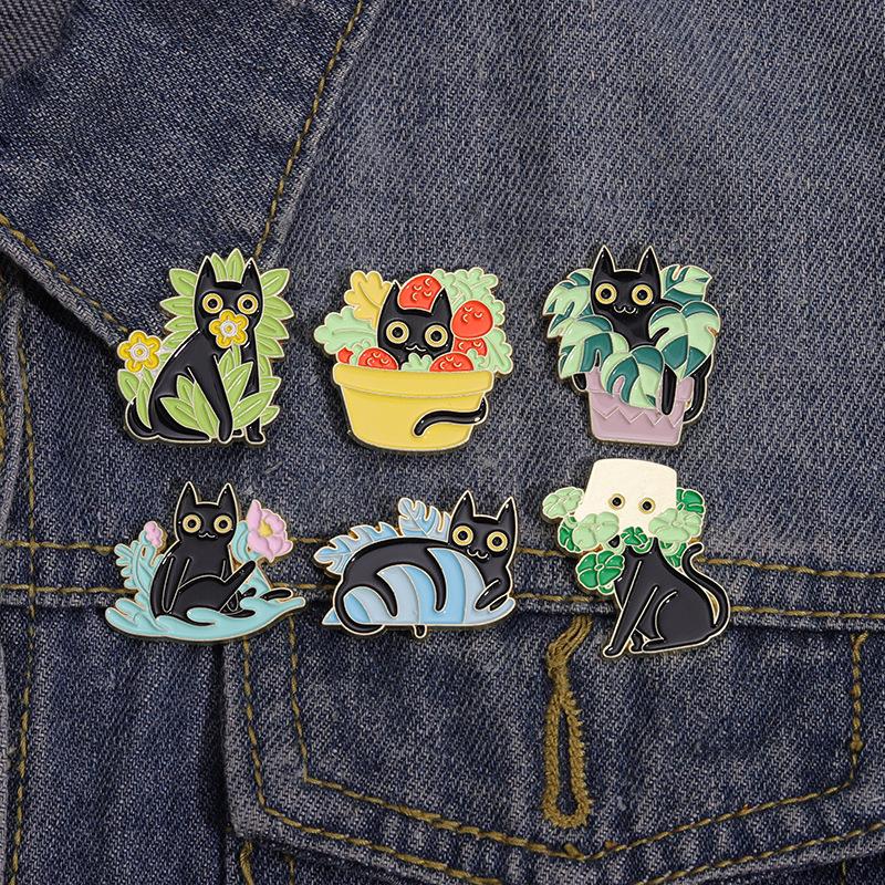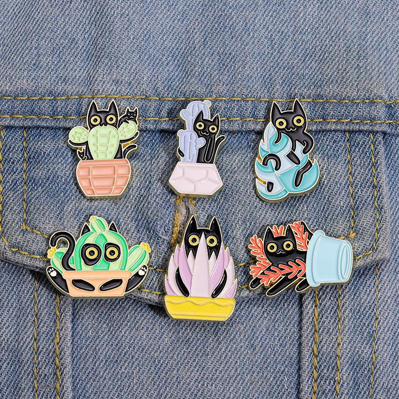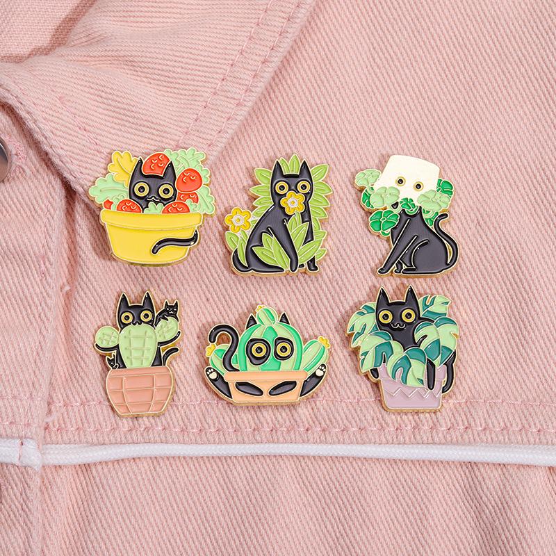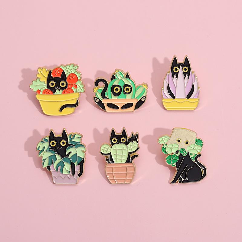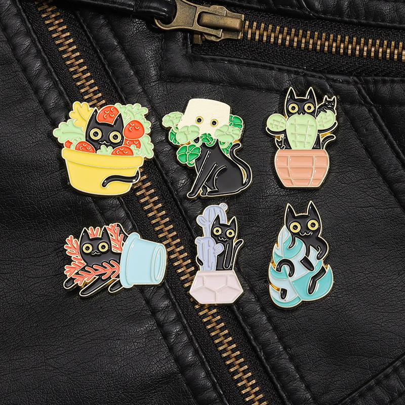 Broche de gato con forma de maceta, insignia de metal, alfiler para uniforme, broche para la cintura, pequeño ramillete con borde cruzado.