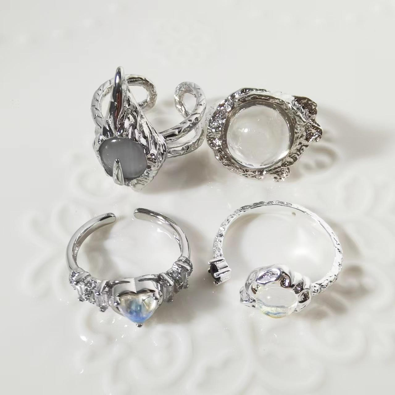 Corea del Sur lujo ligero nicho diseño cristal transparente piedra lunar anillo de metal femenino abierto ajustable anillo de temperamento