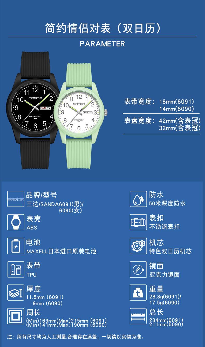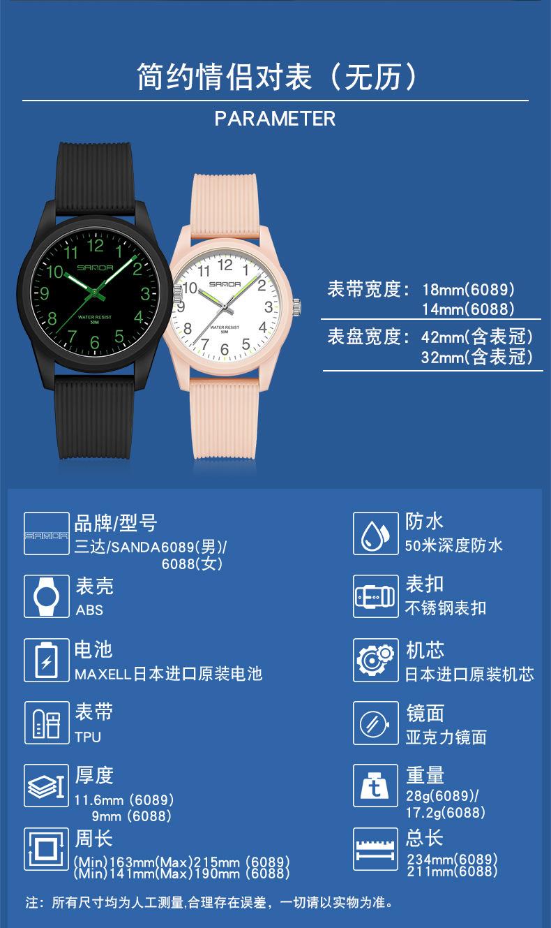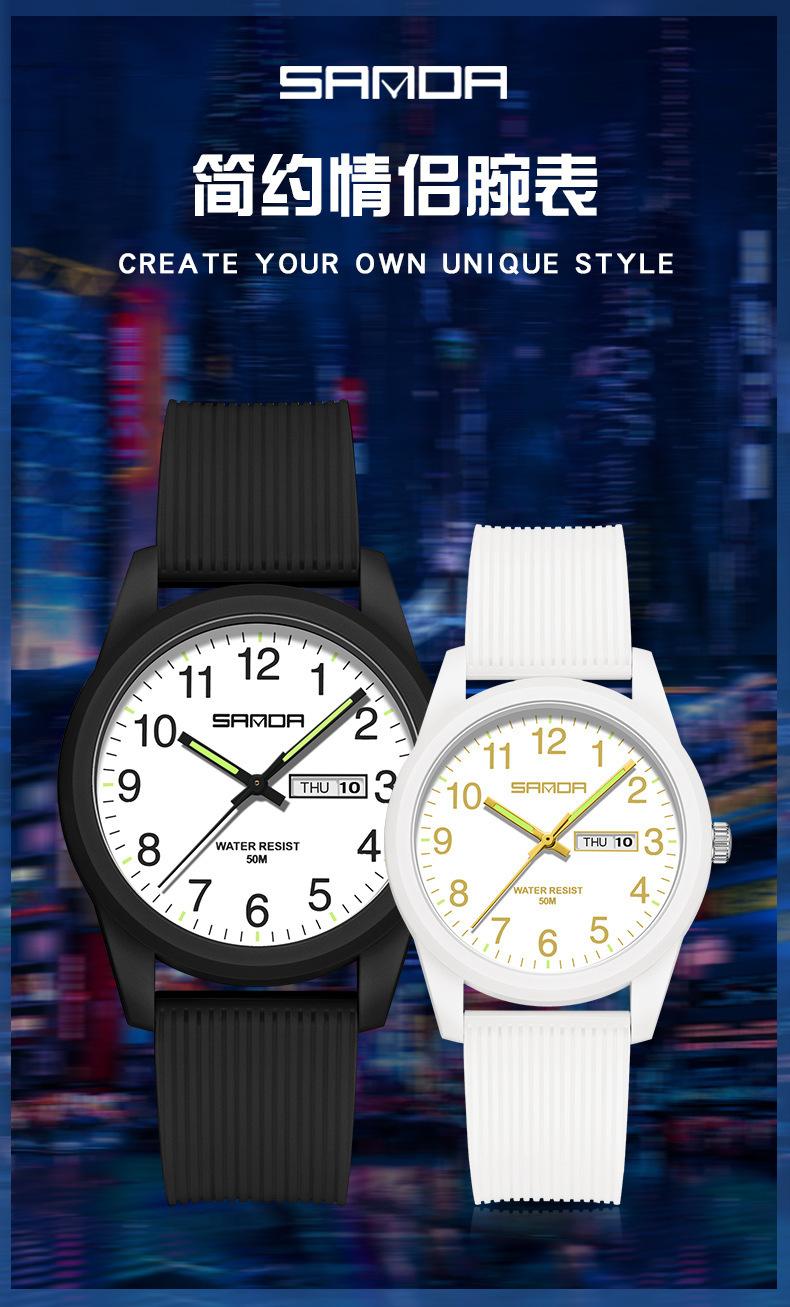 SANDA SANDA Calendario de Pareja Tendencia Fresca Ocio al Aire Libre Reloj de Cinta 6088 para Adolescentes y Estudiantes Masculinos y Femeninos