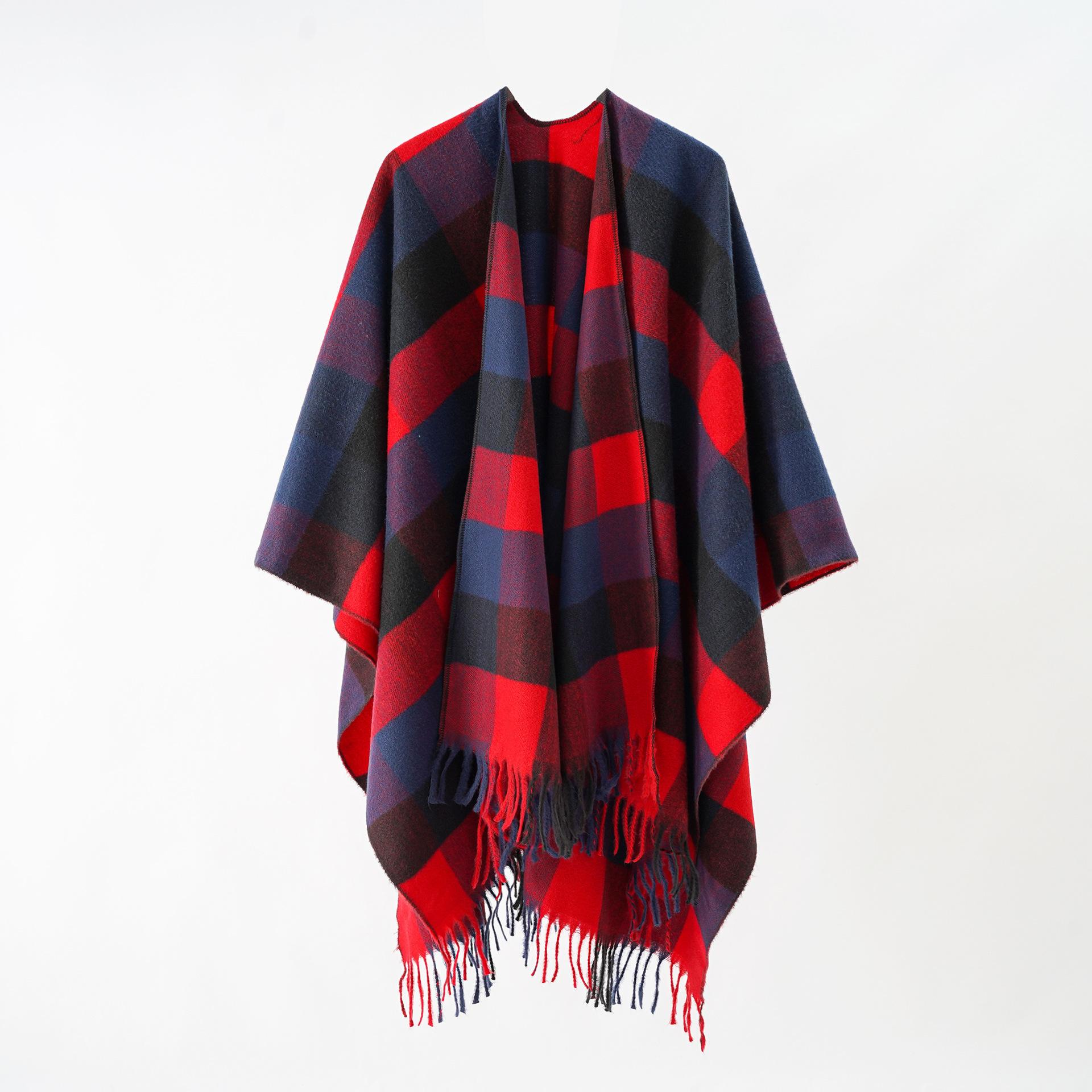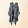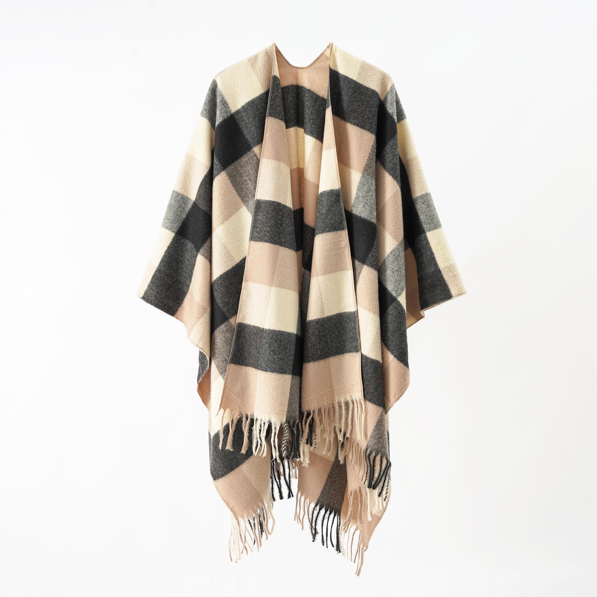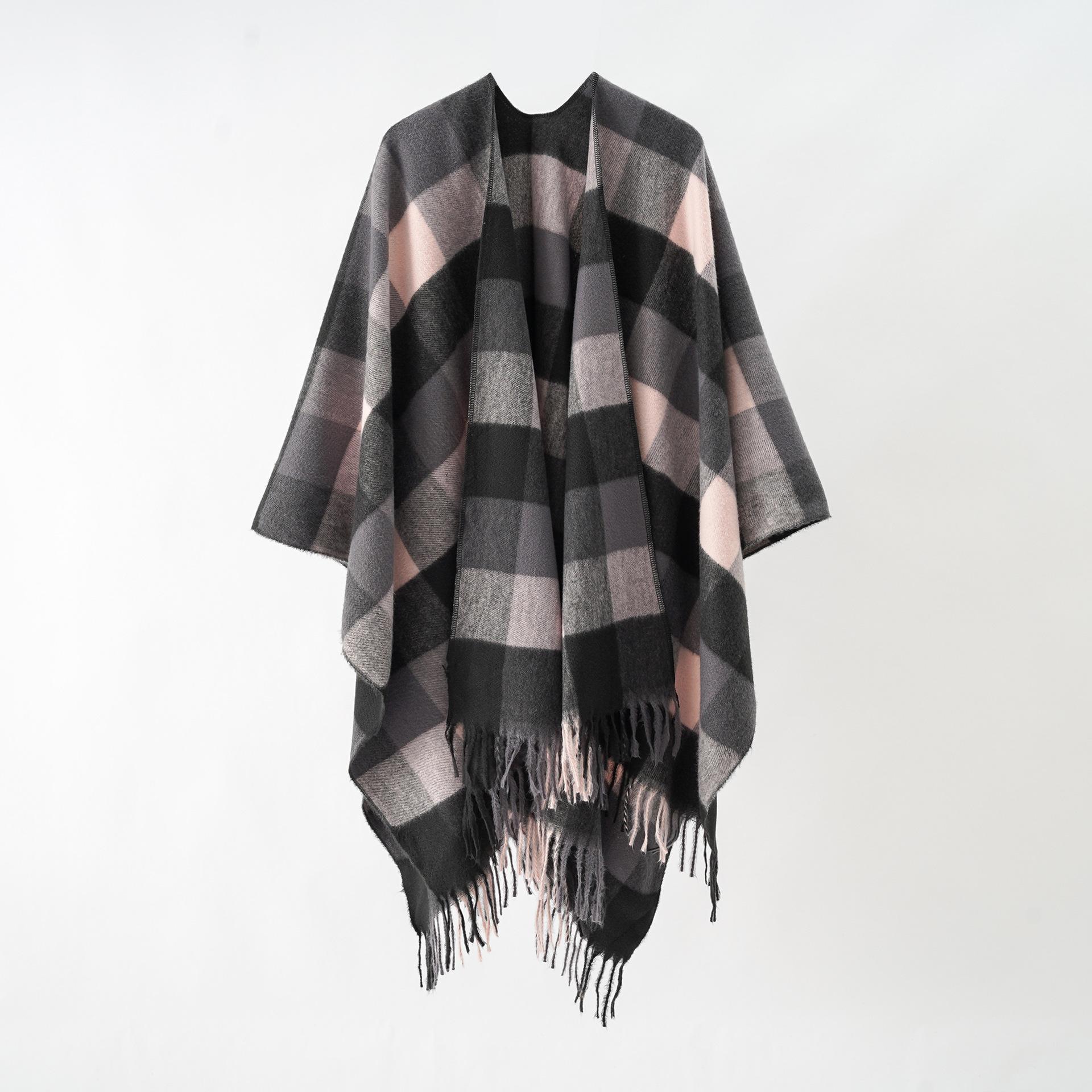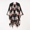 Nueva capa dividida con borlas a cuadros gruesas para mujer, estilo europeo y americano, para otoño e invierno.