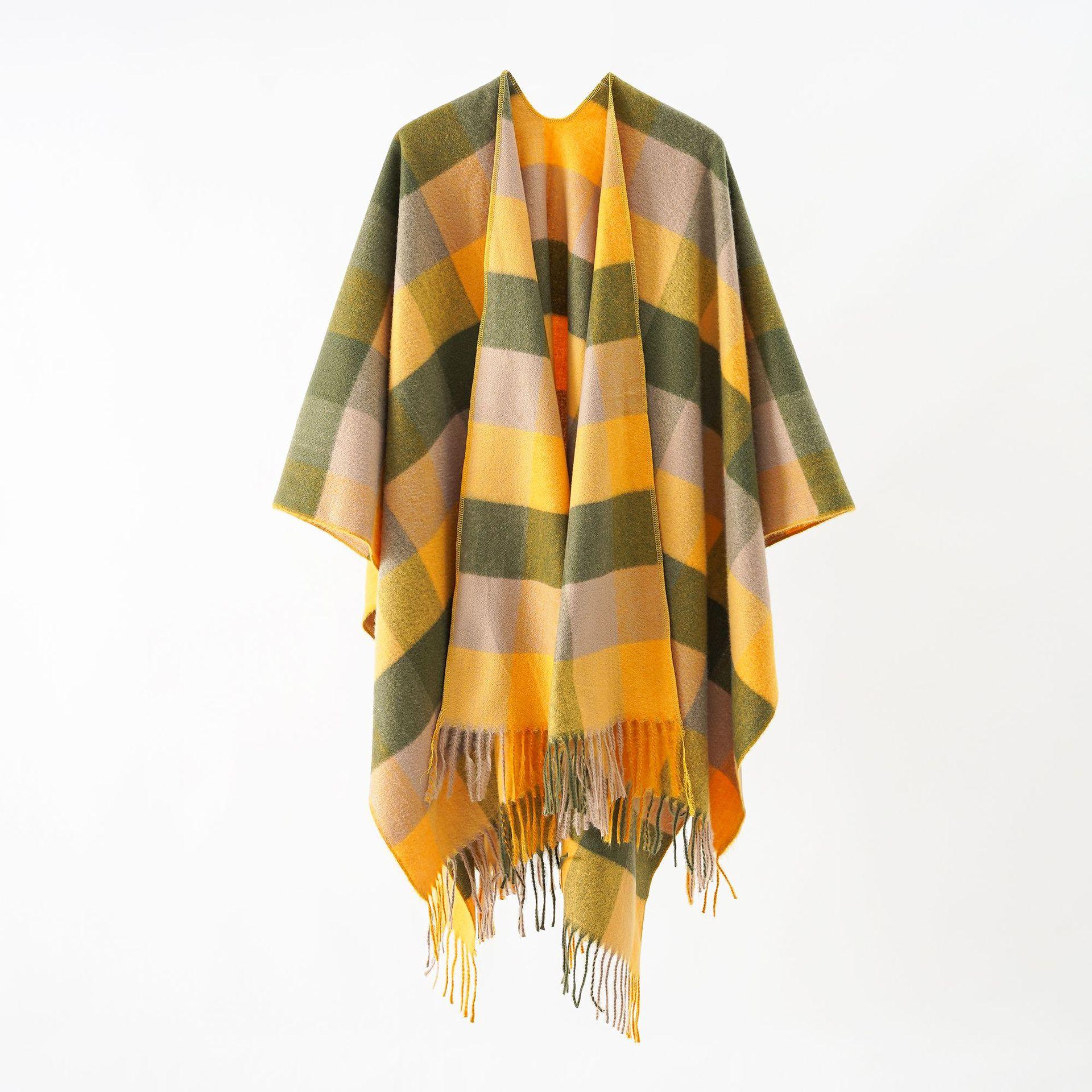 • Capa exterior tipo chal a cuadros europeos y americanos con degradado de Amazon transfronterizo 2024, capa exterior cálida con borlas para otoño e invierno