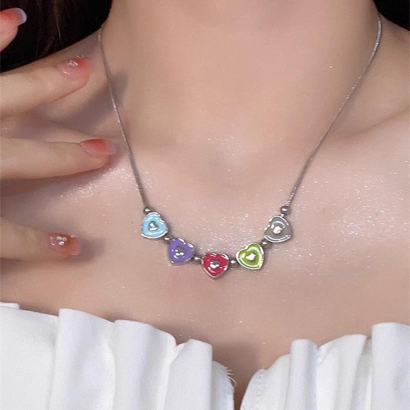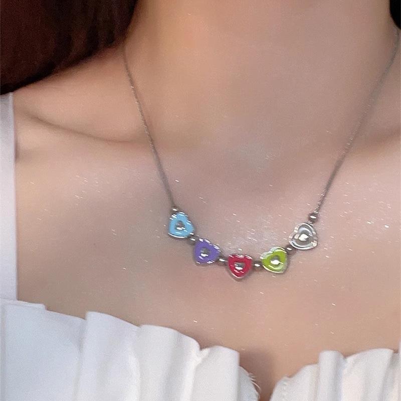 Collar de amor colorido para mujer, diseño avanzado de verano, estilo dulce y moderno, cadena de clavícula, nuevo estilo 2023, collar de especias