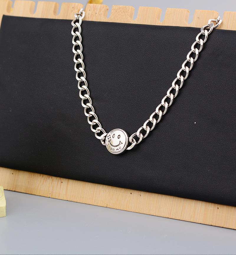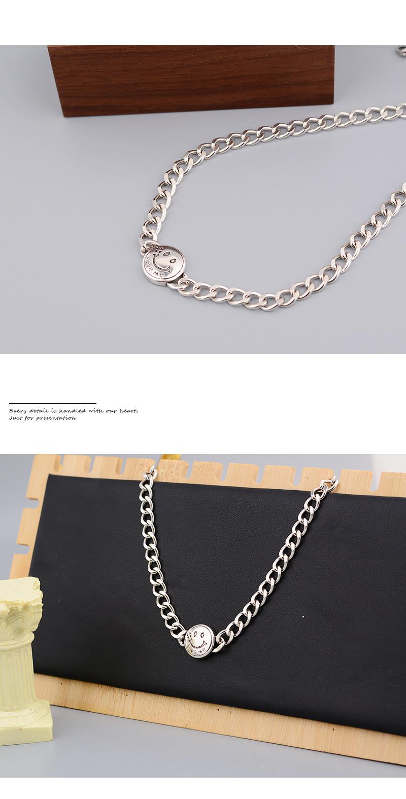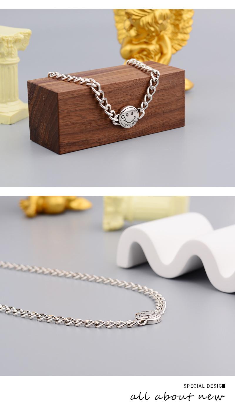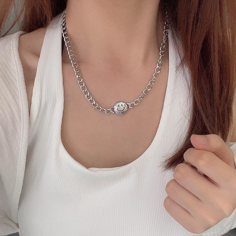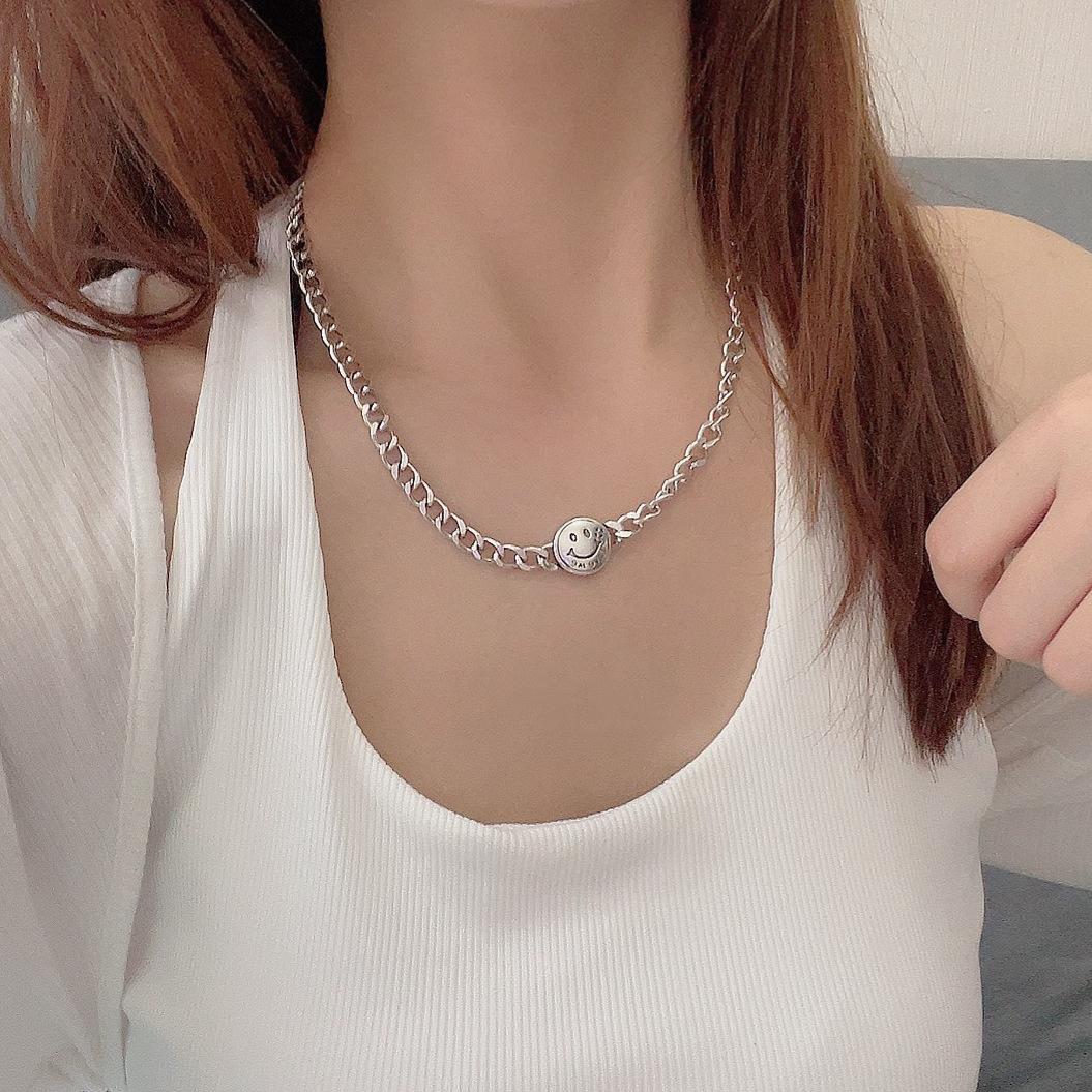 Collar con colgante de sonrisa punk estilo hip hop tailandés de plata para mujer, diseño de nicho, joyería dulce y genial.
