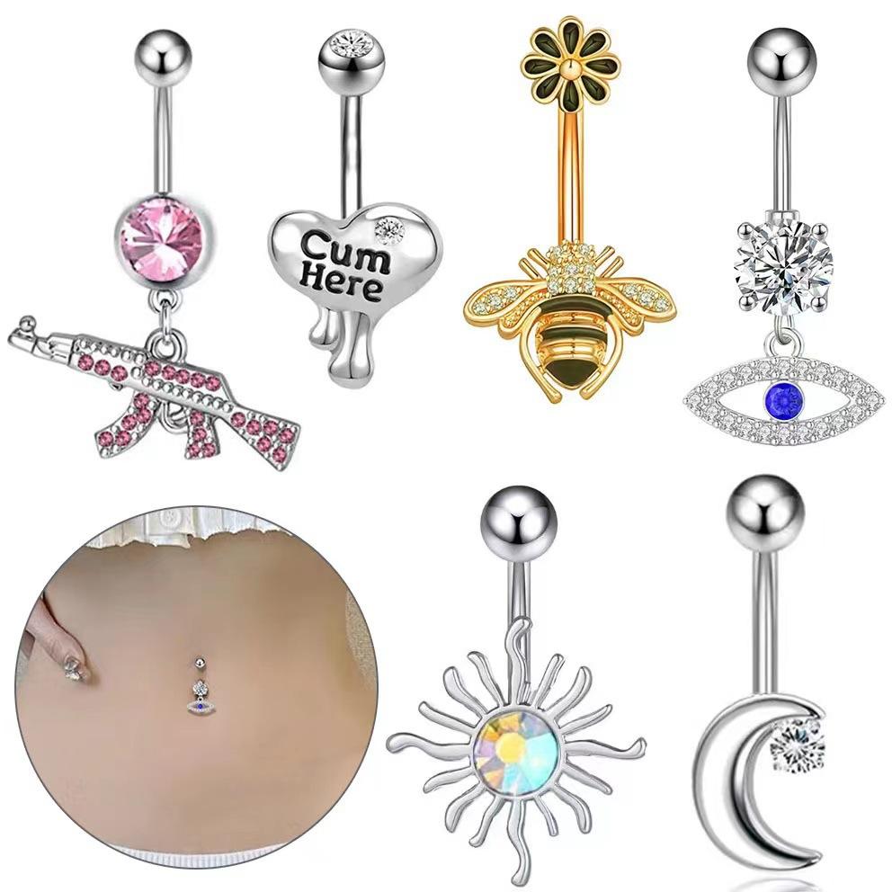 Nuevo europeo y americano anillo para el ombligo pistola ojos de abeja luna clavo para el ombligo acero inoxidable incrustado circonita joyería piercing