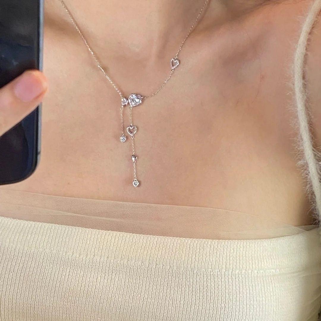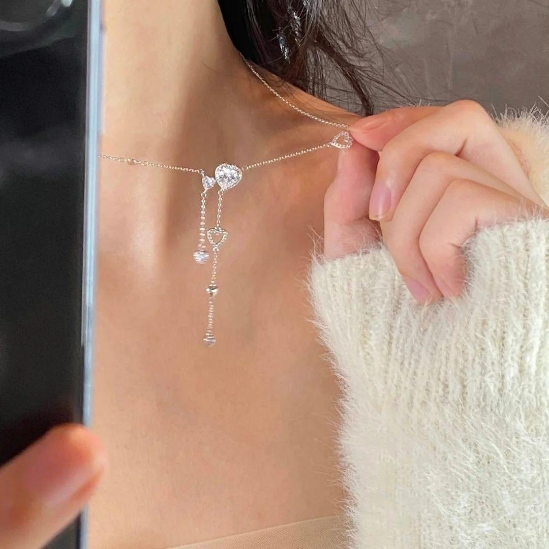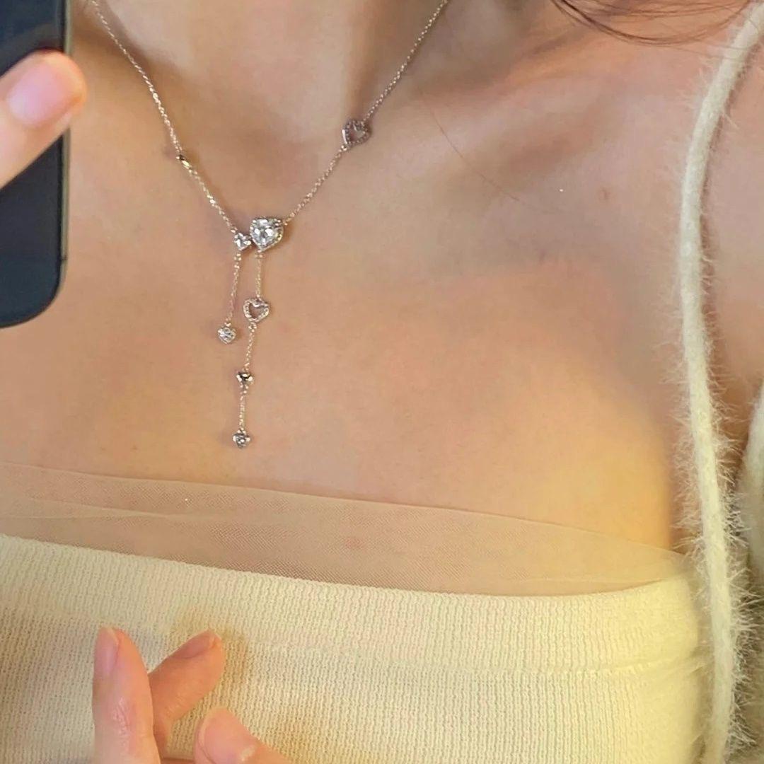 Collar de Borla de Diamantes Completos Amor Dolor de Corazón Exquisito Sentido del Diseño Nicho Temperamento Cool Super Flash Cadena Clavícula Mujeres