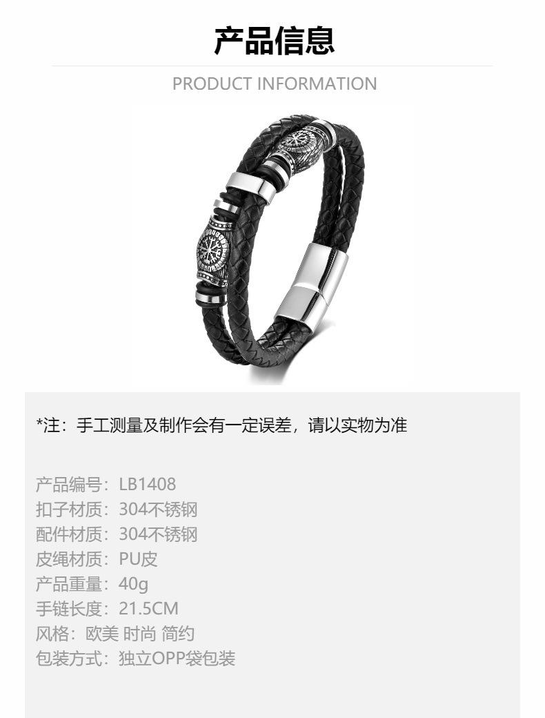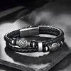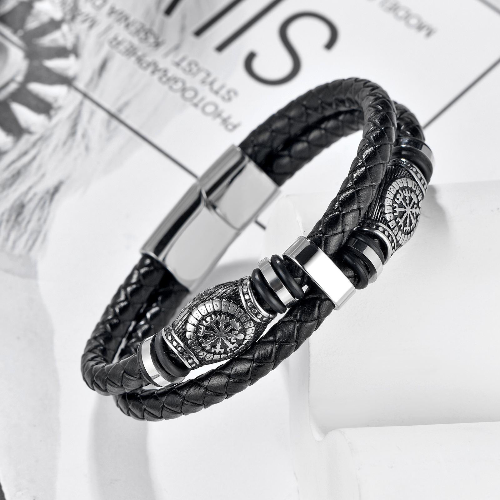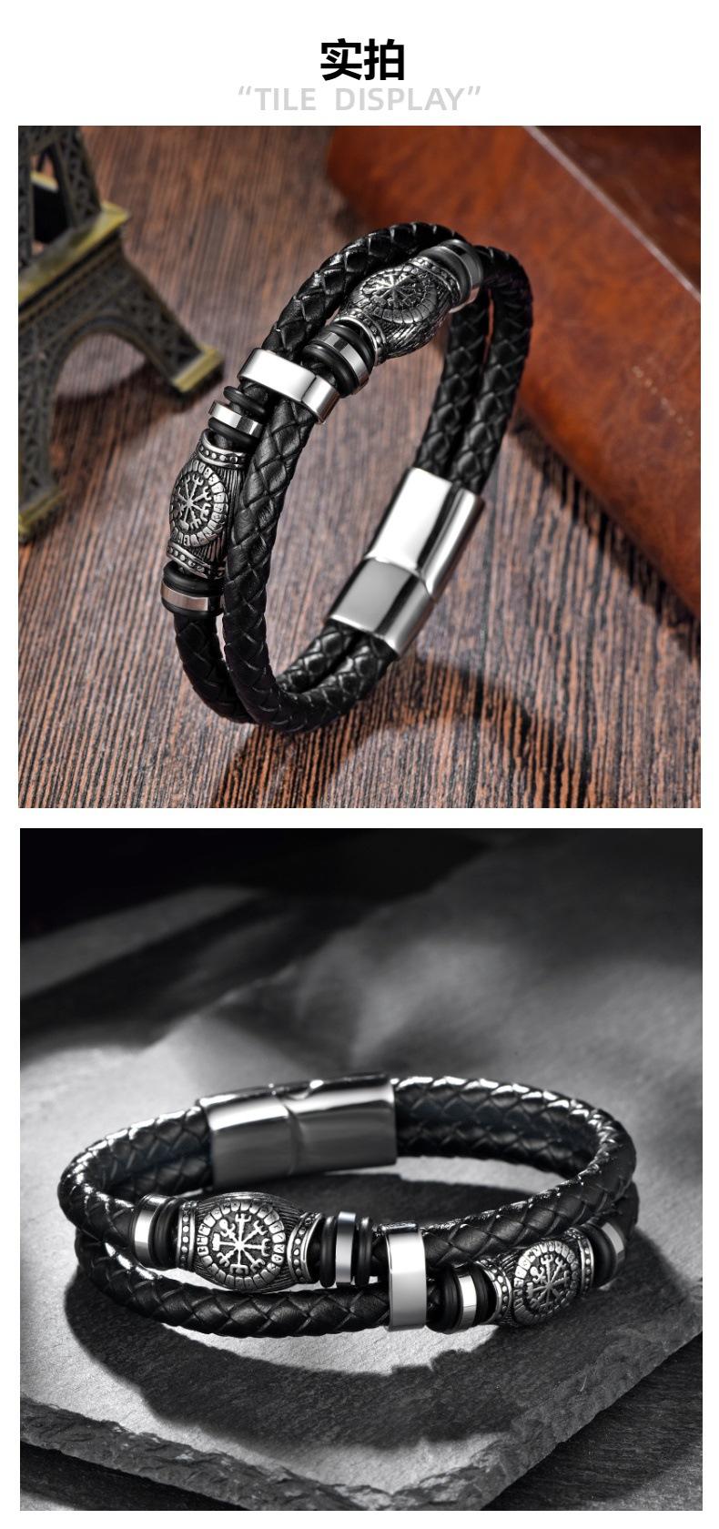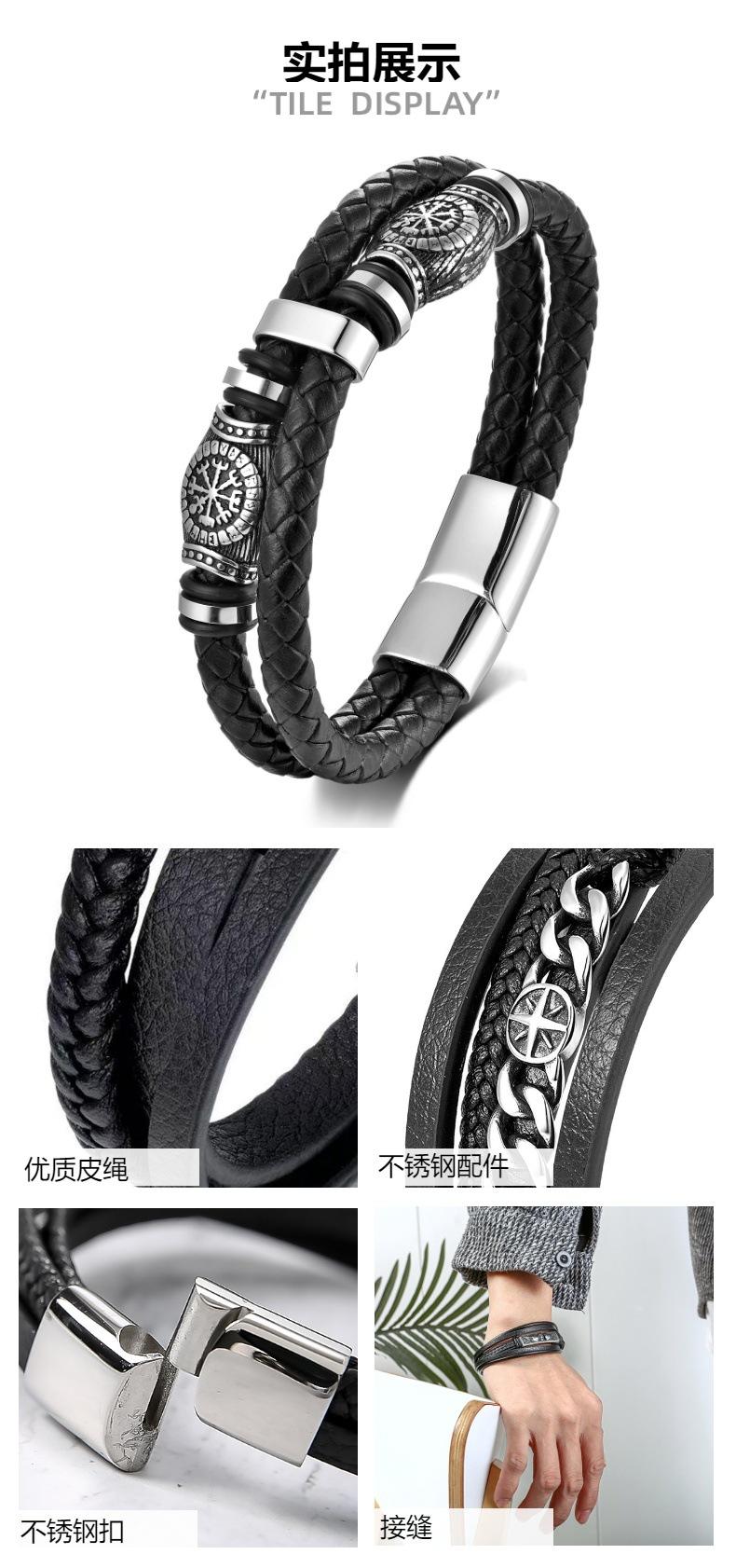 Pulsera de cuero de acero inoxidable para hombre, nueva pulsera de cuero tejido estilo hip hop, serie Nordic Viking, venta al por mayor