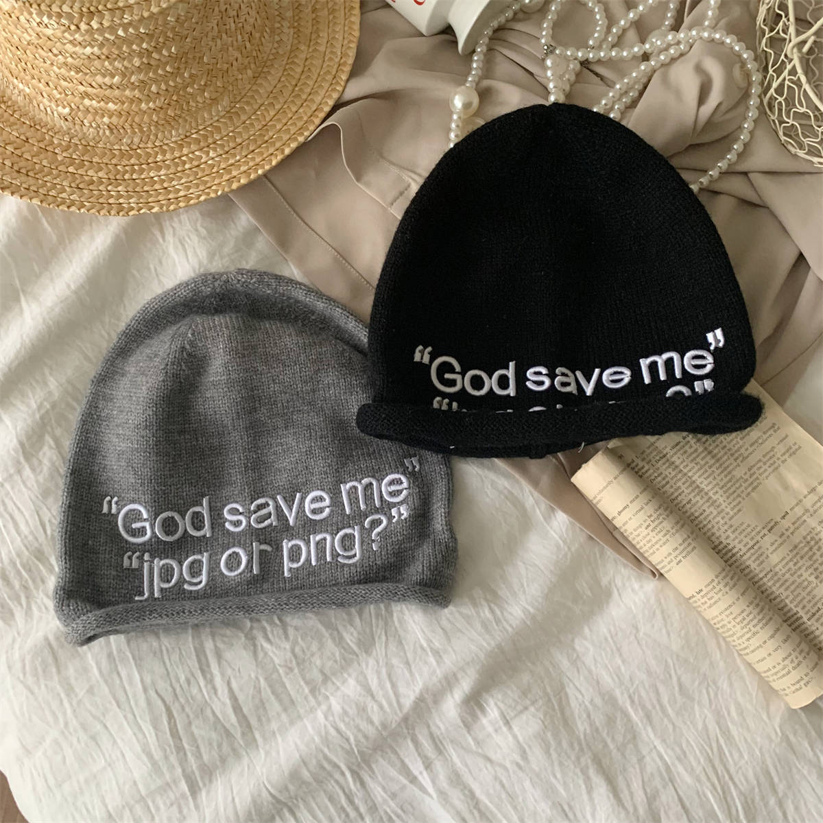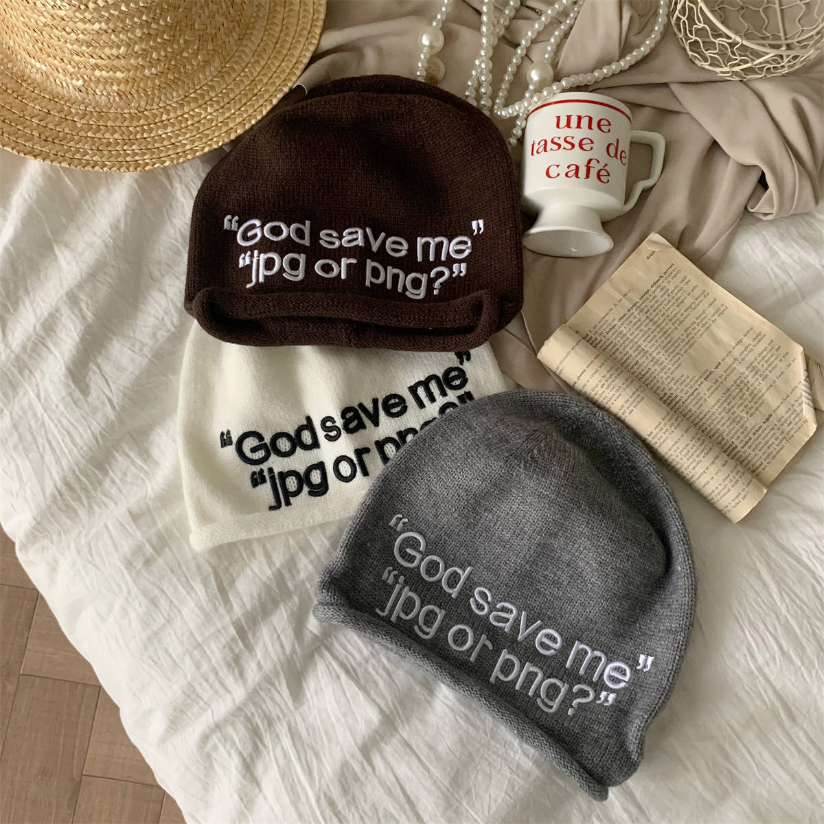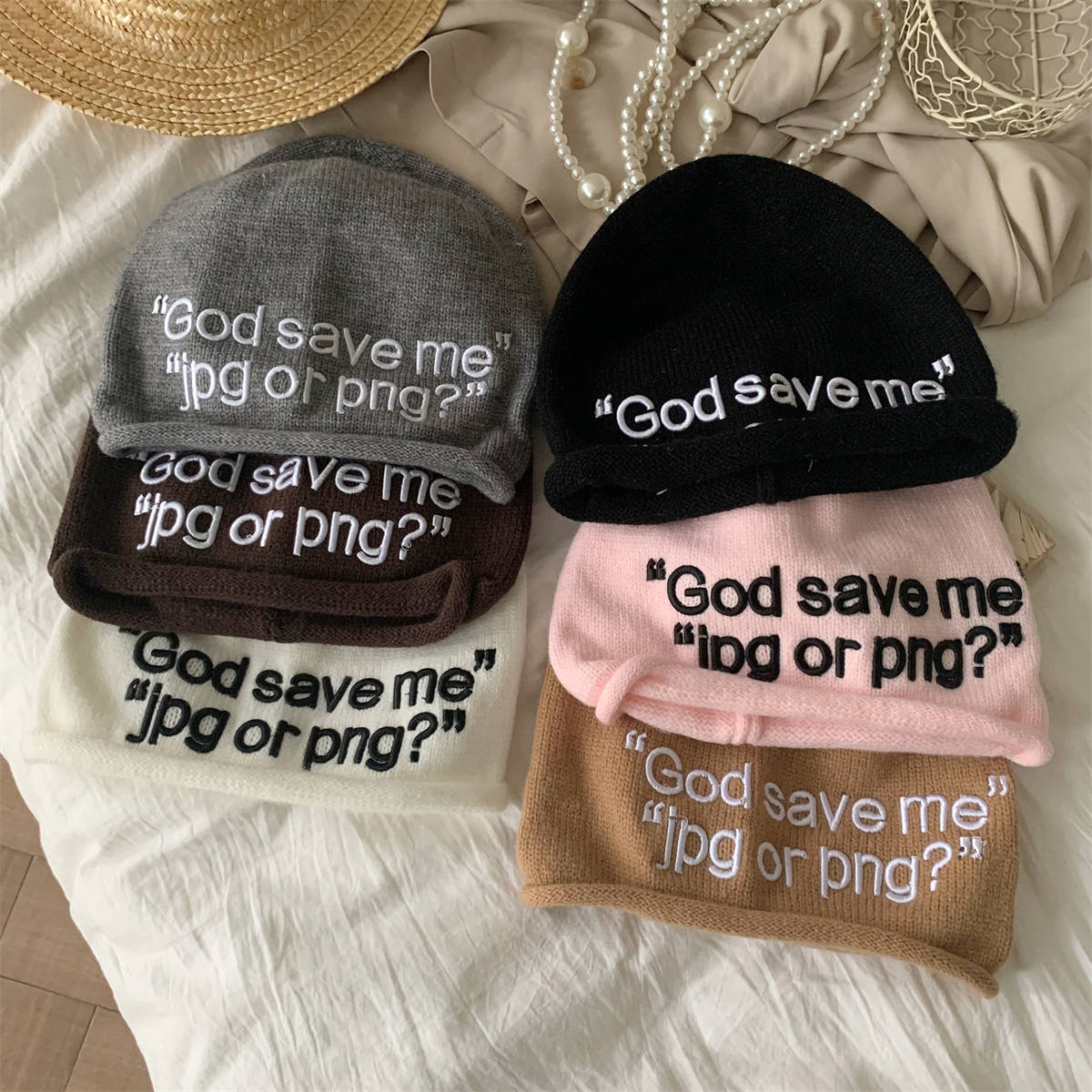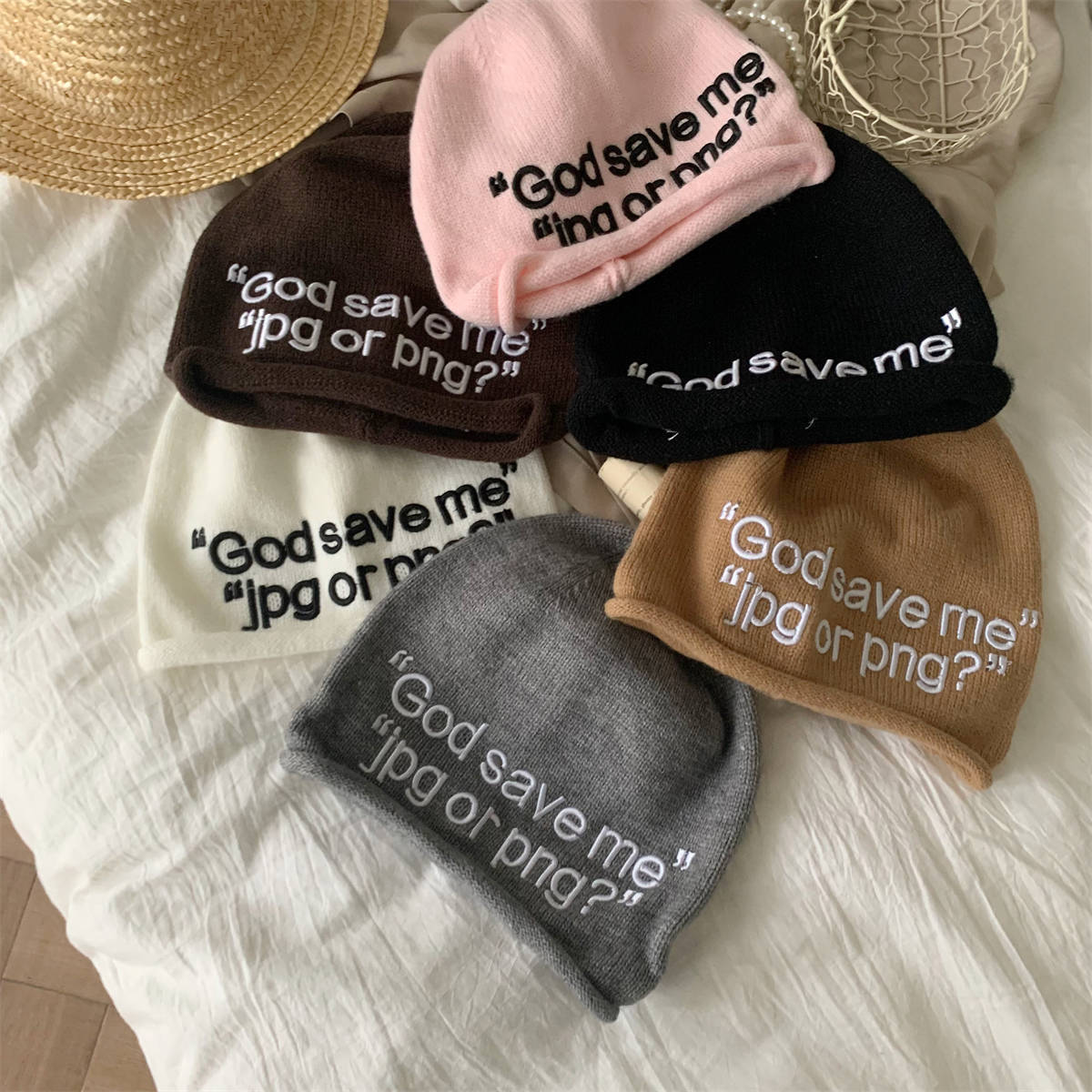 Ins Verano Niña retro bordado de letras show de fotos cara pequeño combinable gorro frío moda para hombre gorro de punto gorro de lana