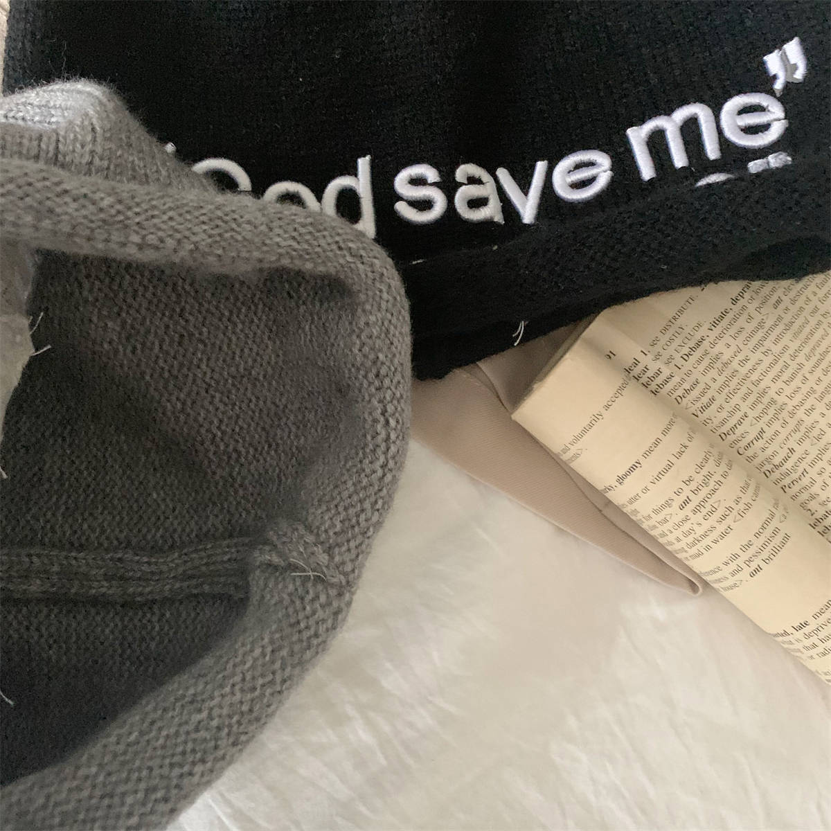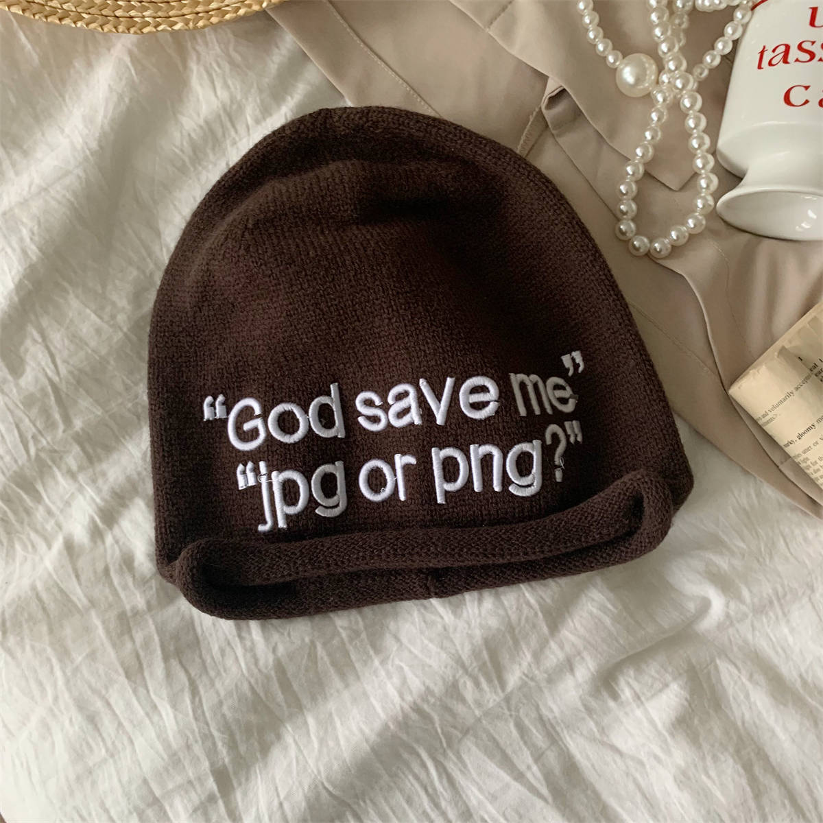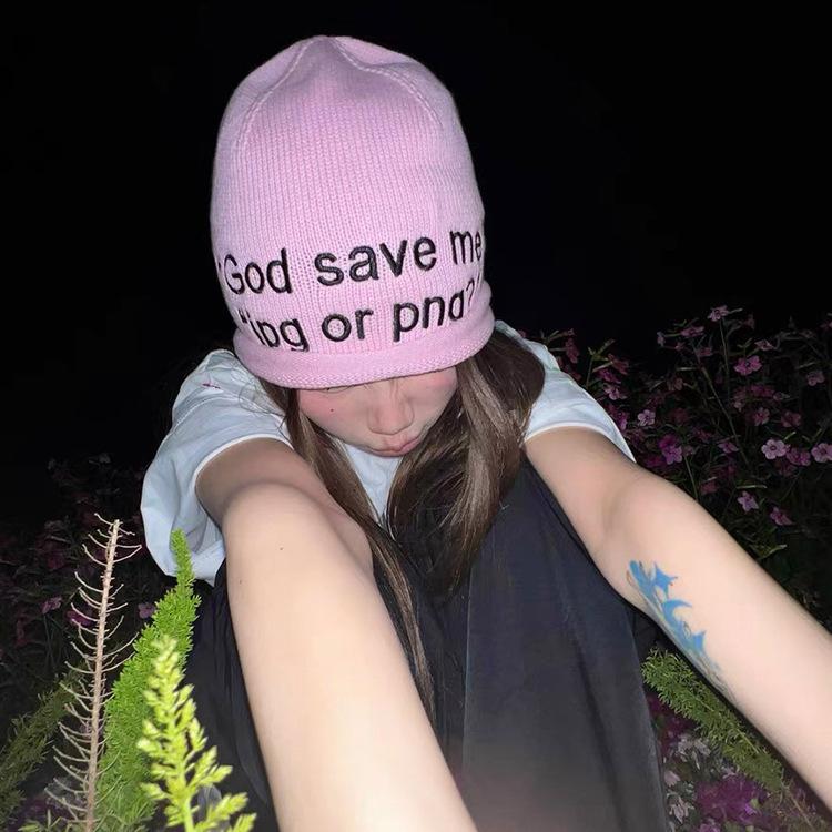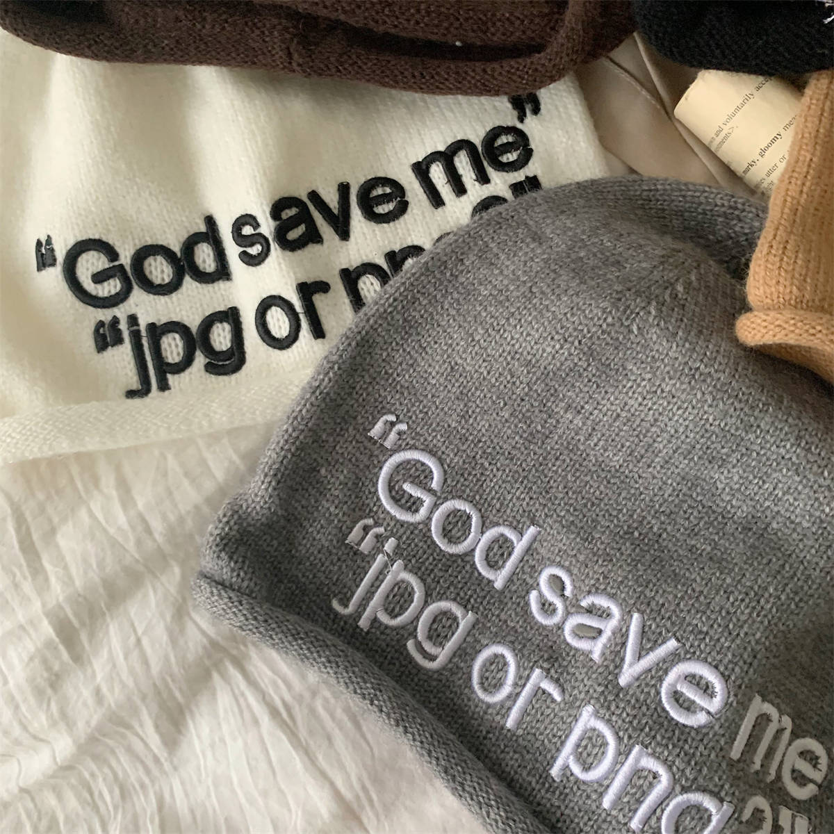 Ins Verano Niña retro bordado de letras show de fotos cara pequeño combinable gorro frío moda para hombre gorro de punto gorro de lana