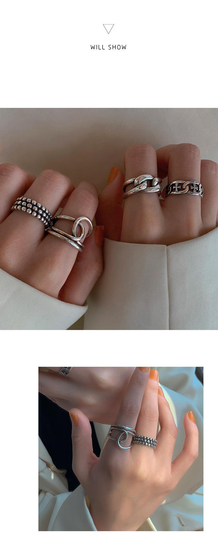 Anillo Hueco de Cruz de Plata S925 Estilo Coreano con Personalidad para Mujer Moda Vintage Línea Envolvente Cruz Apertura Anillo de Dedo