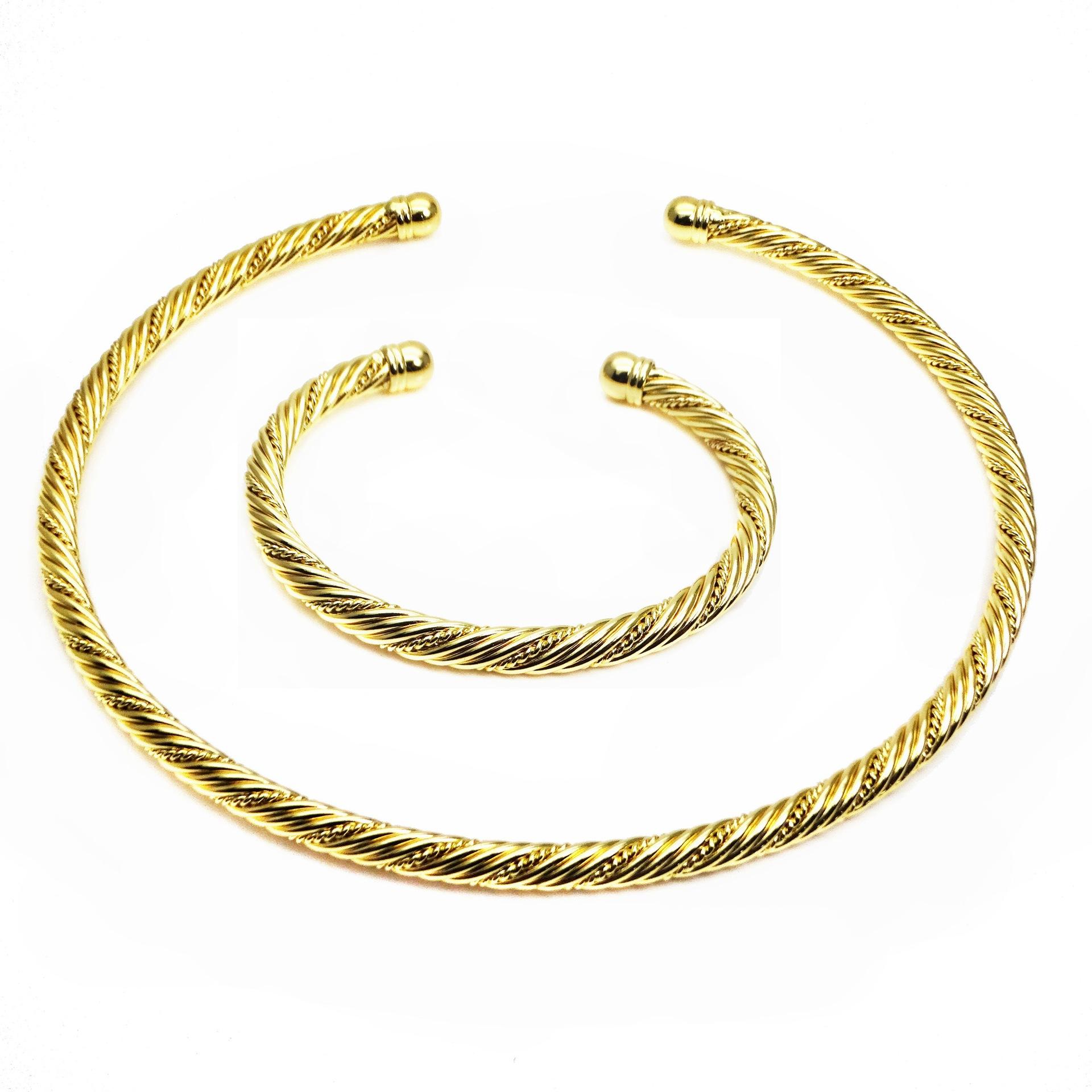 Venta caliente transfronteriza moda exagerada collar pulsera traje cobre chapado en oro pulsera abierta joyería forma de cadena