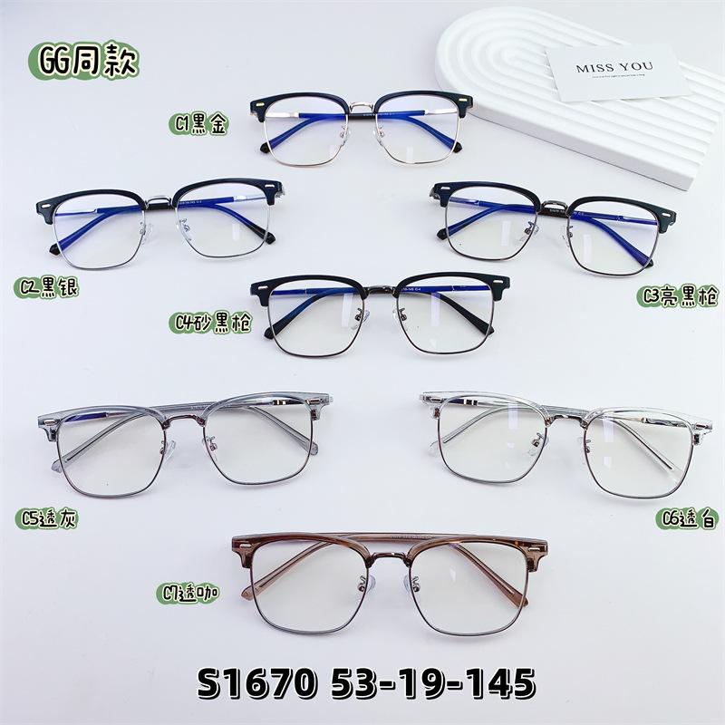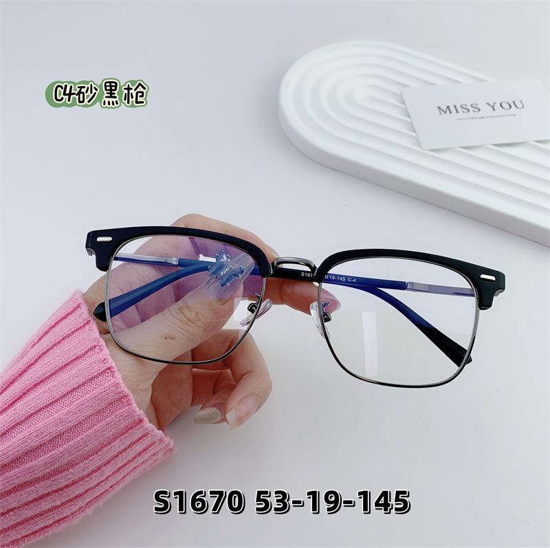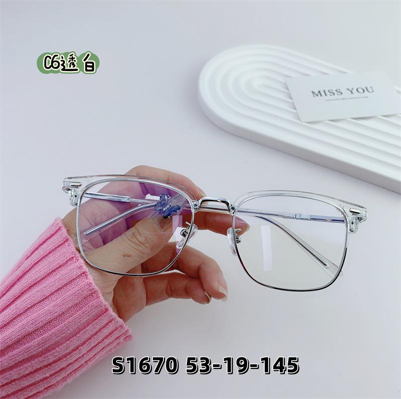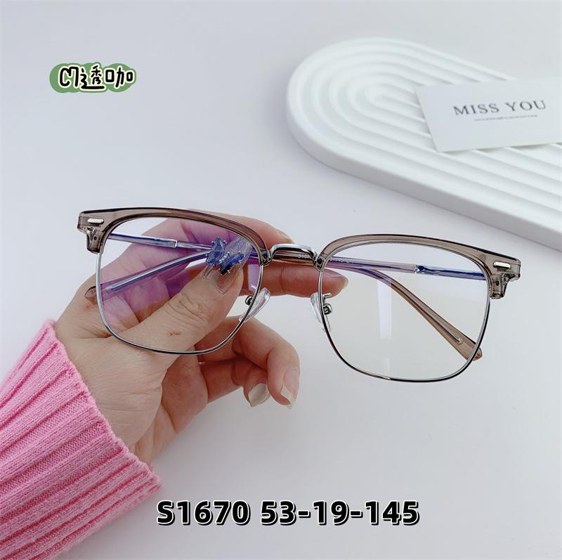 Nuevo armazón de cejas TR metal transparente para negocios hombres y mujeres moderno liso armazón de gafas de luz sencilla anti-luz azul 1670
