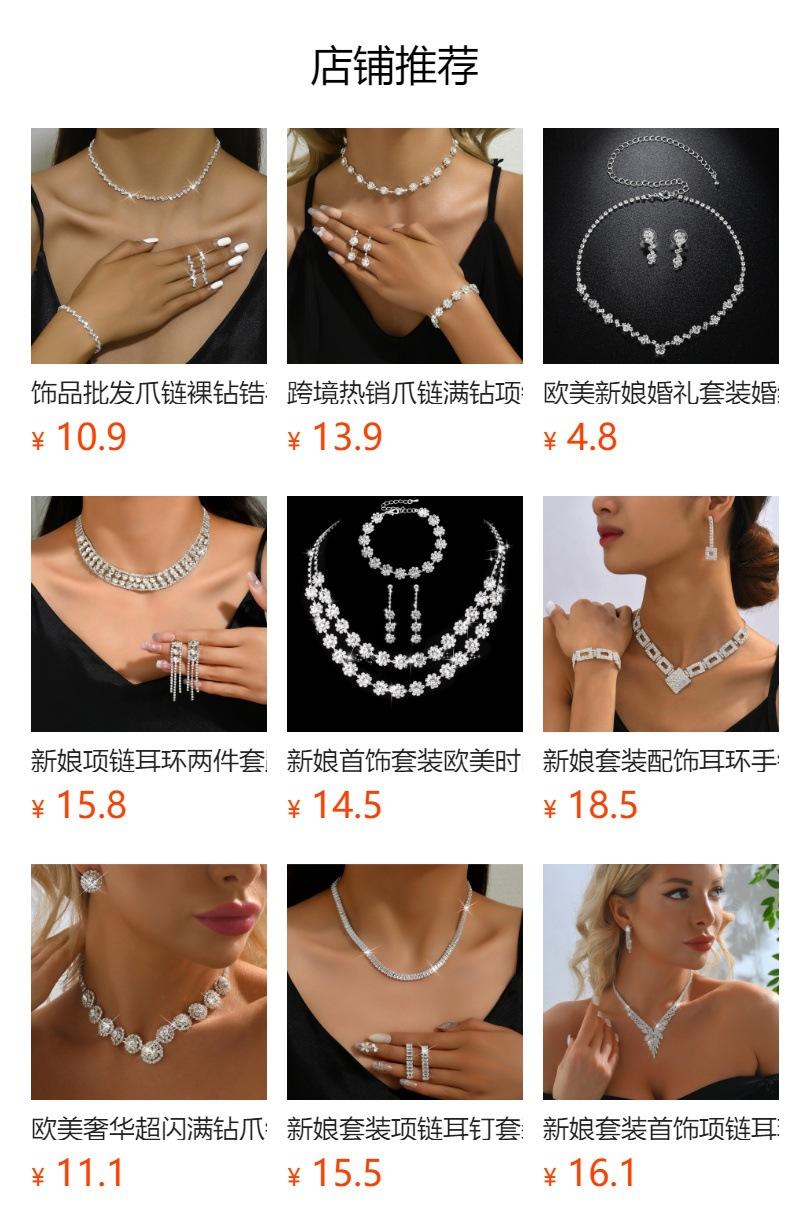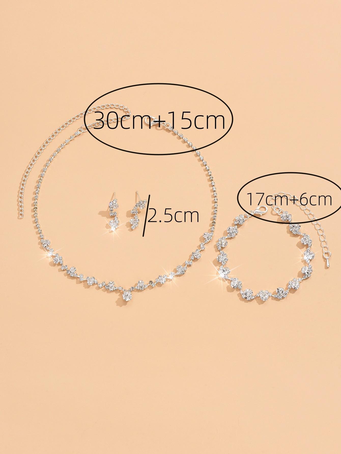 Conjunto de tres piezas de collar, pendientes y pulsera con diamantes para clavícula, accesorios para vestido de cena, joyería sencilla y exquisita.