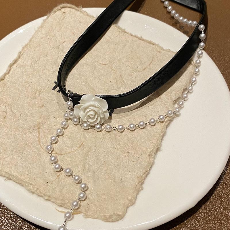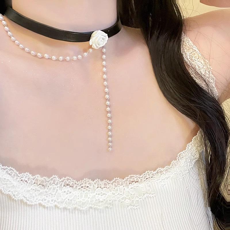 Collar con borlas y perlas rosas para mujer, nuevo estilo 2024, accesorios de collar, gargantilla de cadena de clavícula de alta calidad