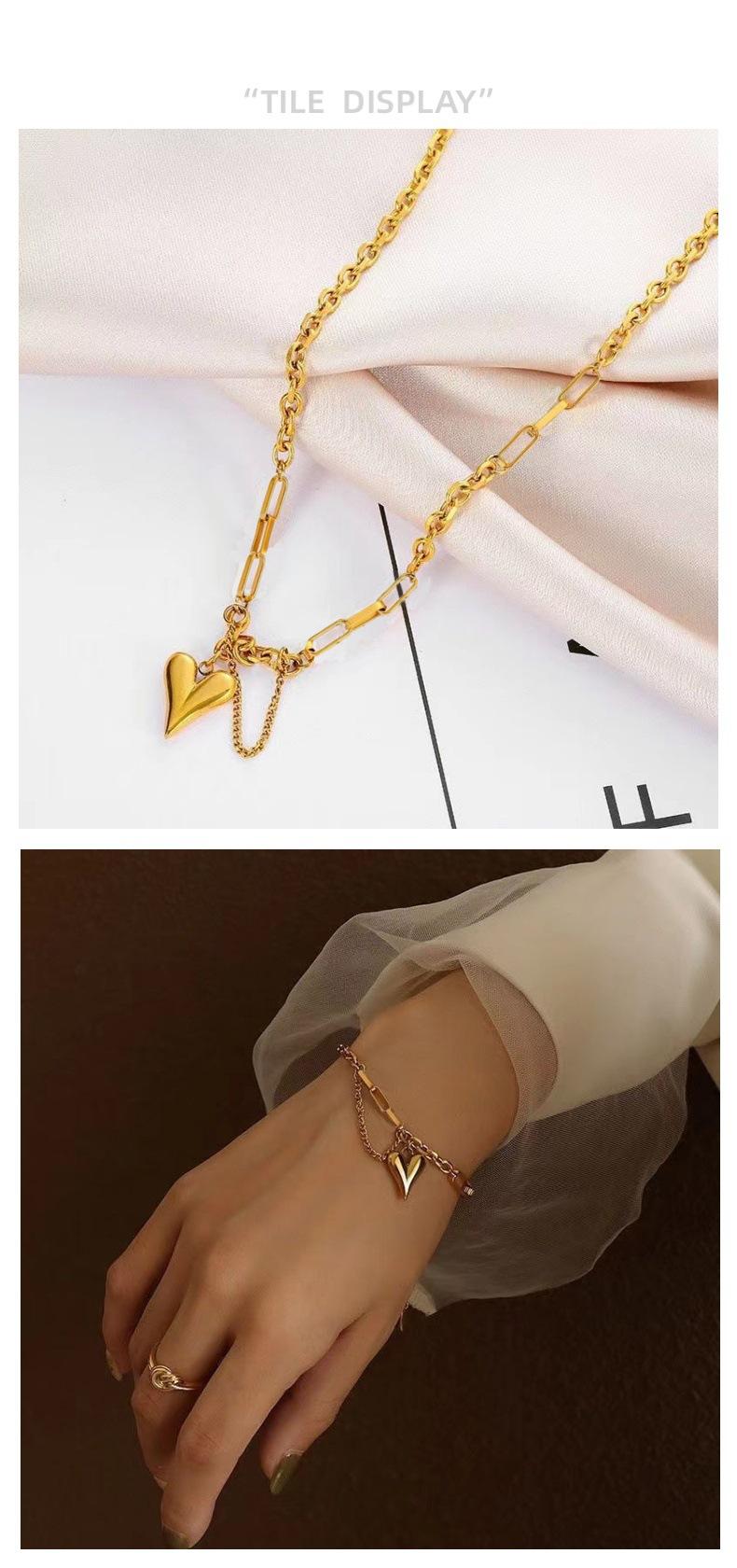 Gold Heart Necklace, Steel heart-shaped necklace, Gold Heart-Shaped Bracelet