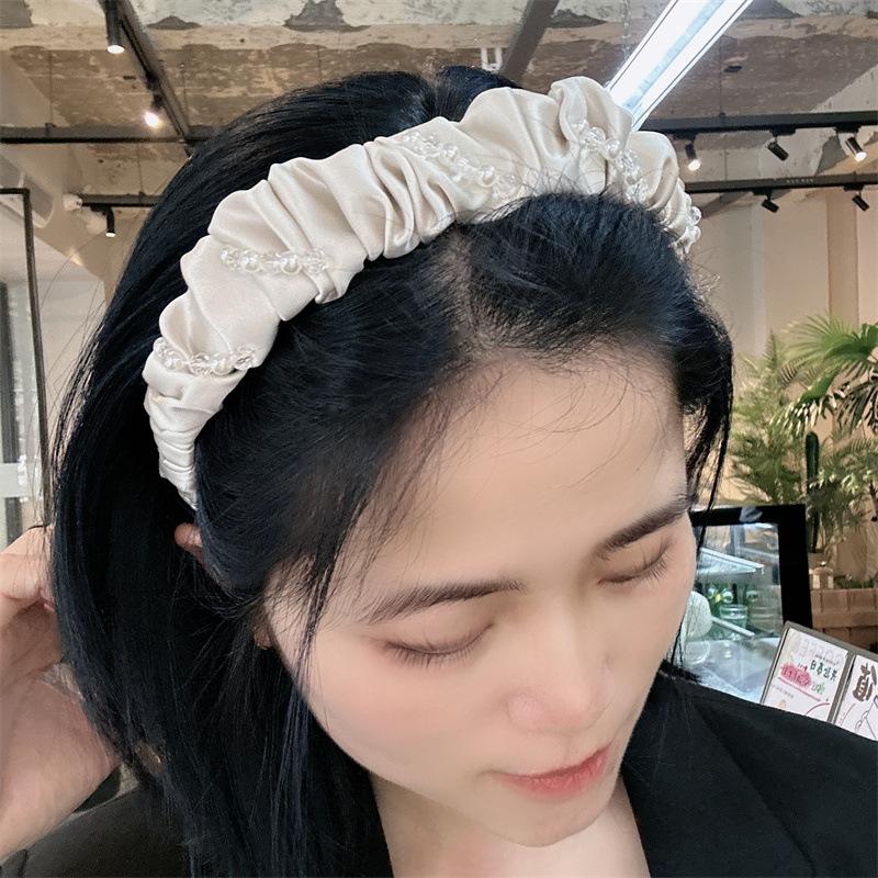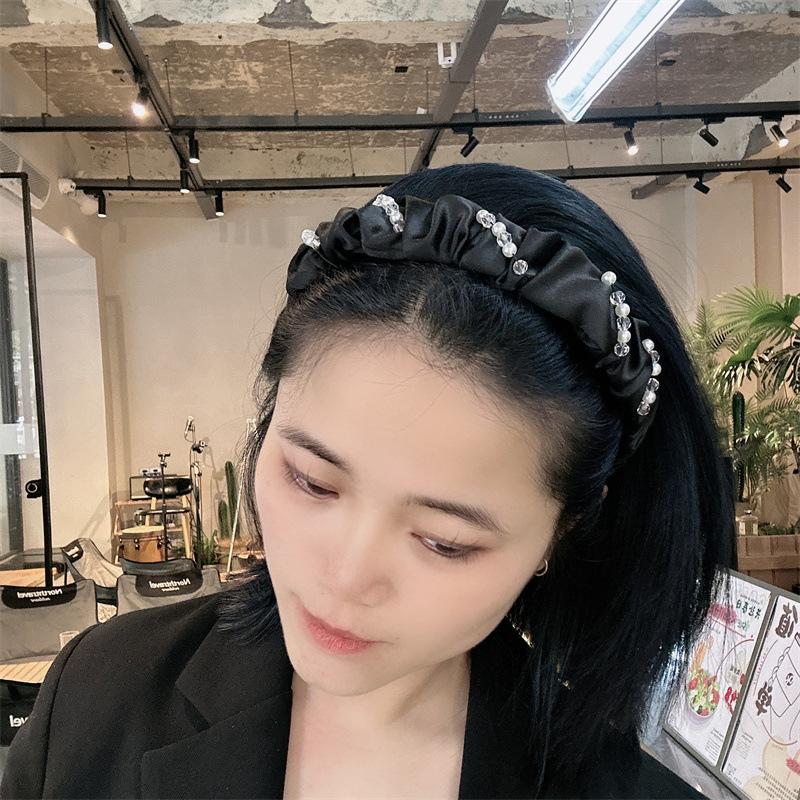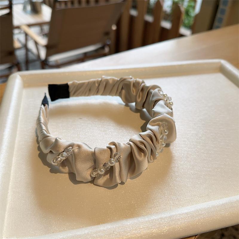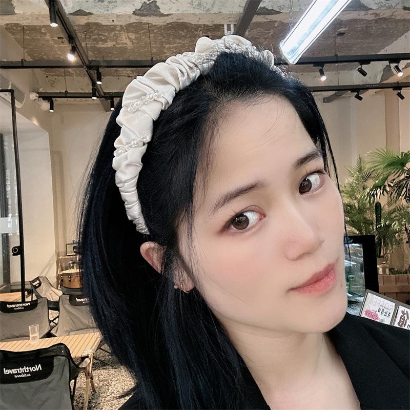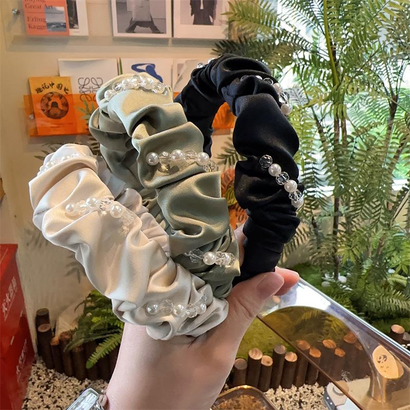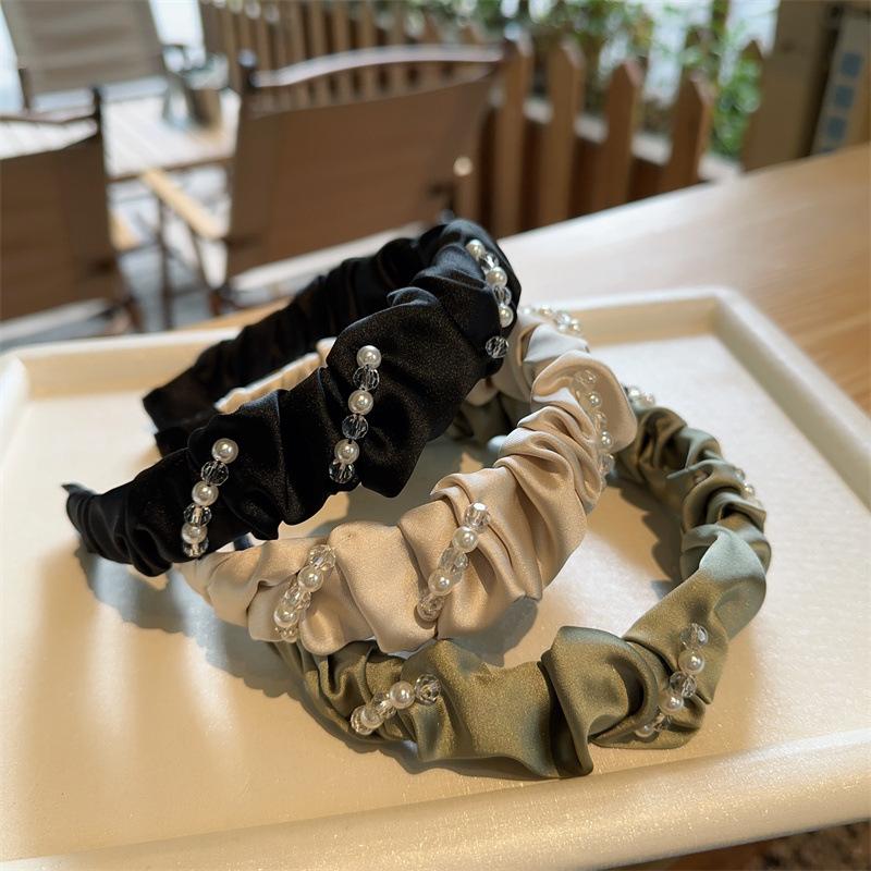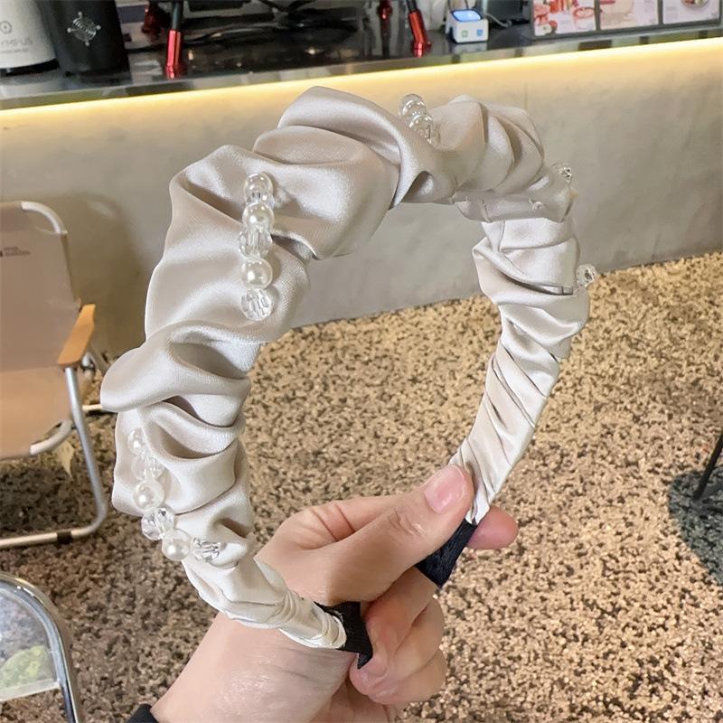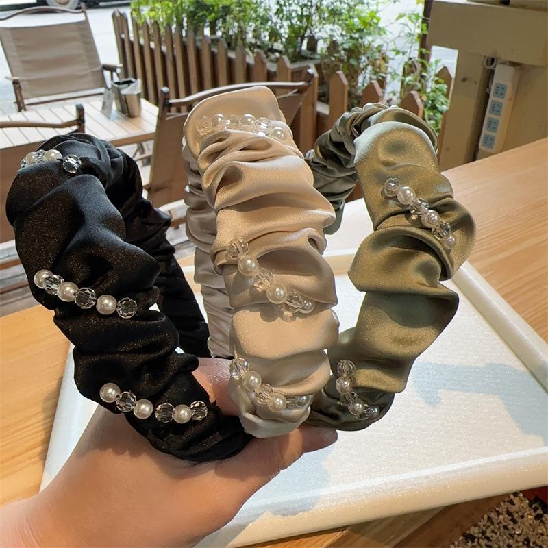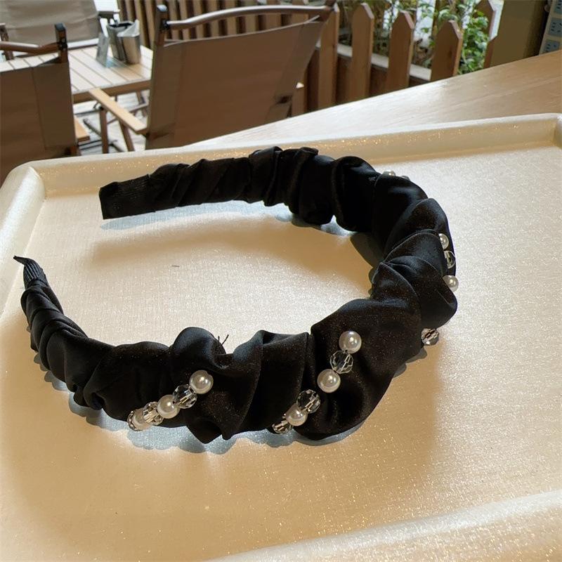 Aro para el pelo de tela con pliegues de hada para uso diario coreano, con perlas de imitación de cristal envuelto en una dulce red roja para niña, accesorios para el cabello