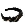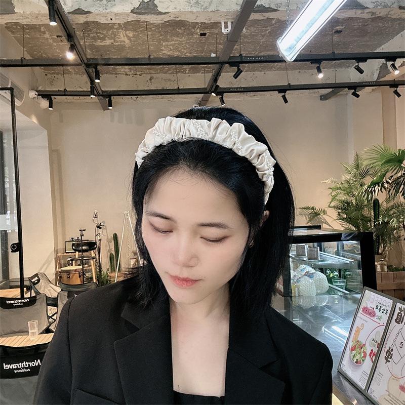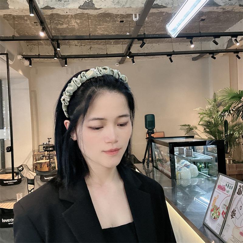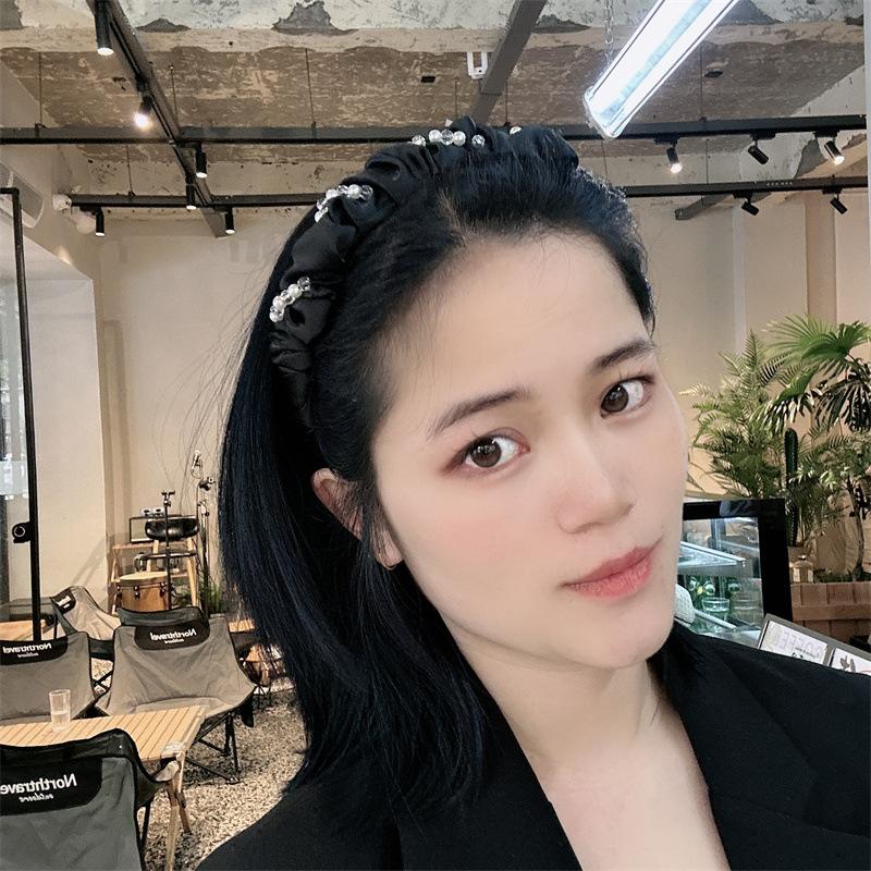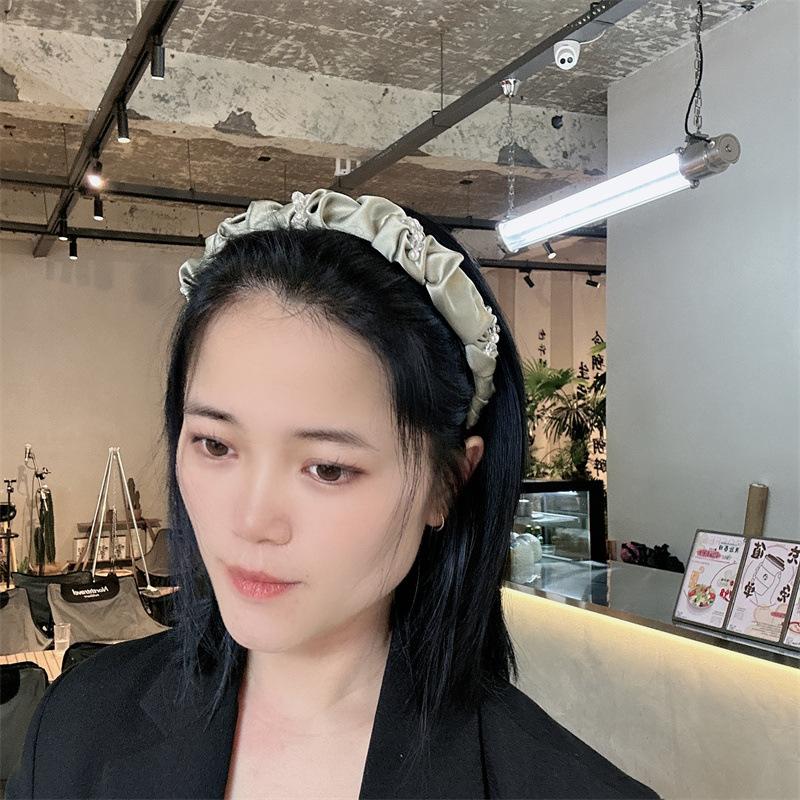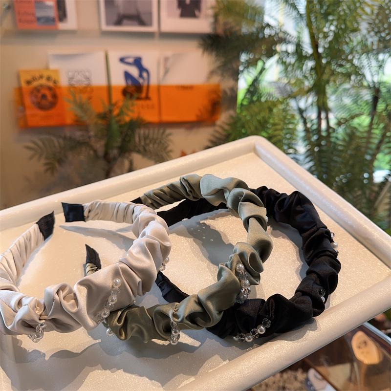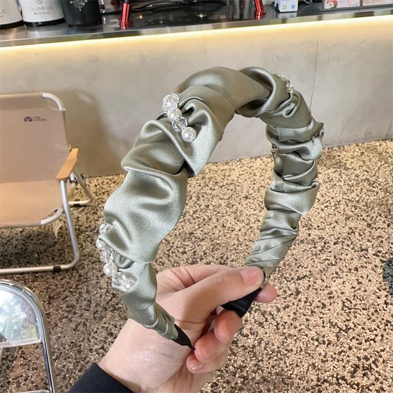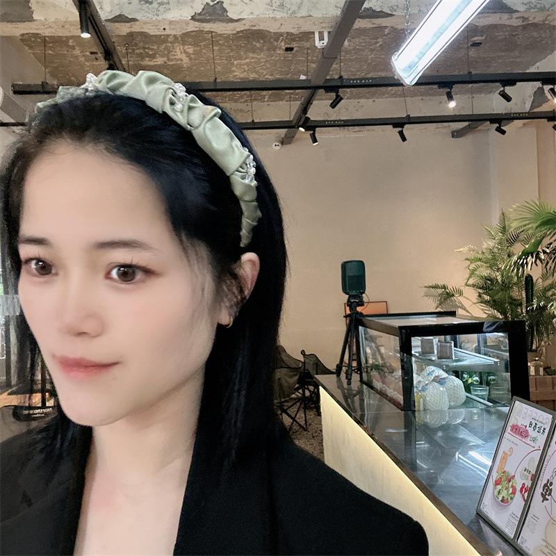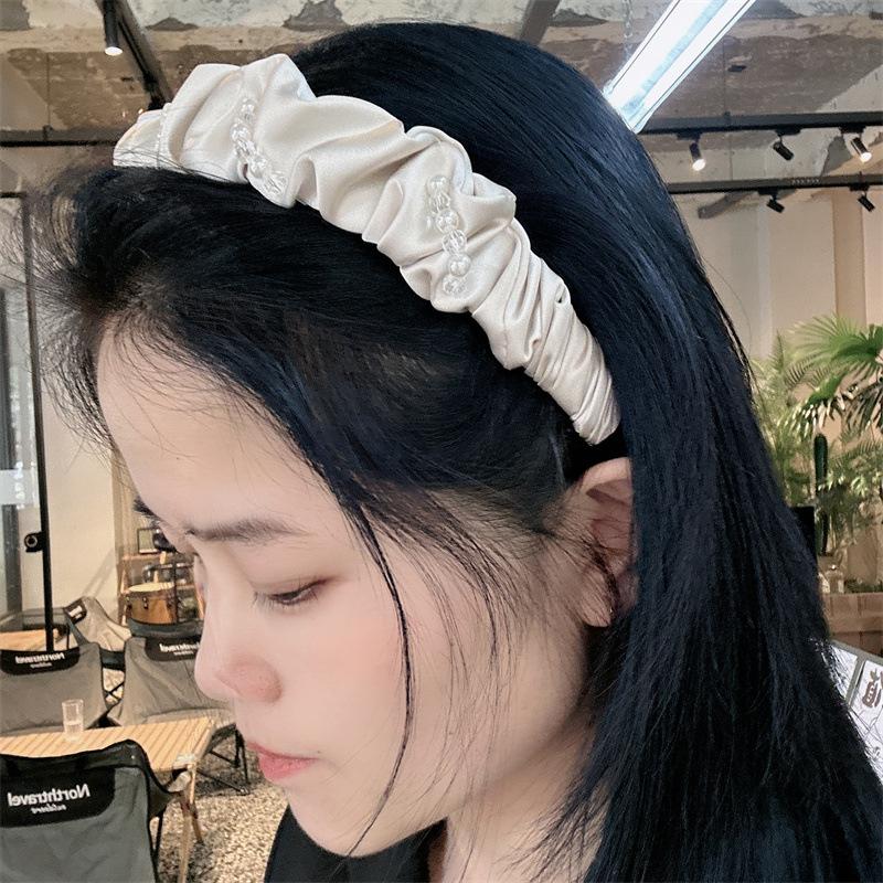 Aro para el pelo de tela con pliegues de hada para uso diario coreano, con perlas de imitación de cristal envuelto en una dulce red roja para niña, accesorios para el cabello