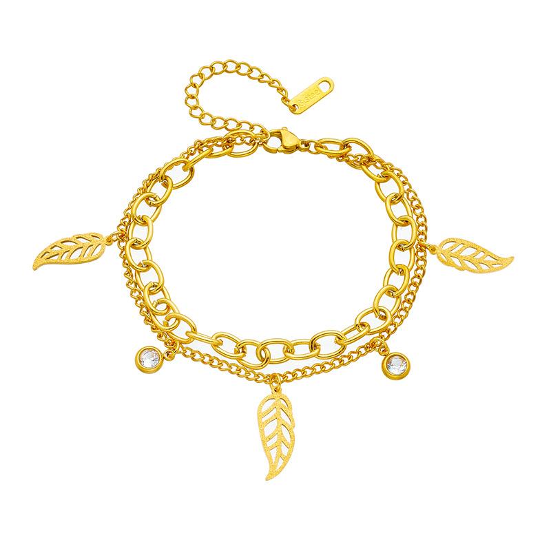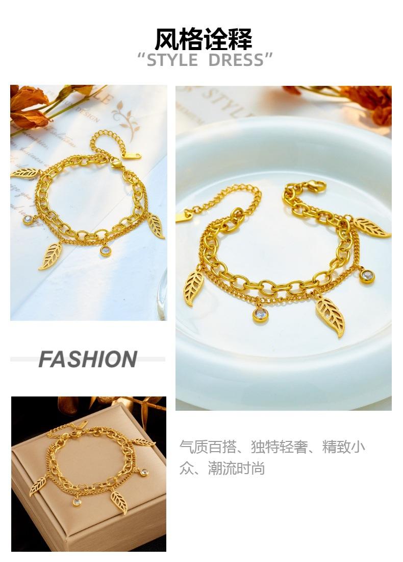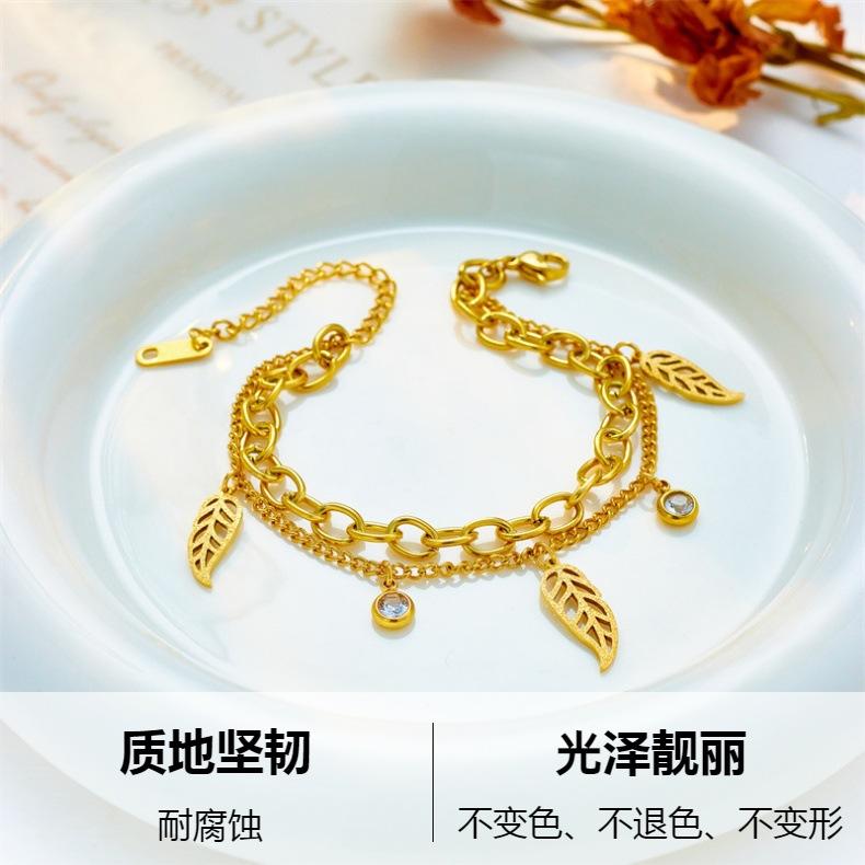 Estilo coreano simple moda nicho metal acero titanio cadena apilada doble capa hoja colgante diamante accesorios de joyería pulsera