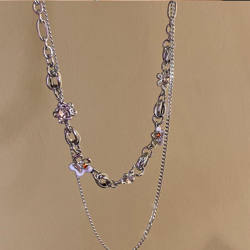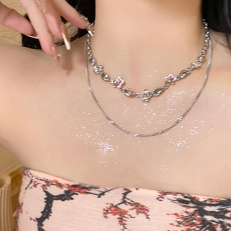 Collar de gemas de colores para mujer 2023, nuevo, dulce, genial, diseño de nicho, cadena de clavícula de alta gama, collar de cadena