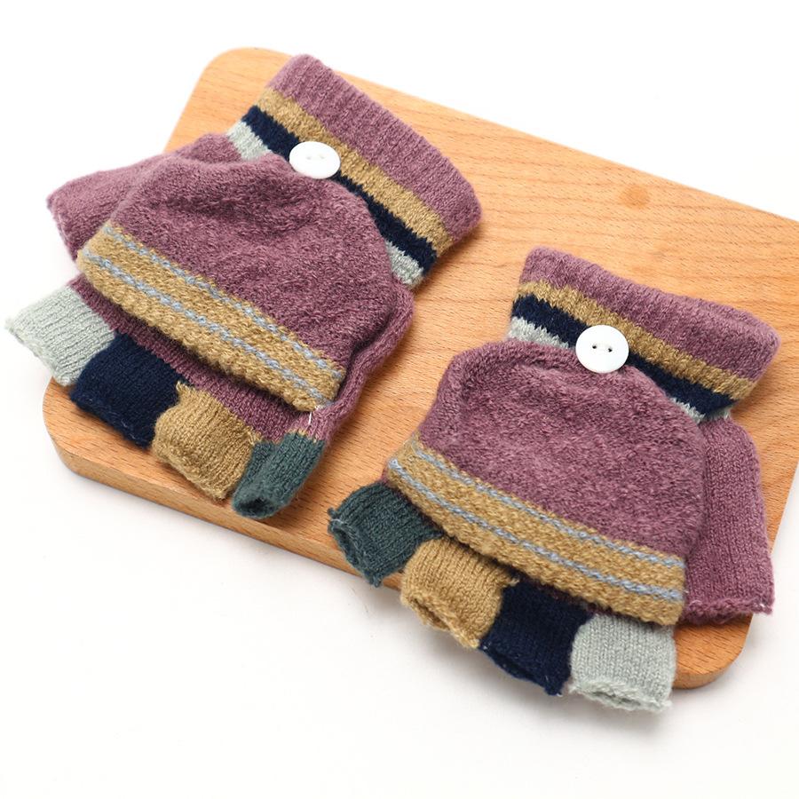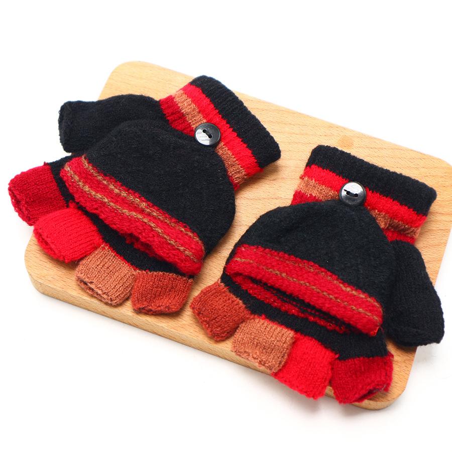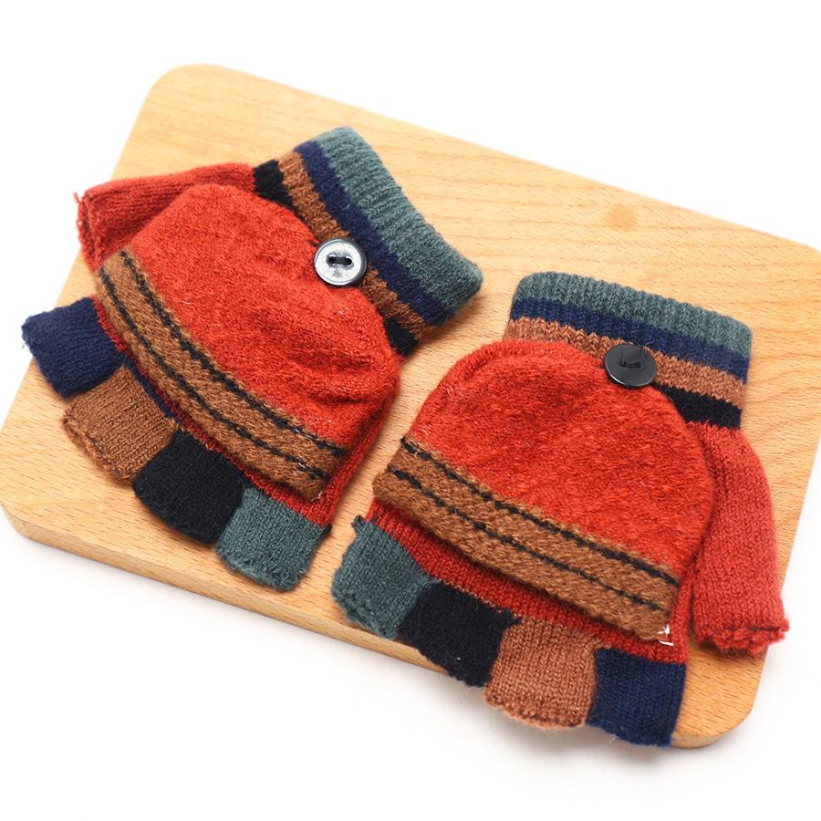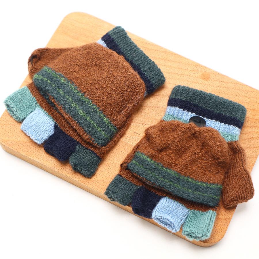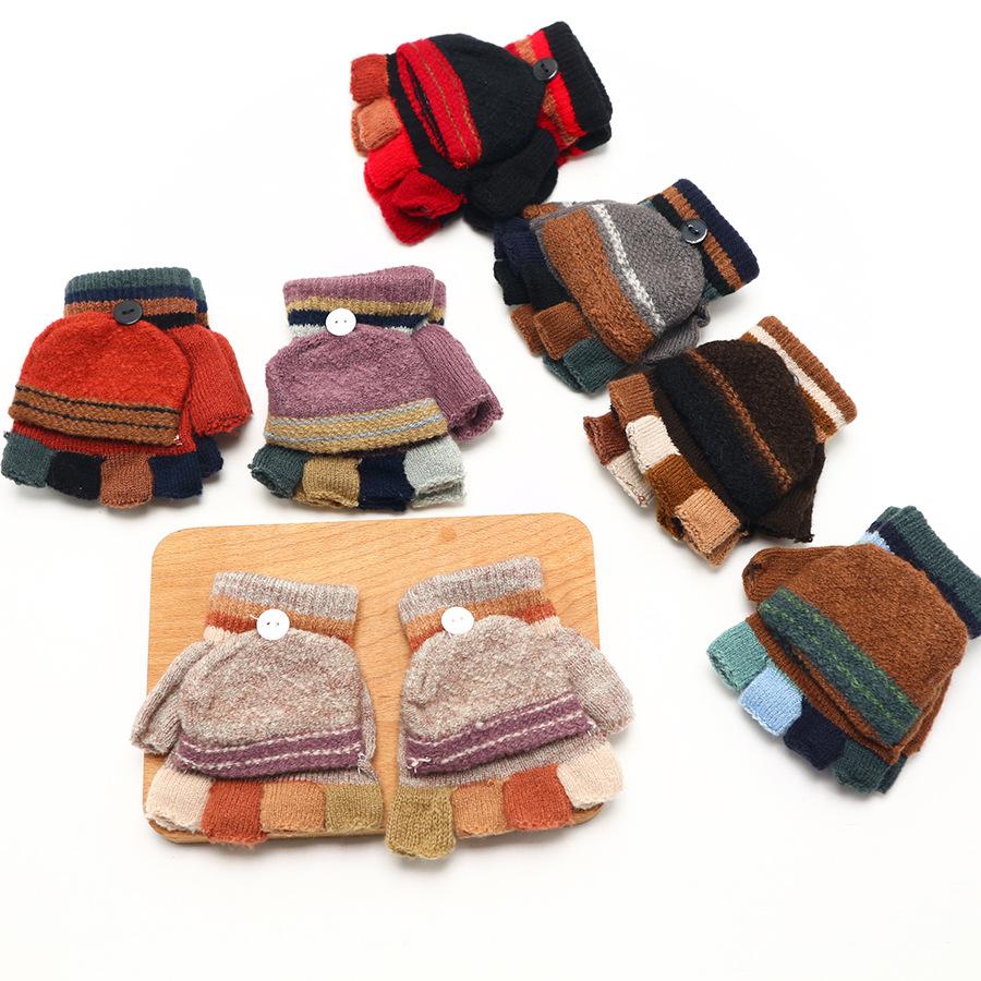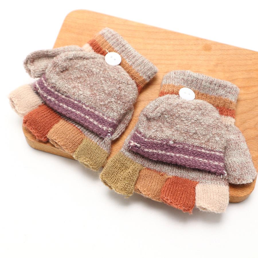 Guantes para niños de cinco dedos, para bebés, de invierno, para niños y niñas, de lana cálida, con volteado, para niños, dedo medio, para escribir, para estudiantes.