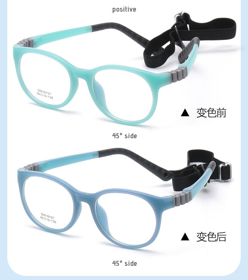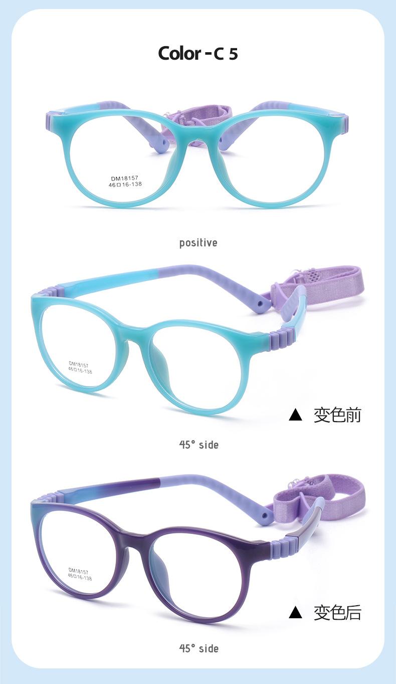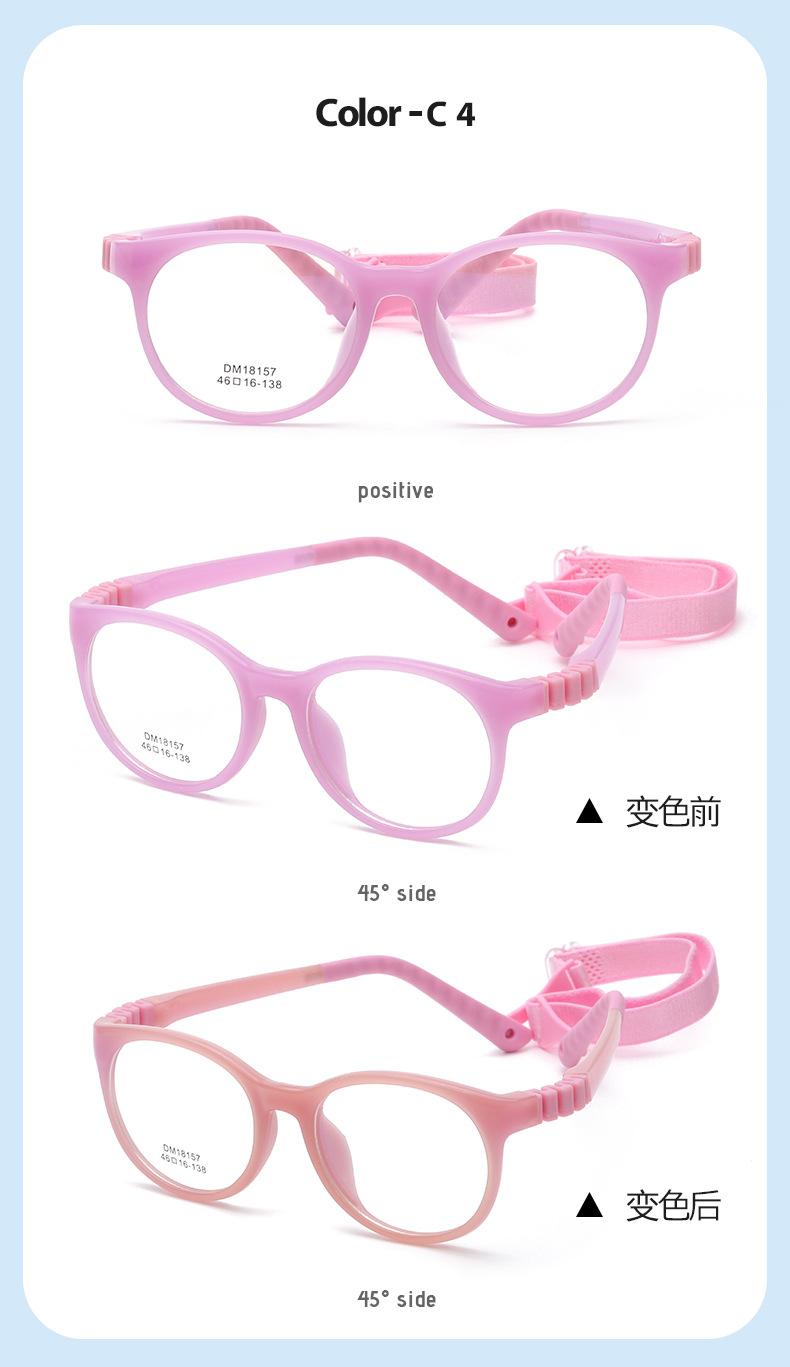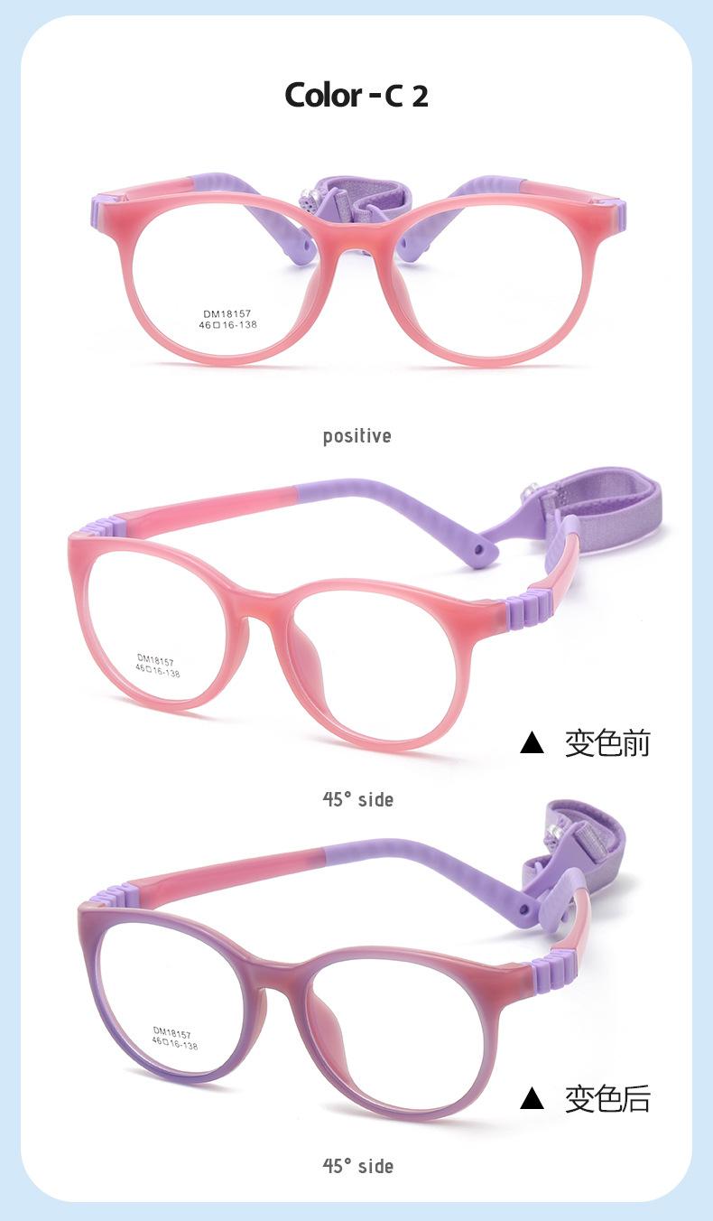 Nuevo marco de gafas para niños con montura redonda que cambia de color, venta al por mayor, marco de gafas para niños con cierre a presión desmontable, marco de silicona suave para niños