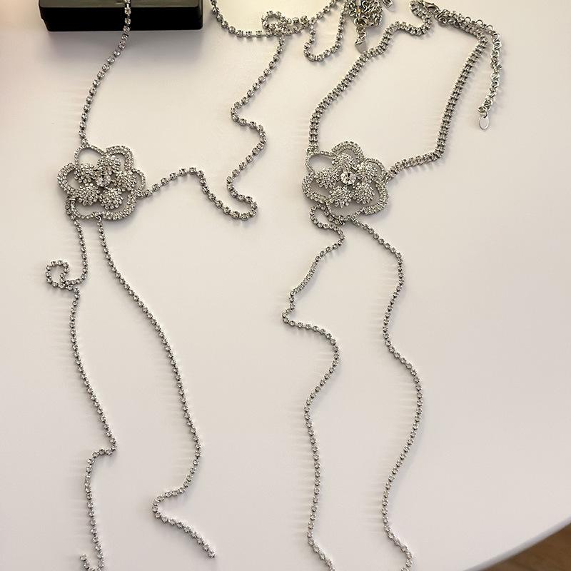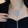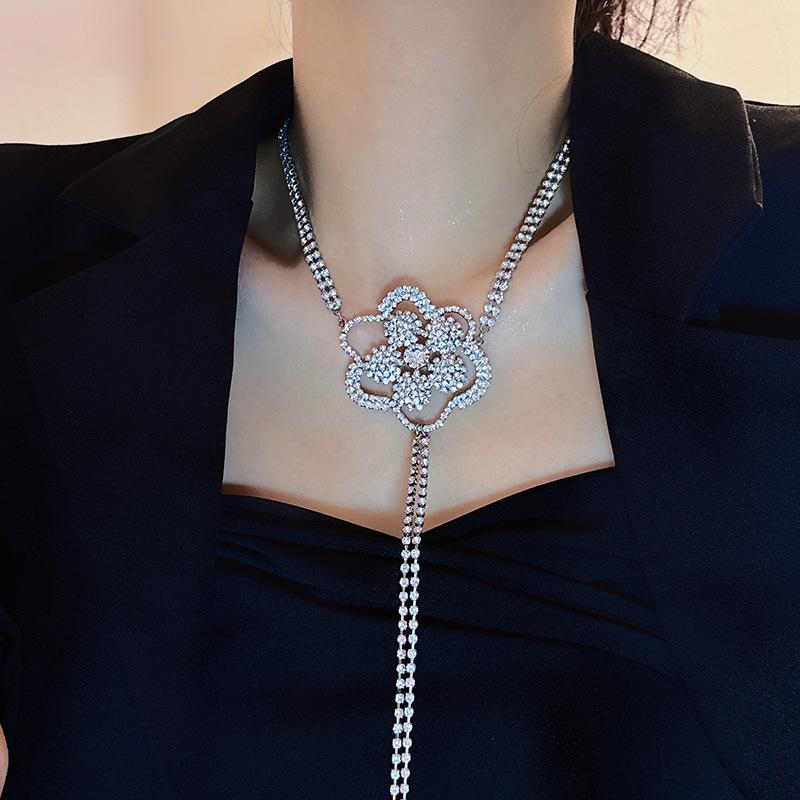 Collar de flores con diamantes de imitación huecos y nicho de lujo ligero para niñas, diseño europeo y americano, cadena de clavícula con borlas populares, temperamento