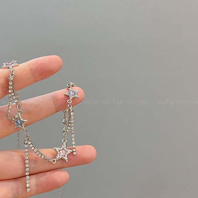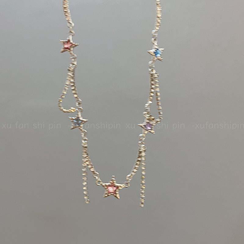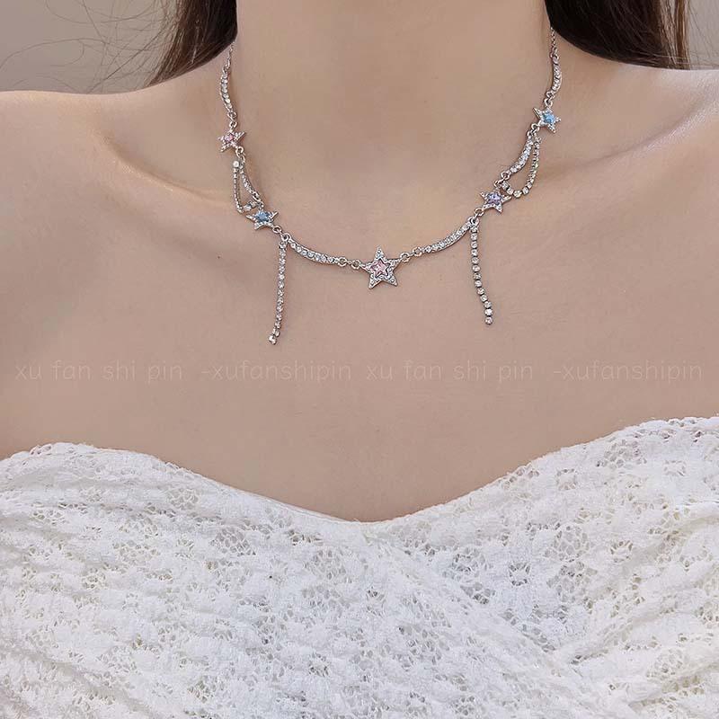 Cadena clavicular de borla de dopamina diseño nicho viento frío claro borla de circonita collar de estrella femenino verano Nuevo