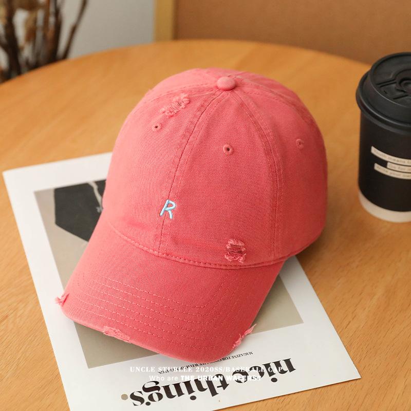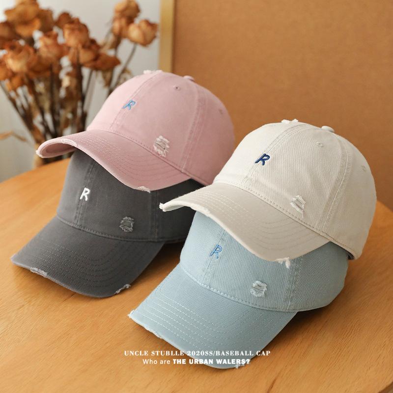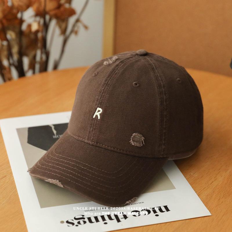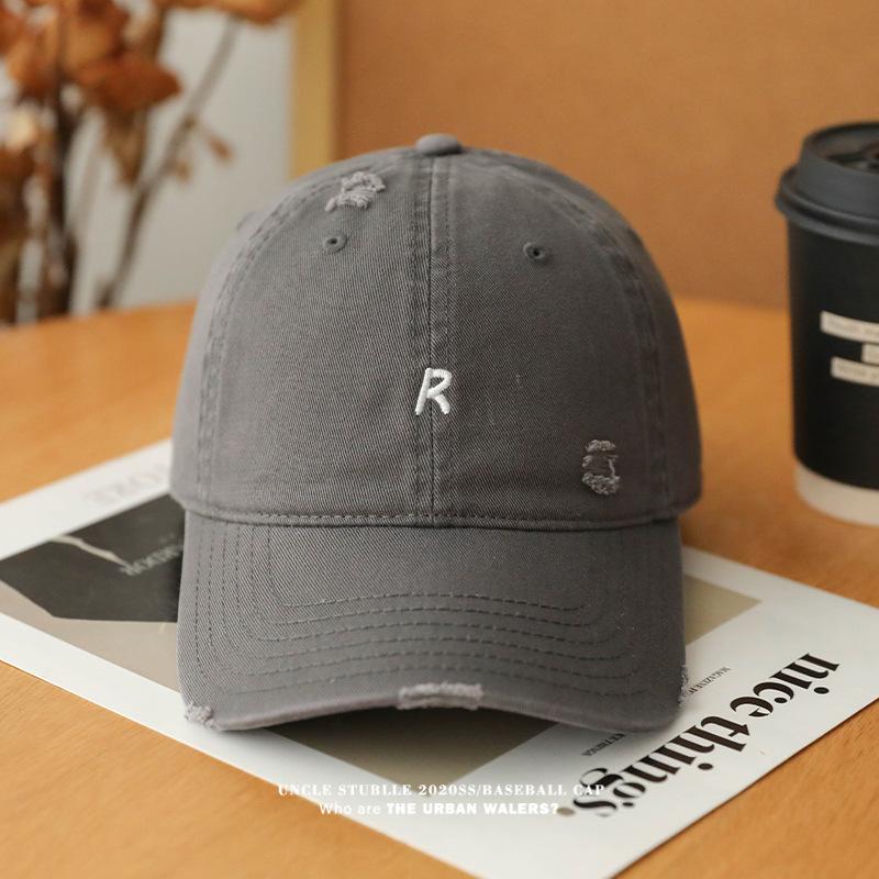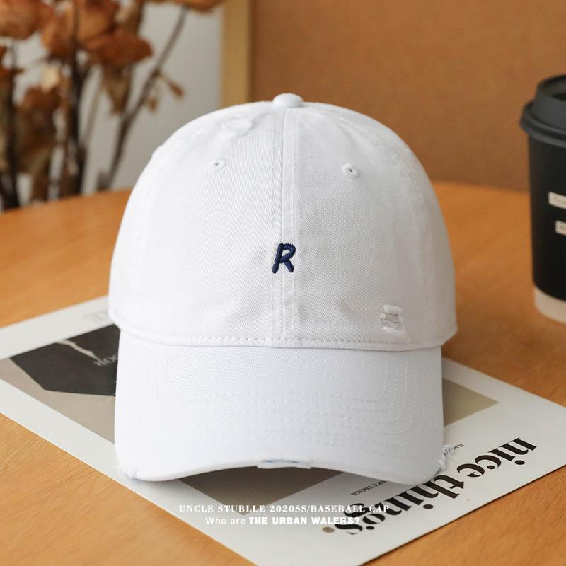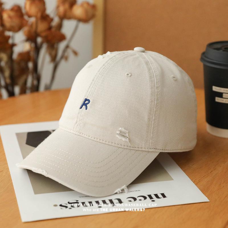 Gorra de béisbol bordada con la letra R nueva 2024 para mujer, de ala ancha, que hace que la cara parezca pequeña, de copa suave, con visera, sencilla, que combina con todo, sombrero para el sol para hombre