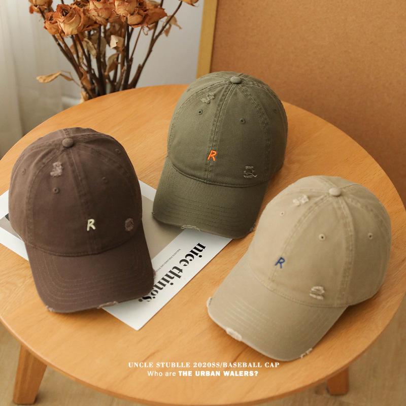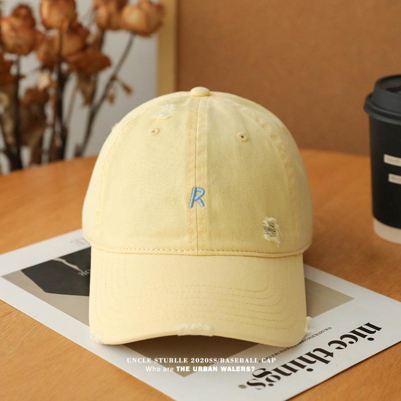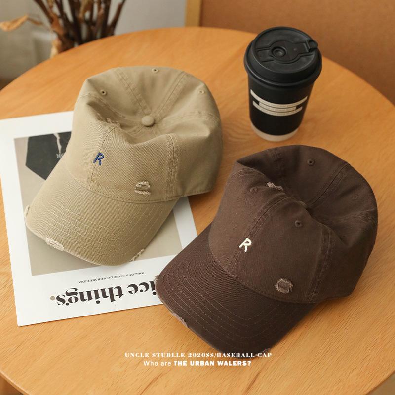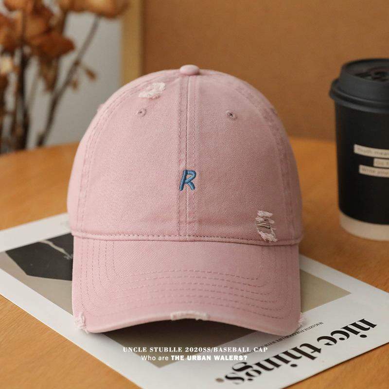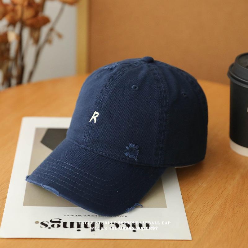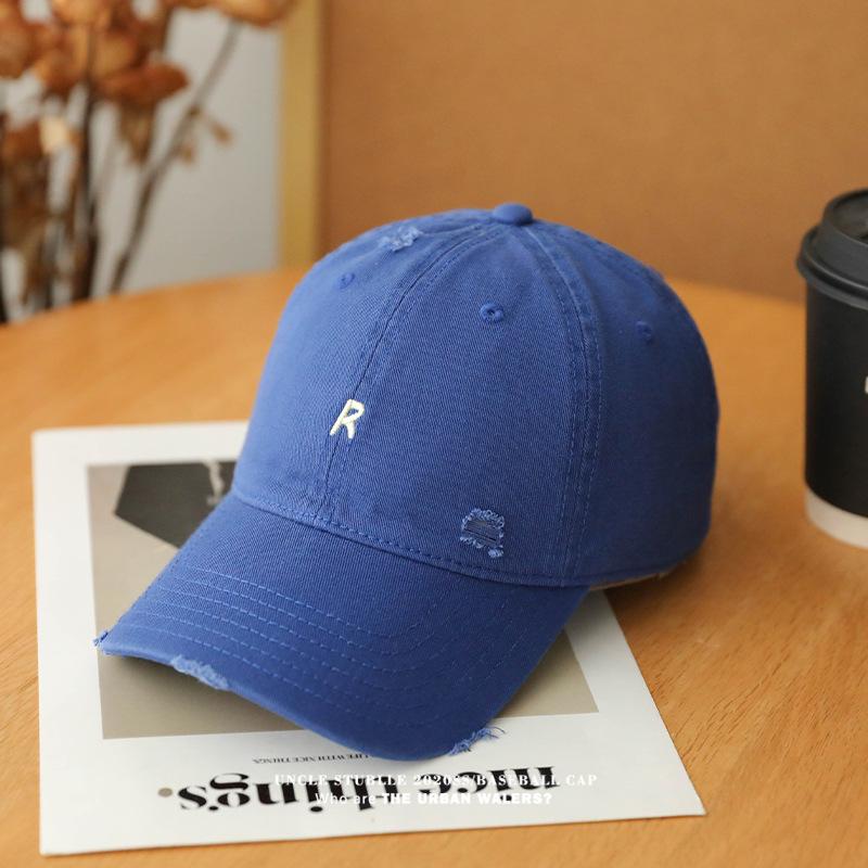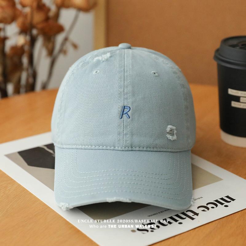 Gorra de béisbol bordada con la letra R nueva 2024 para mujer, de ala ancha, que hace que la cara parezca pequeña, de copa suave, con visera, sencilla, que combina con todo, sombrero para el sol para hombre