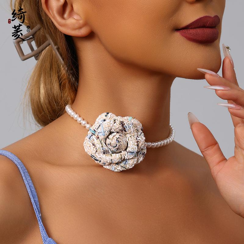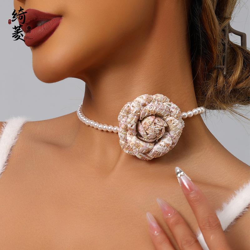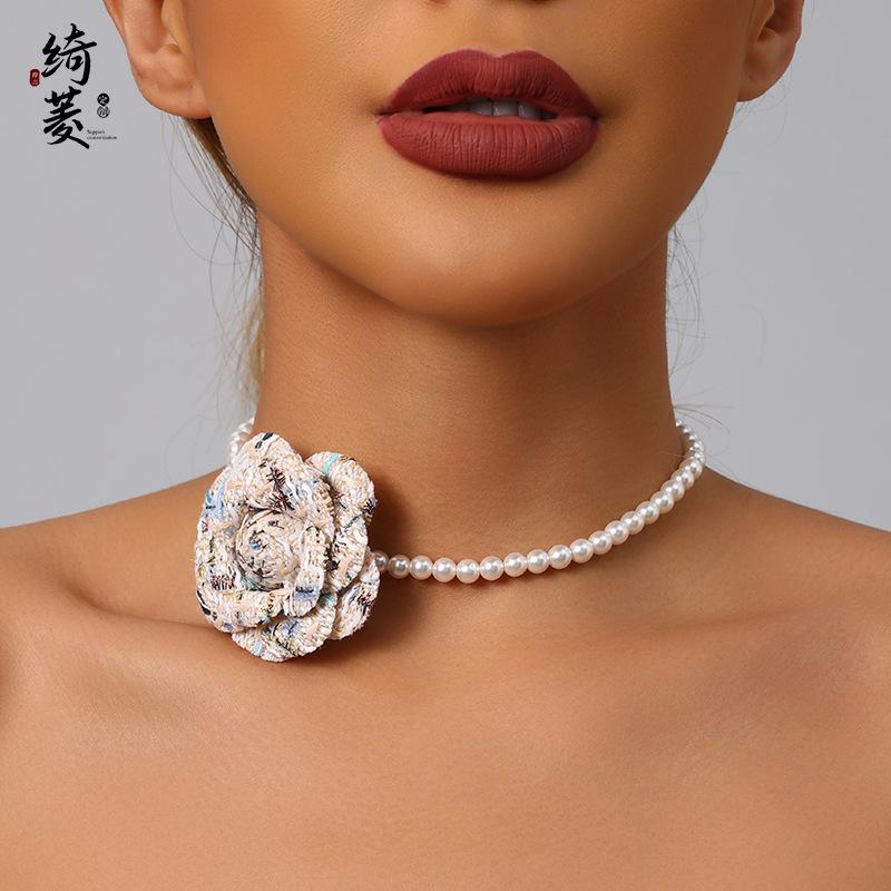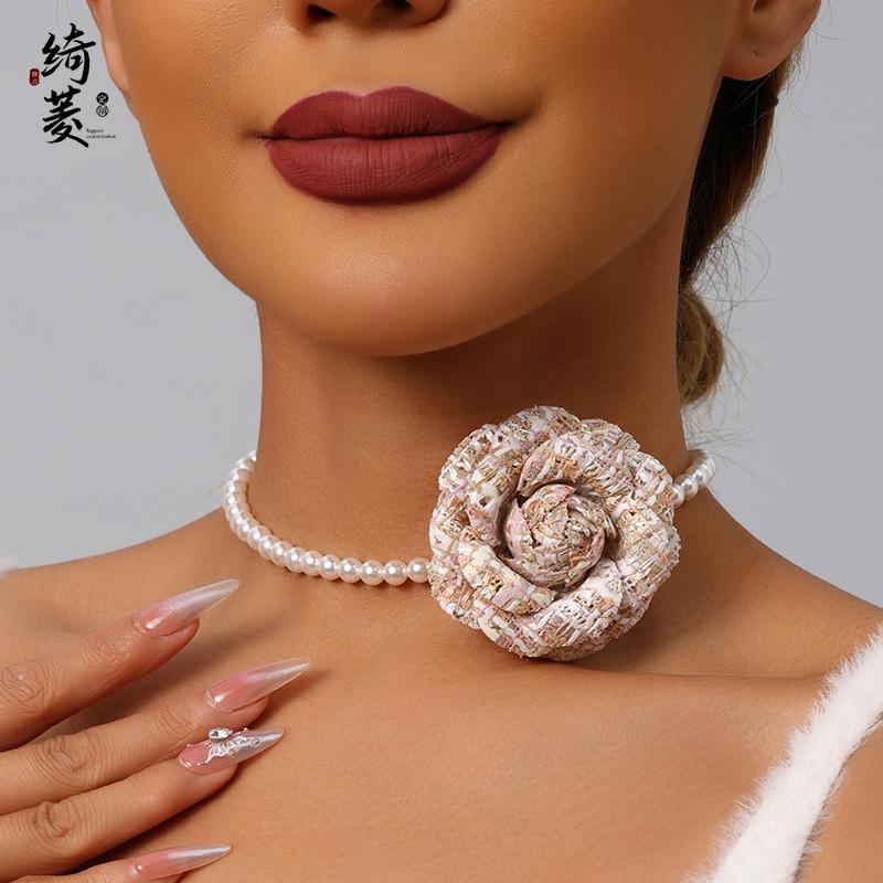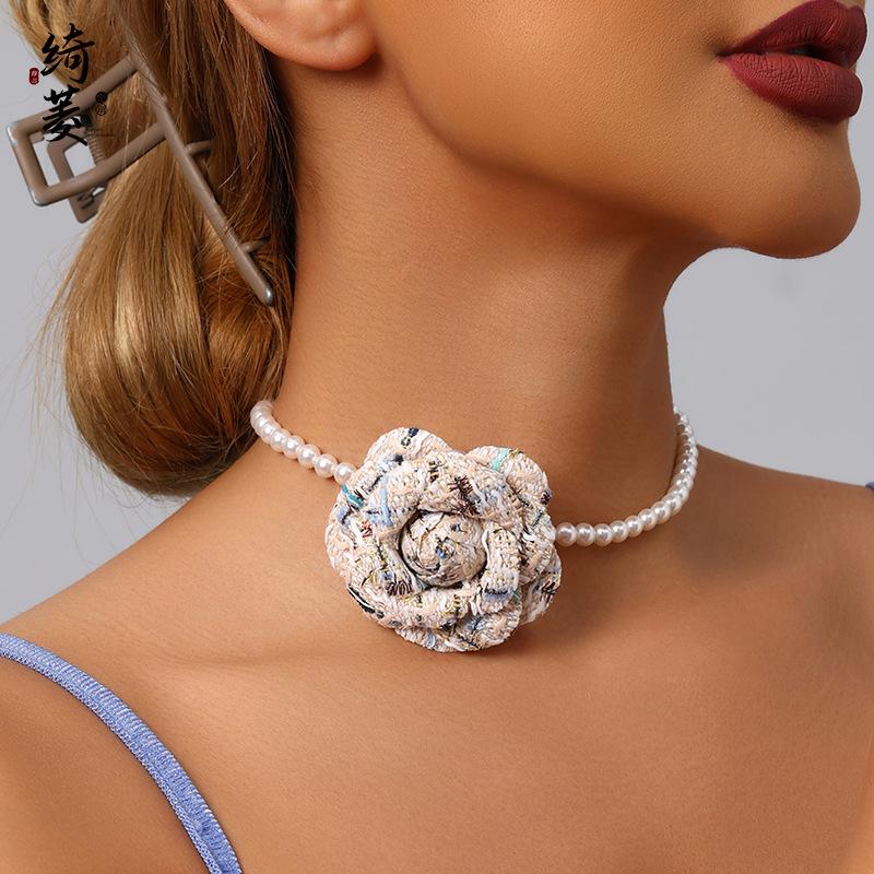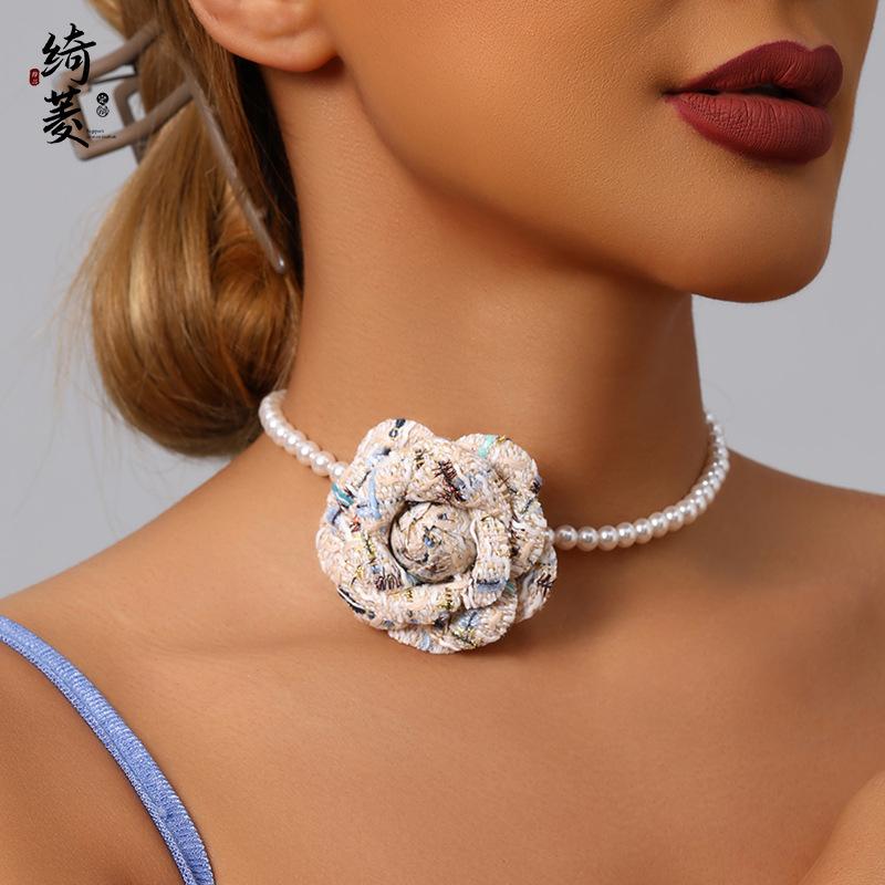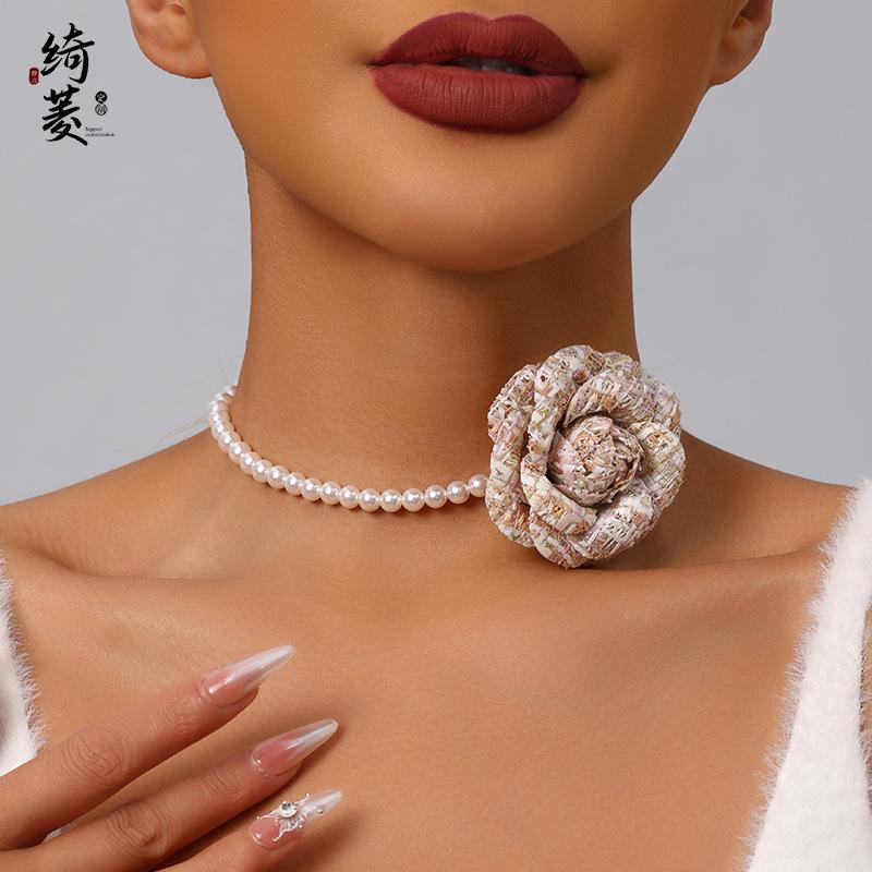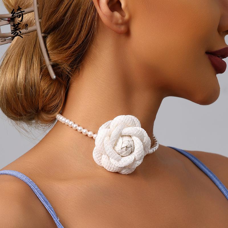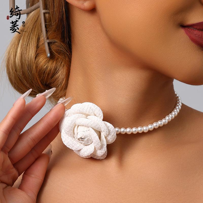 Collar de Cadena de Clavícula de Camelia de Estilo Francés de Lujo Ligero Simple Estilo Fragante para Mujer Combinable de Alta Gama Niche Distintivo Cadena de Perlas