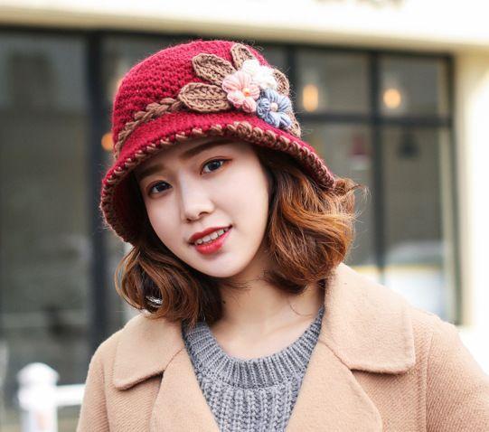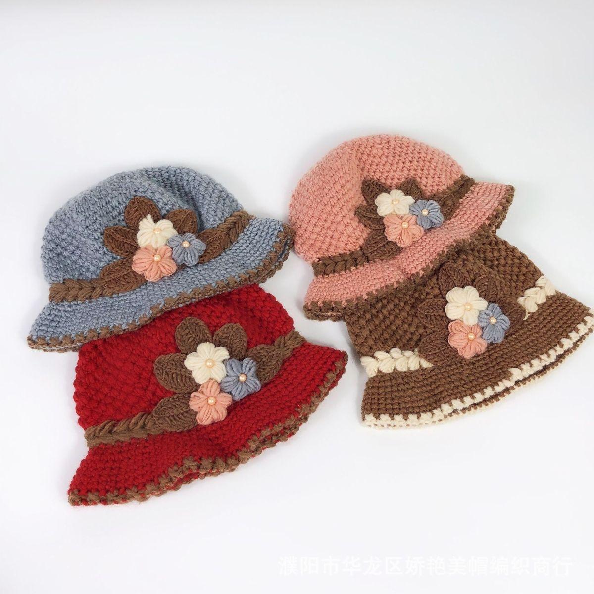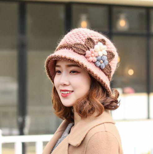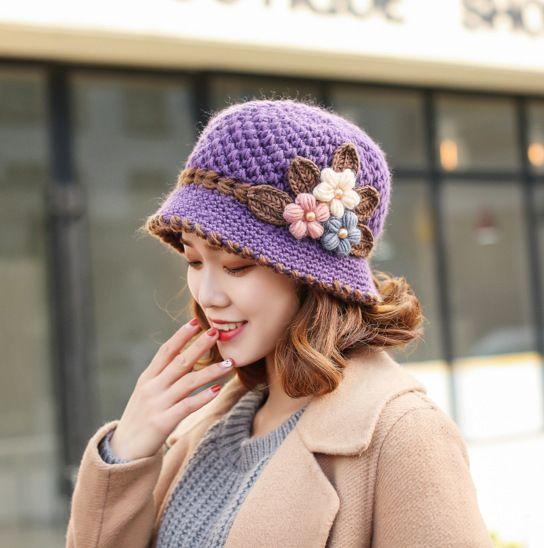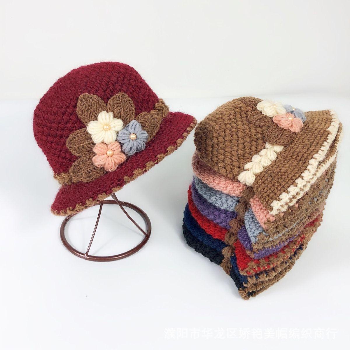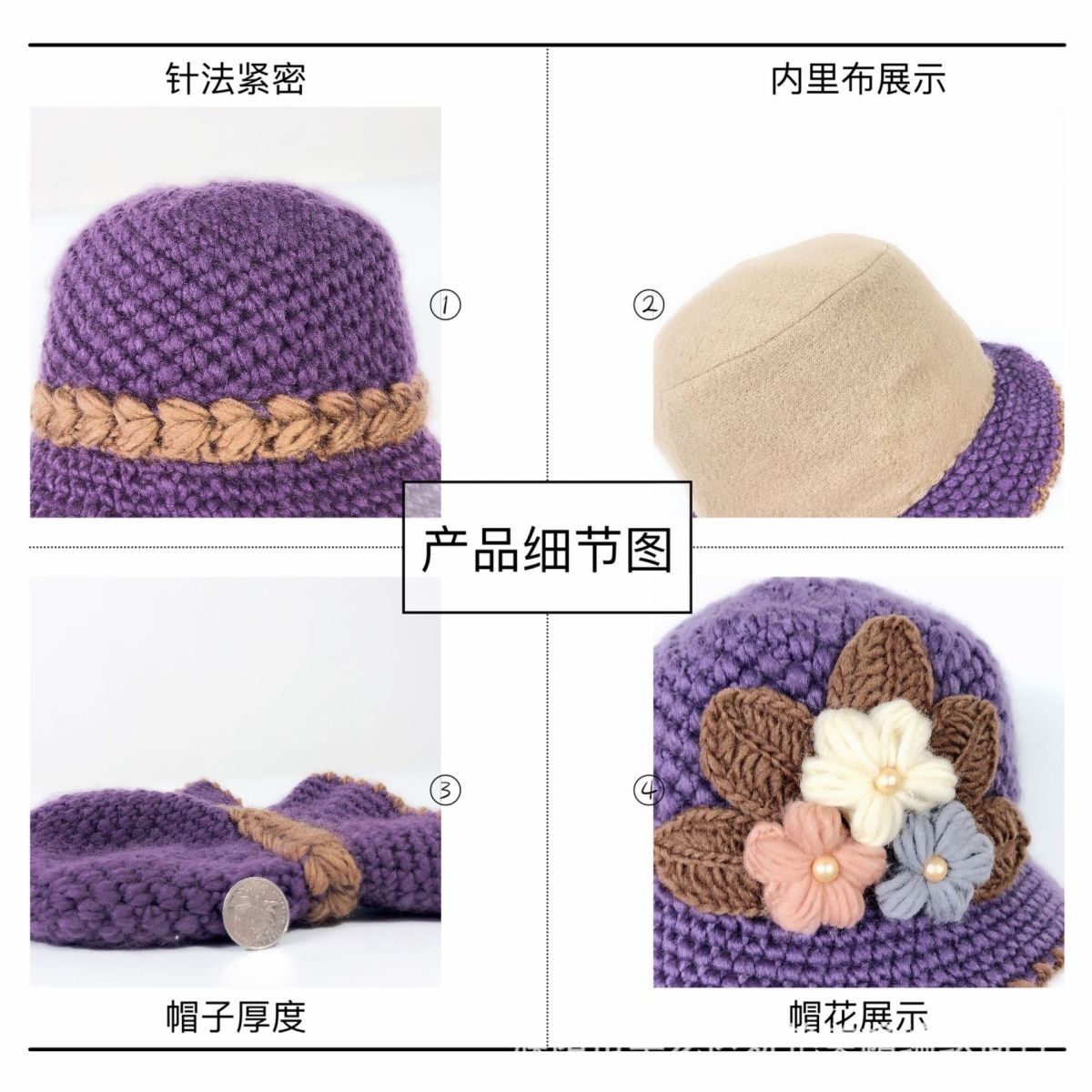 Gorro de punto para mujer, gorro de lana para otoño e invierno, gorro clásico de invierno para mujer, gorro de pescador con flores y forro polar, gorro de invierno para mamá.