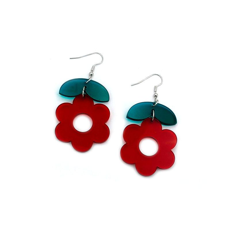 Pendientes acrílicos de moda, pendientes rojos transparentes con flores huecas, joyería vegetal larga para mujer.