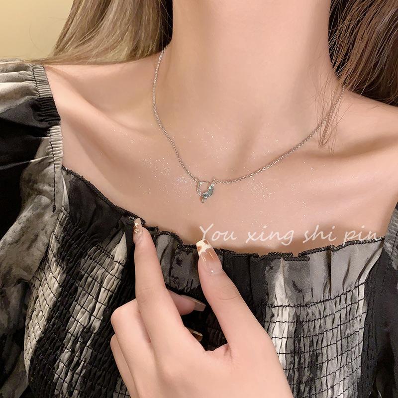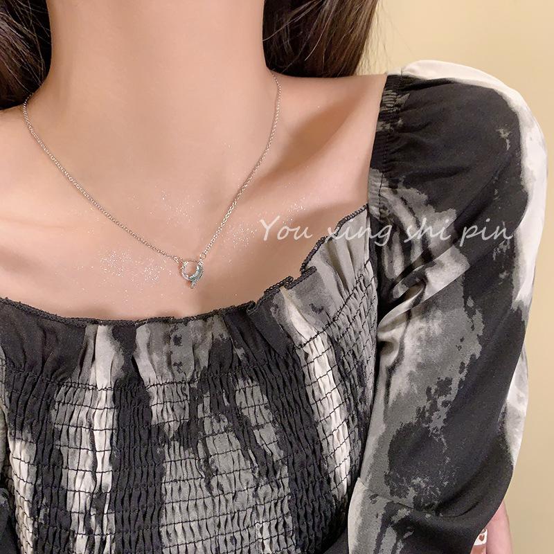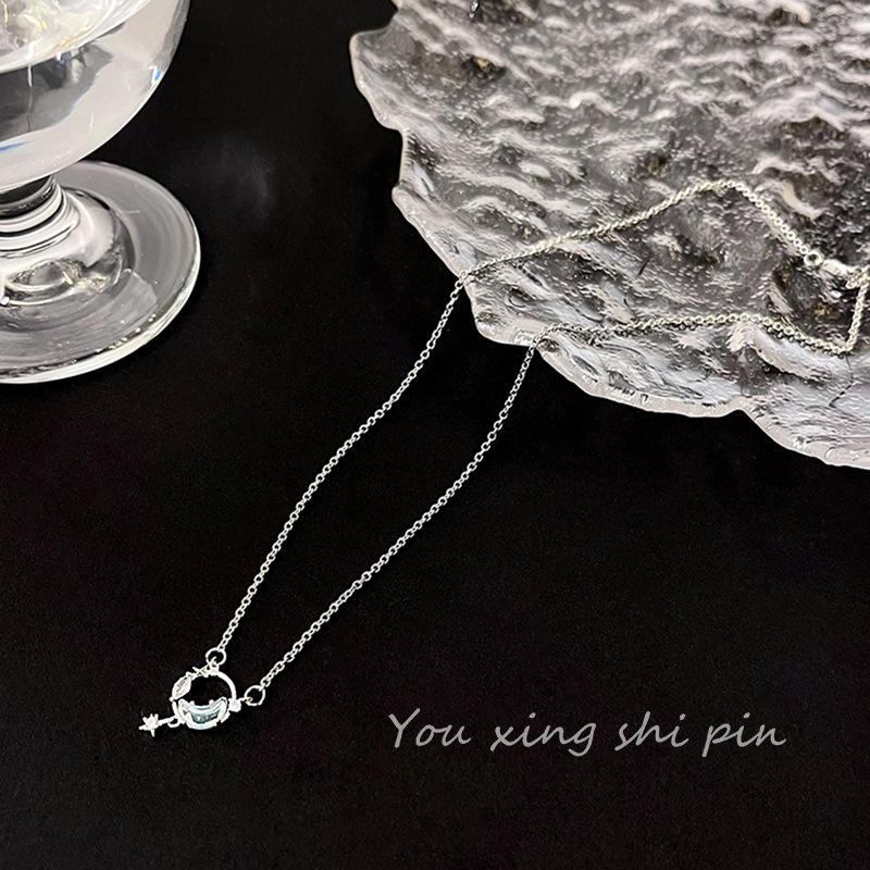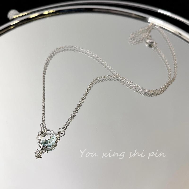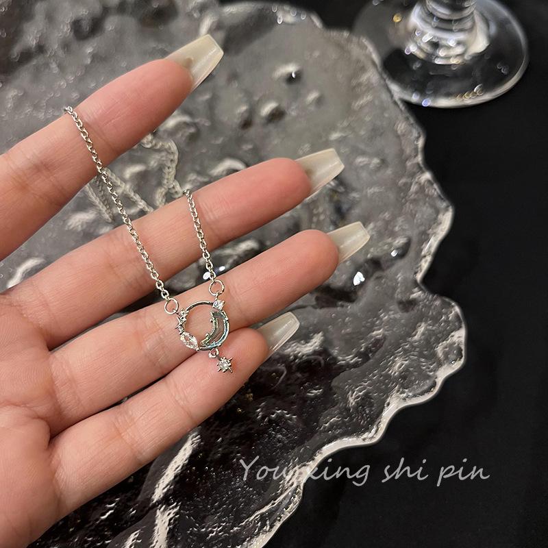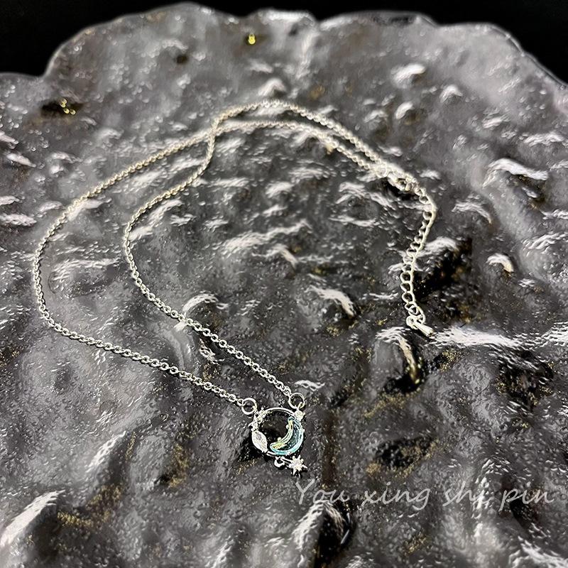 Collar de estrella y luna, collar de estrella y luna de plata de ley, cadena de clavícula femenina, luz de lujo, nicho, regalo para novias