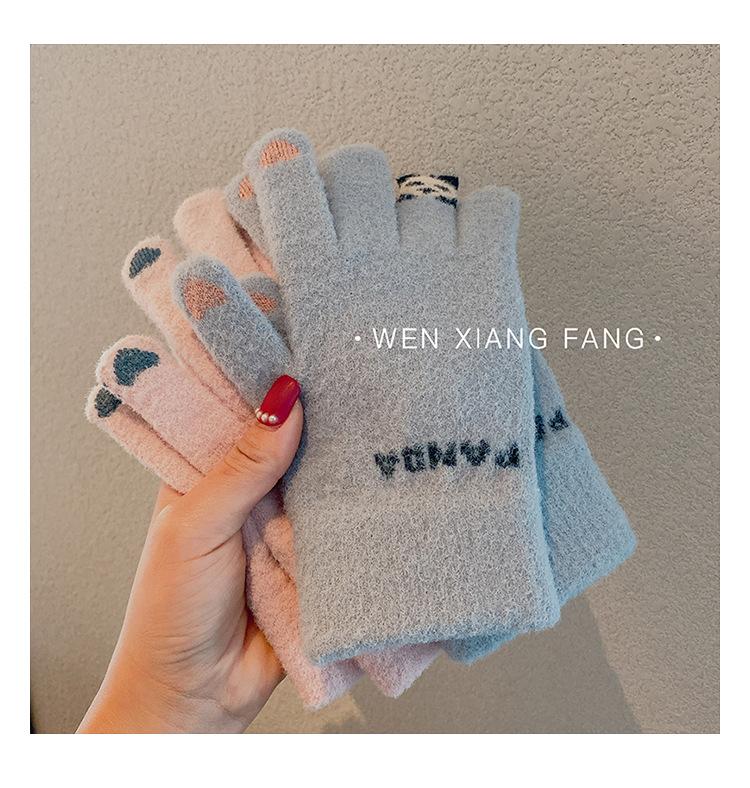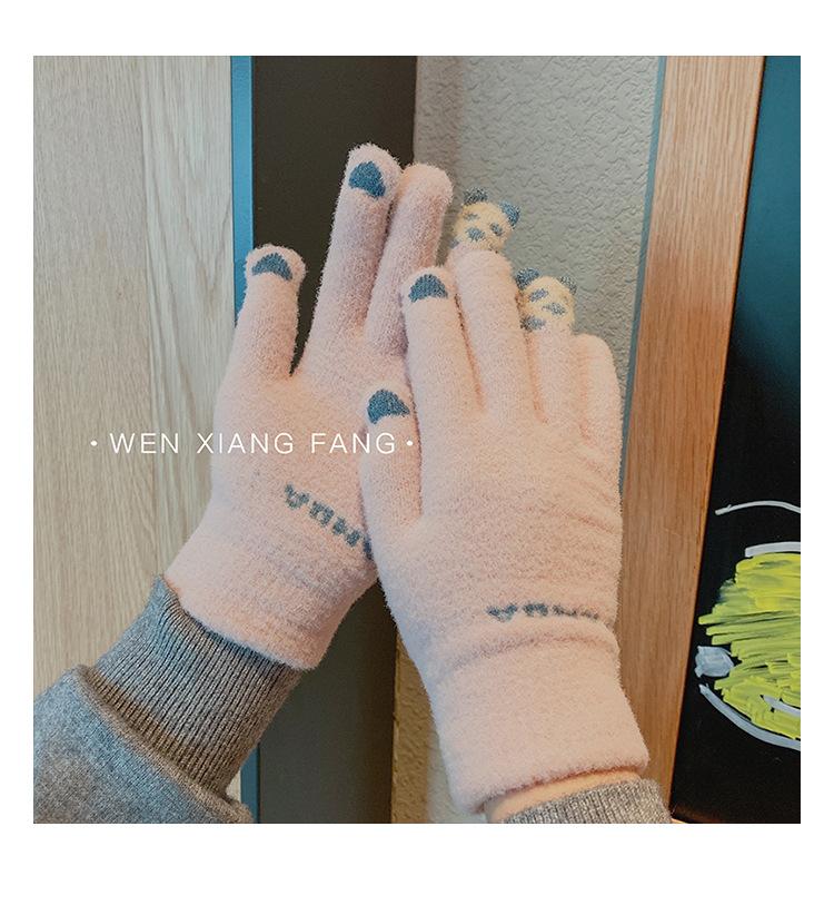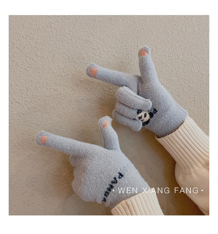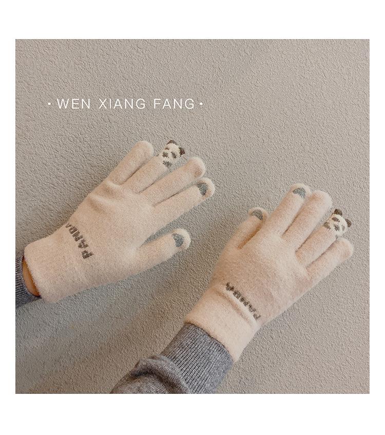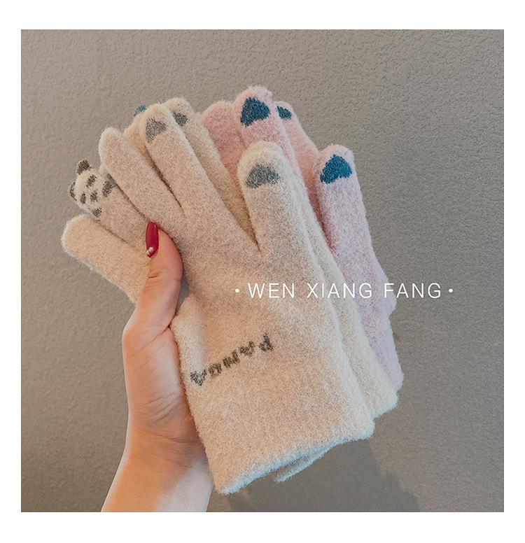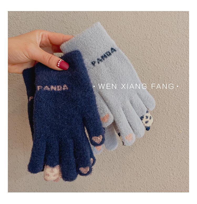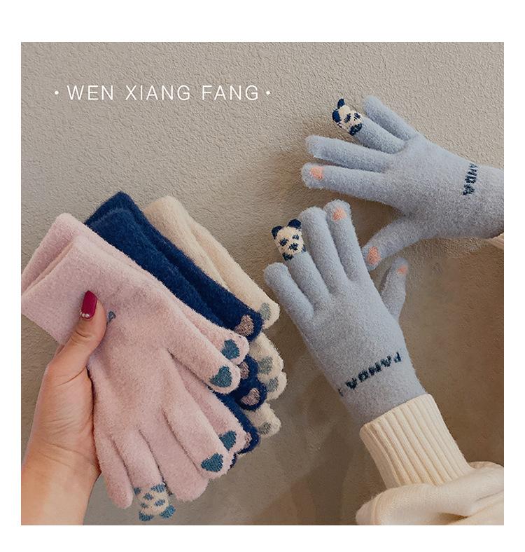 Guantes ins Invierno femenino lindo panda con forro polar cálido a prueba de frío ciclismo estudiante a prueba de viento pantalla táctil invierno