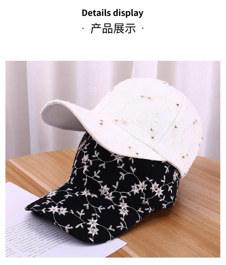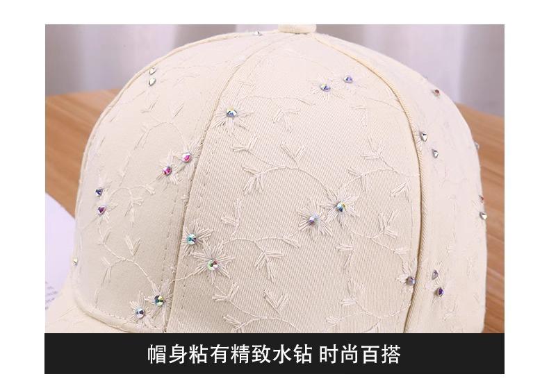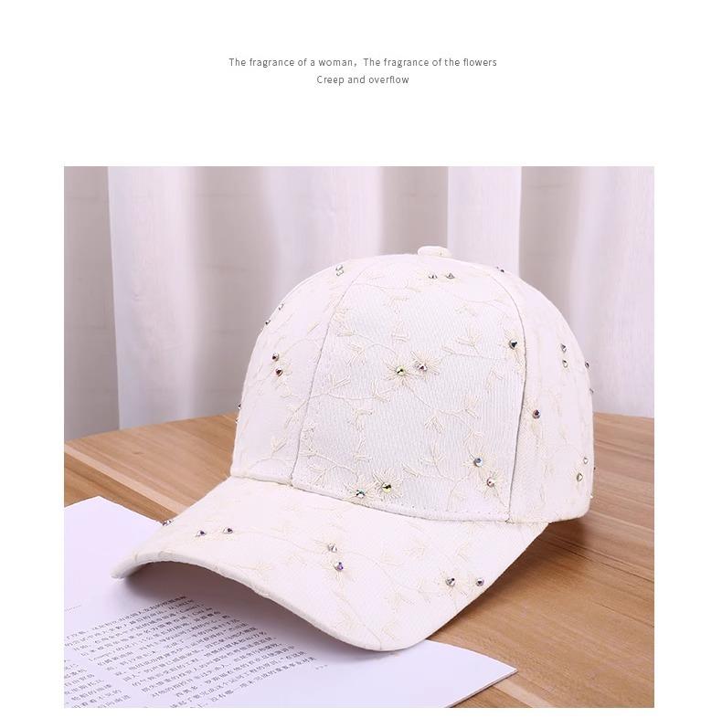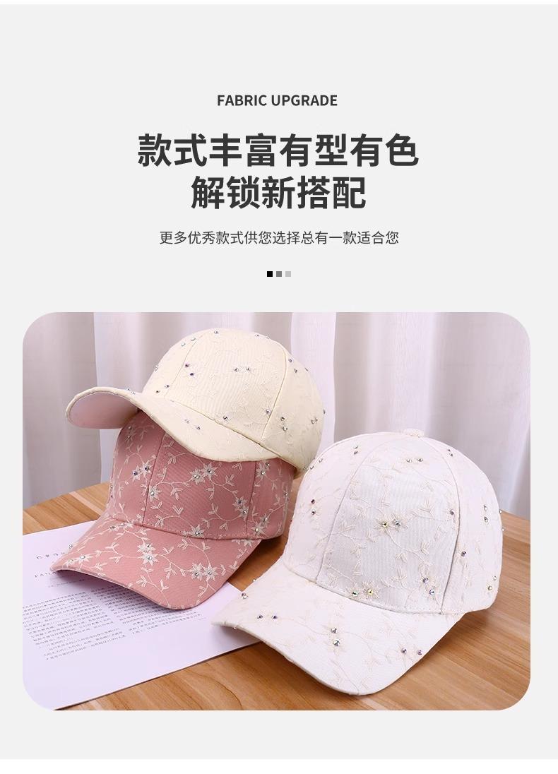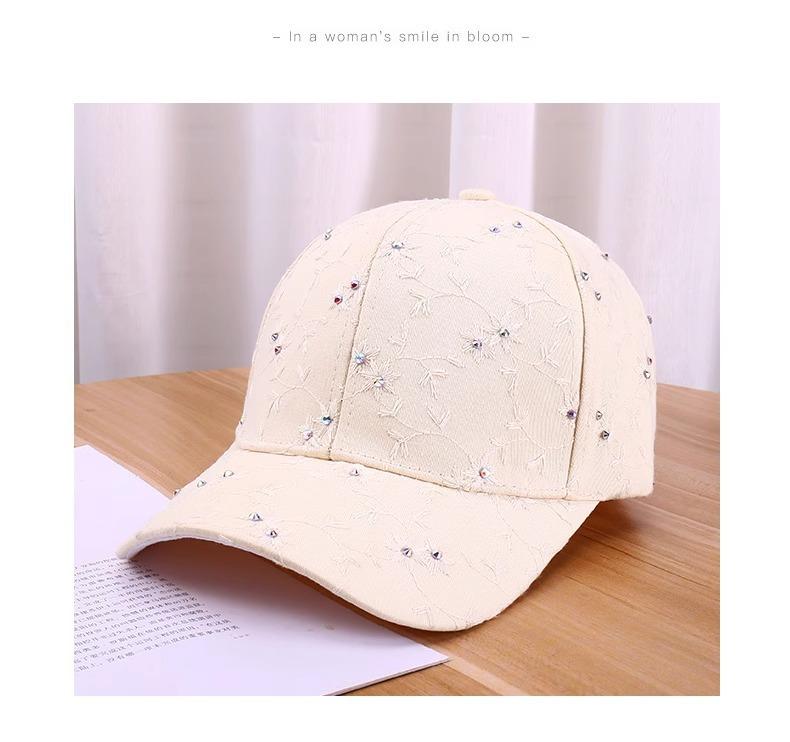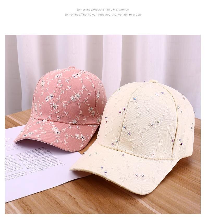 Gorra de béisbol de verano para mujer, elegante gorra de sol con diamantes de imitación, moderna y combinable con todo, con flores y protector solar.