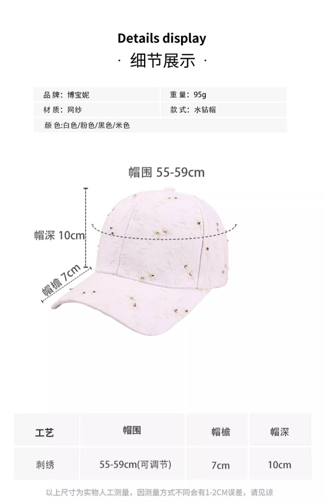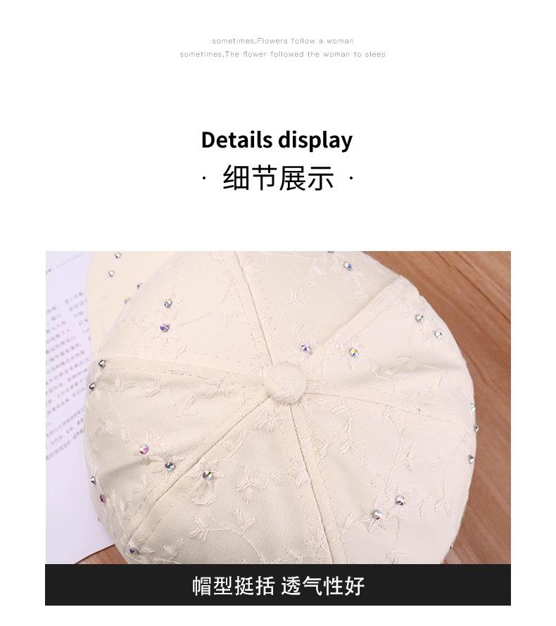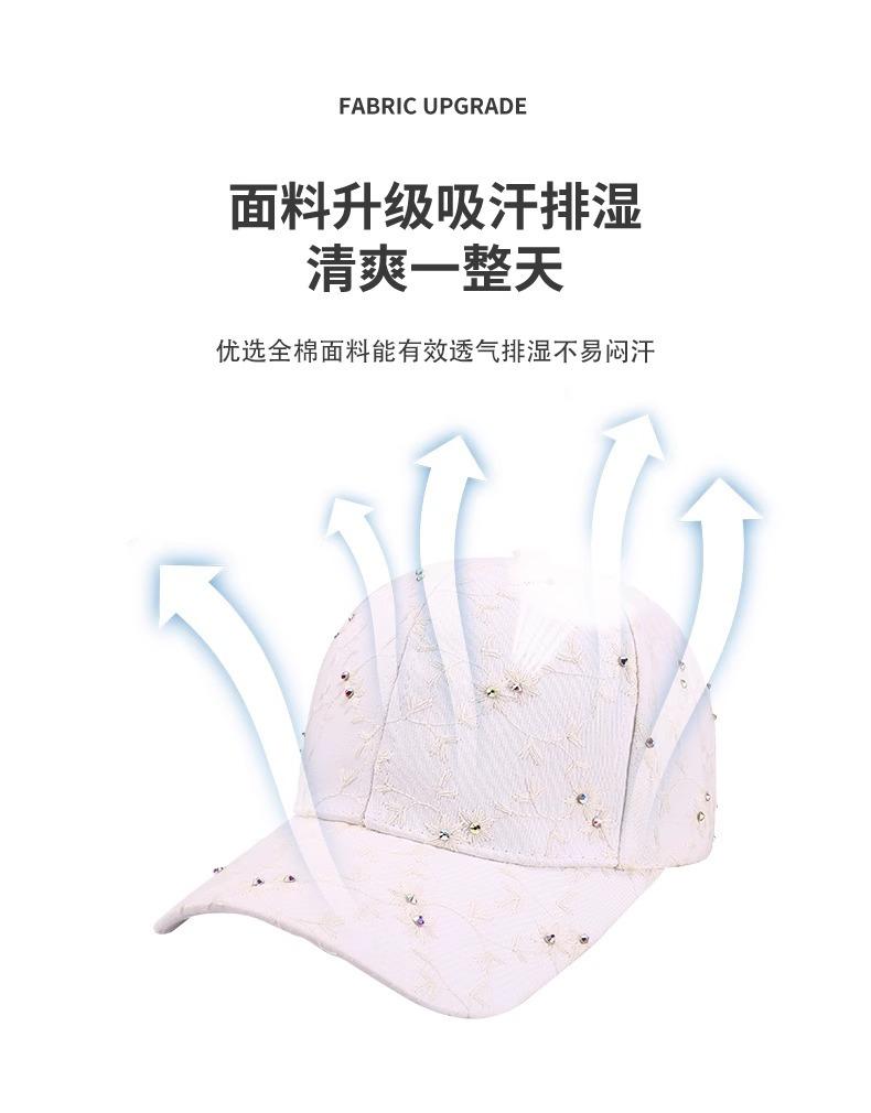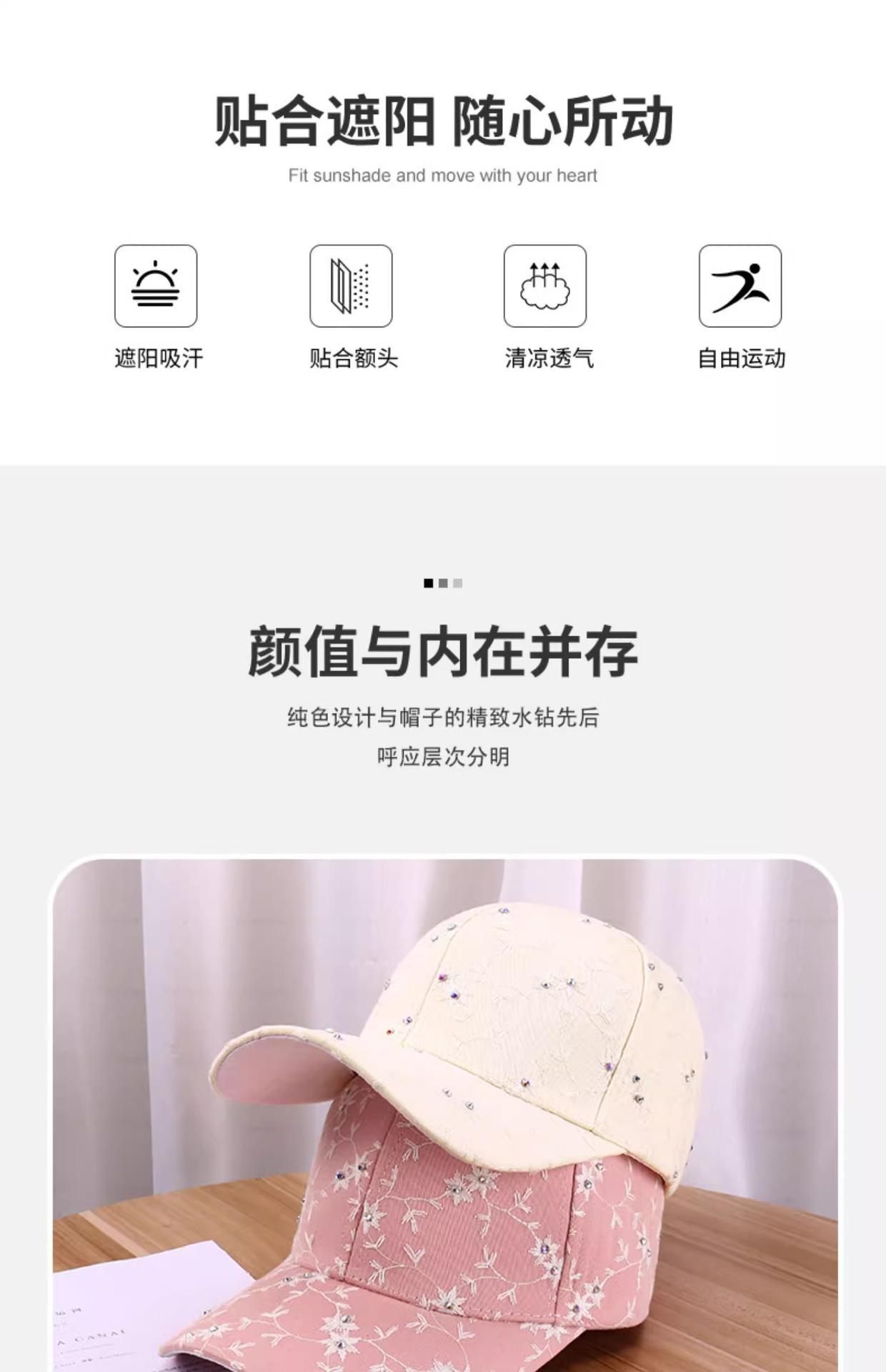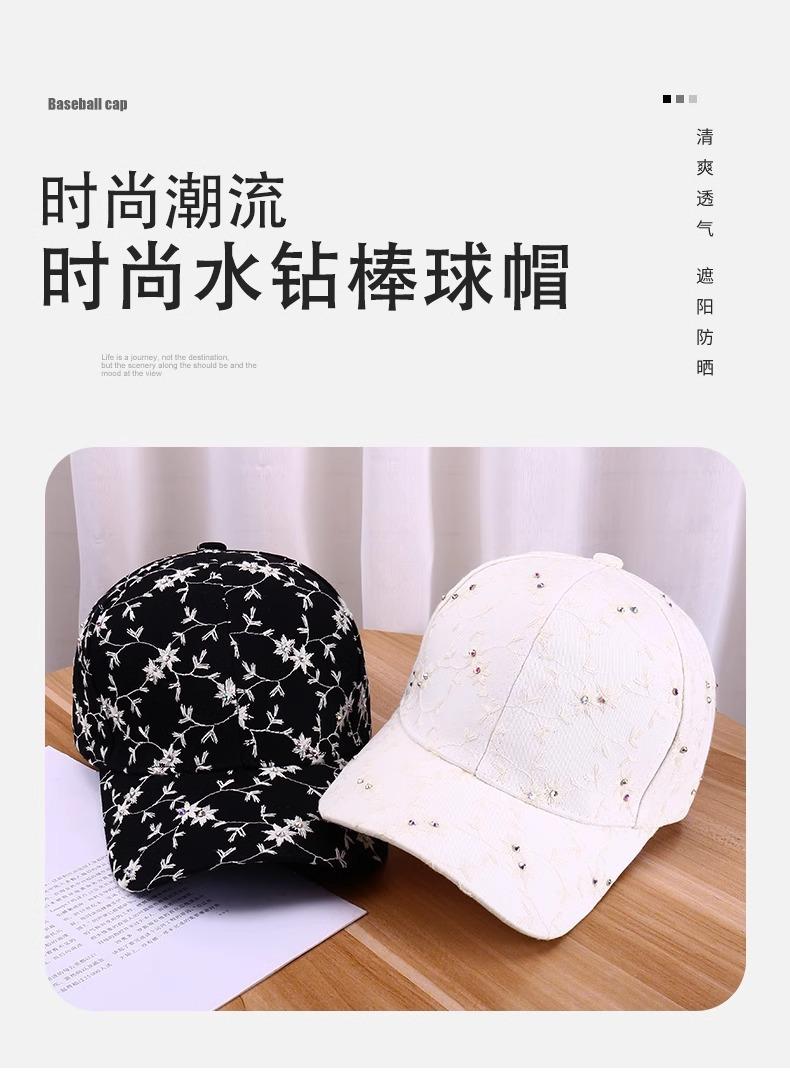 Gorra de béisbol de verano para mujer, elegante gorra de sol con diamantes de imitación, moderna y combinable con todo, con flores y protector solar.