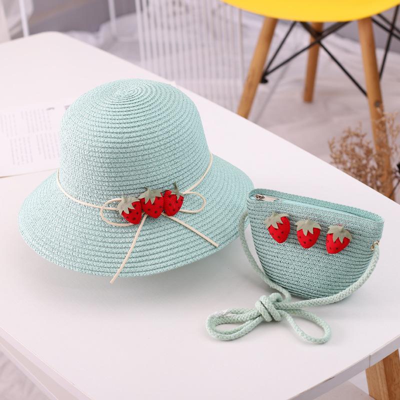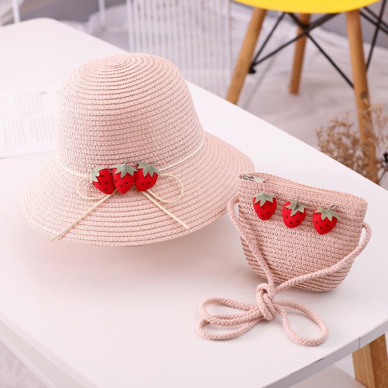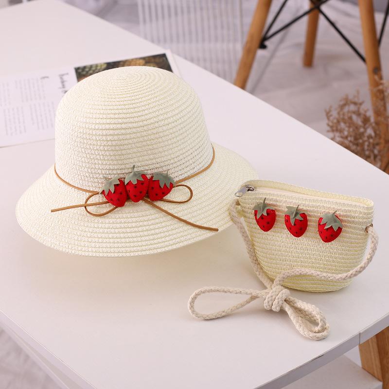 Nuevo sombrero de paja de ala grande para niñas, conjunto de sombrero y bolso para padres e hijos, sombrero de pescador para playa y vacaciones de verano