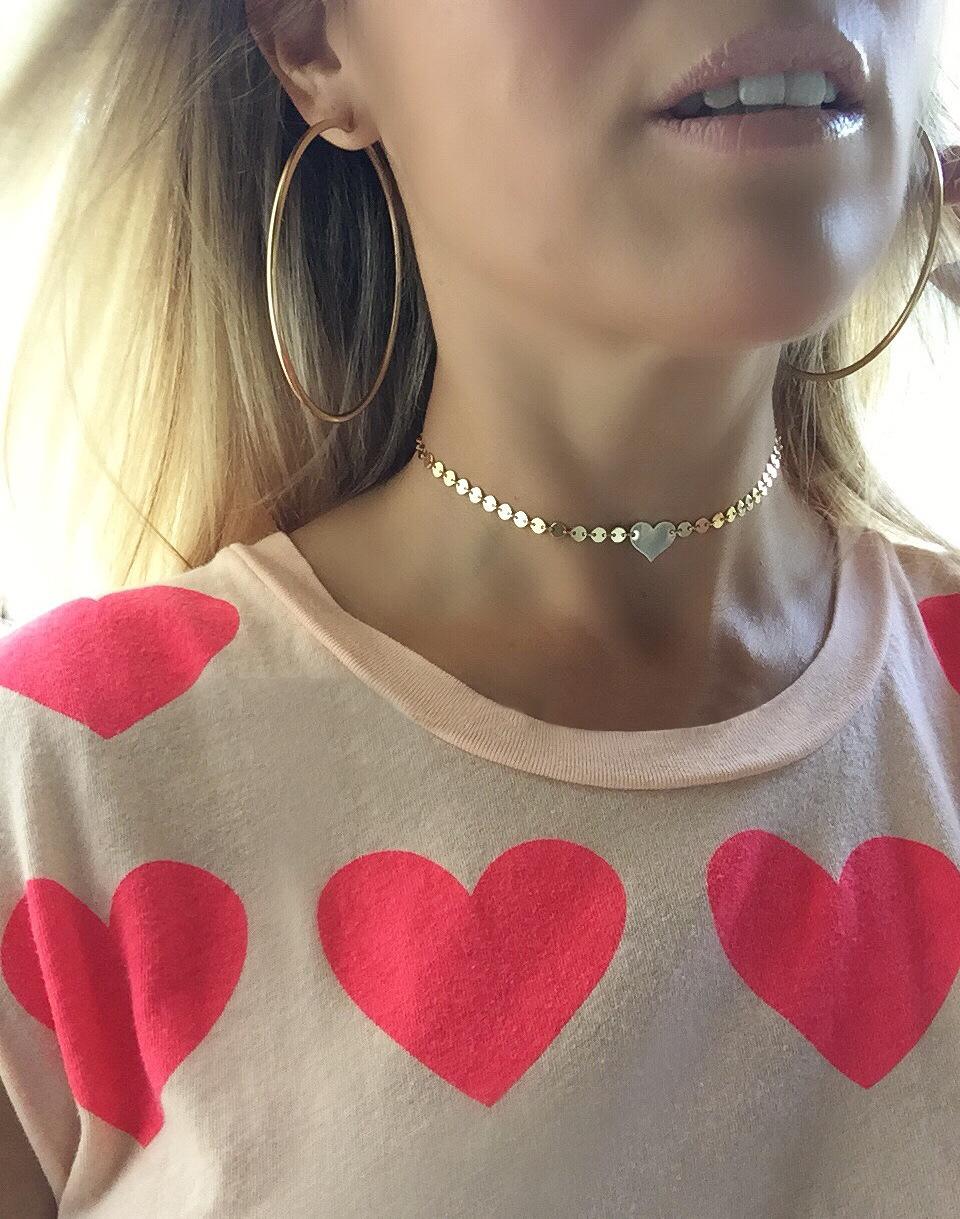 Collar de corazón de metal simple con joyas transfronterizas europeas y americanas, collar de lentejuelas hecho a mano con chapado en oro para mujer
