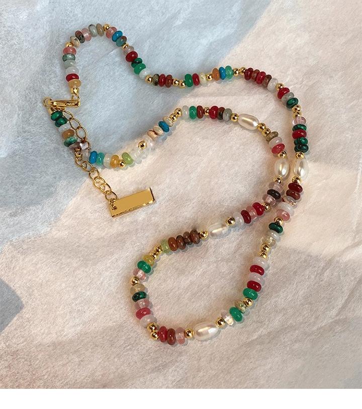 Mixed Color Natural Stone Freshwater Pearl Necklace