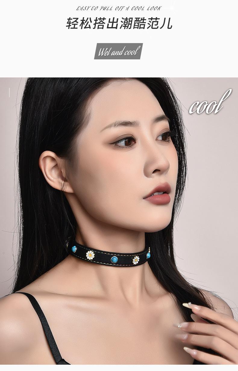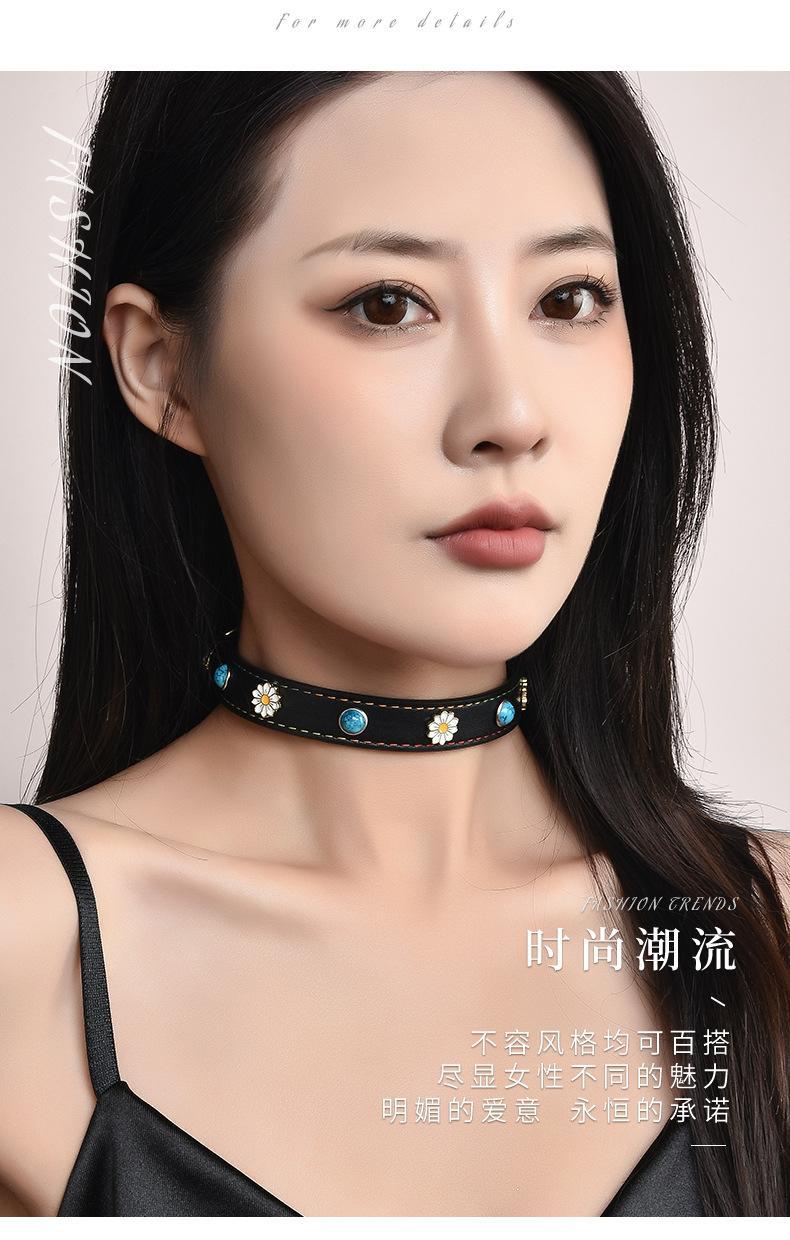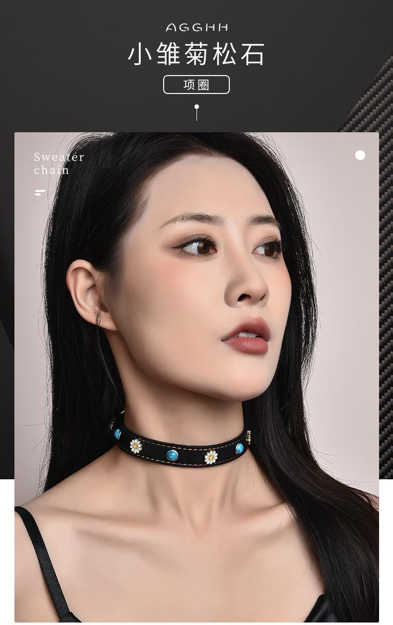 Collar de clavícula de cuero turquesa con hebilla de flor dorada, directo de fábrica, collar de moda con personalidad, joyería de marca de moda
