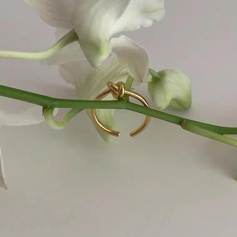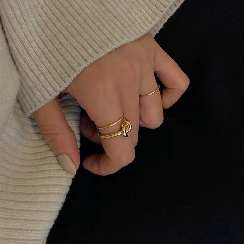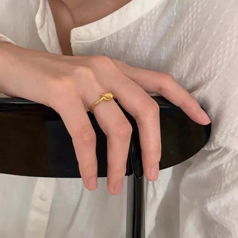 Anillo pequeño anudado estilo coreano, estilo frío, simple, moderno, duradero, abierto, para mujer, anillo dorado informal que combina con todo.