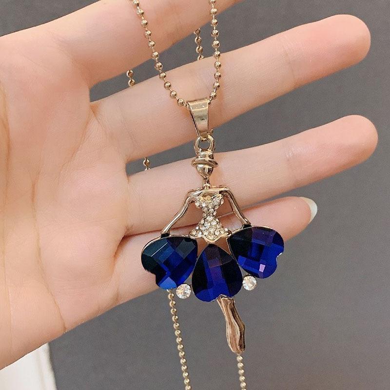 Coffee Gold blue crystal, Silver Diamond brand, Retro personalized necklace