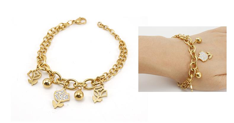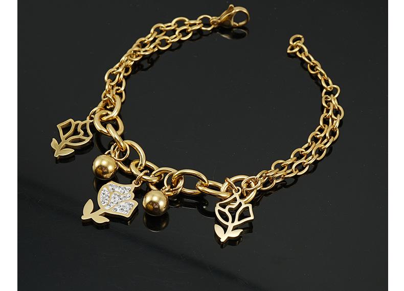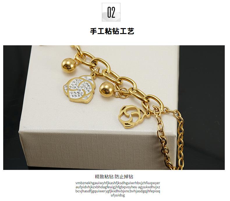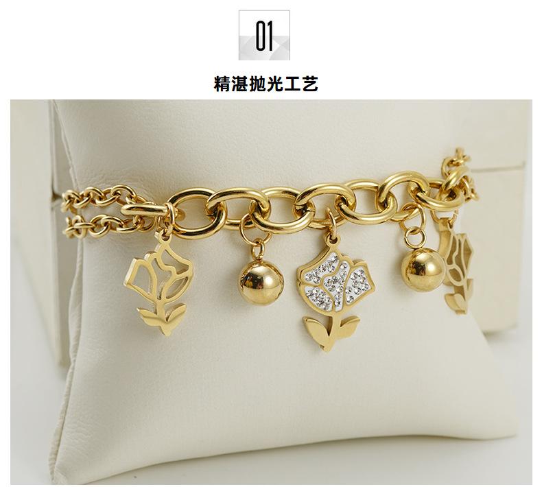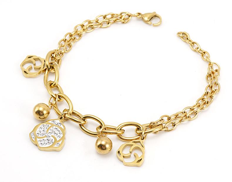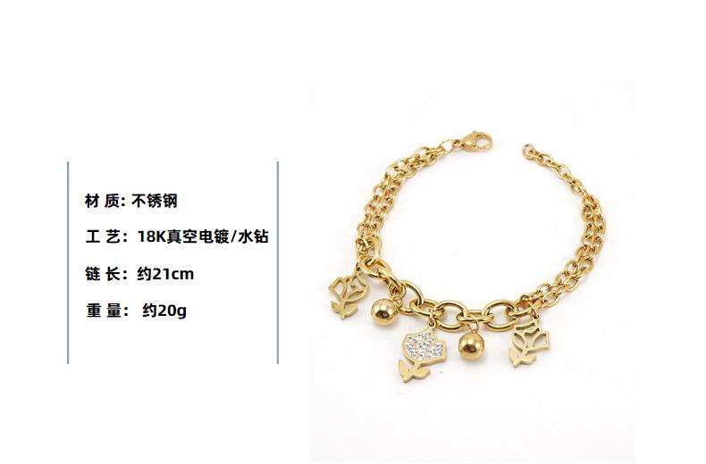 Pulsera de acero inoxidable de moda europea y americana con diamantes adhesivos, pulsera de rosa dorada para mujer, pulsera de acero de titanio hip-hop, joyería en stock al por mayor