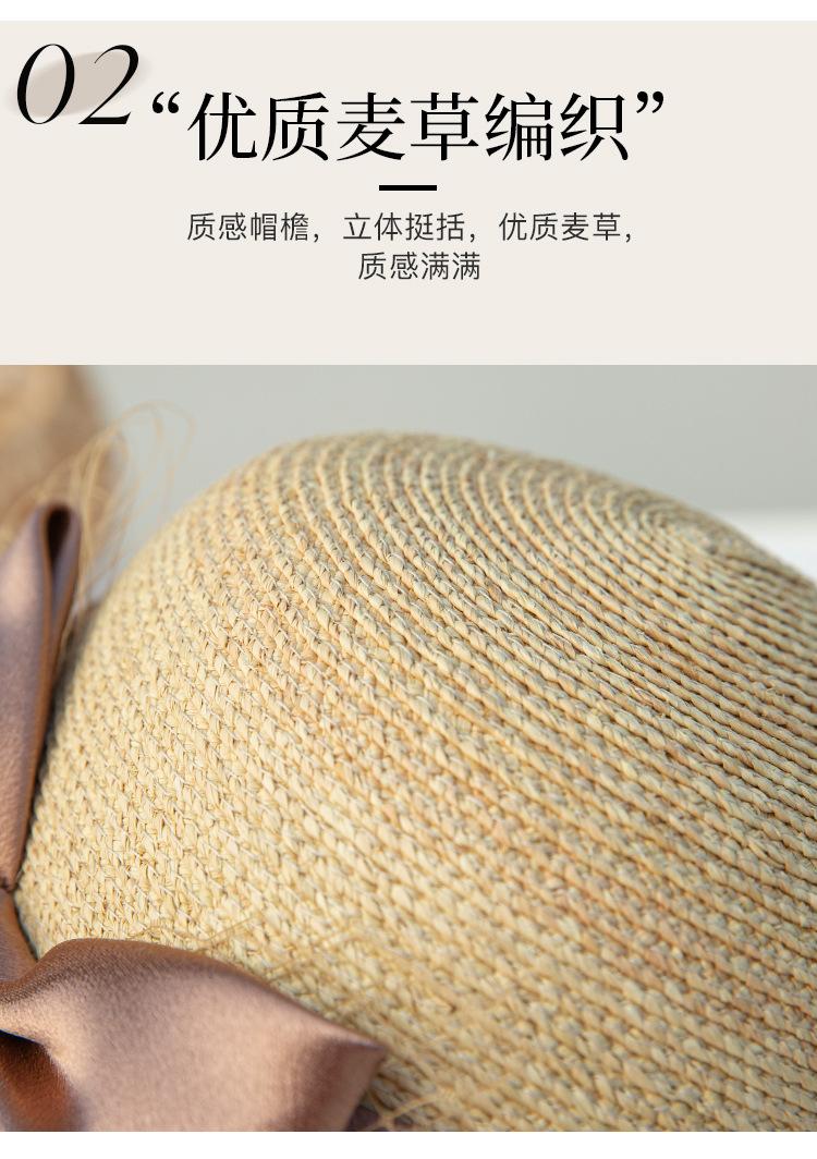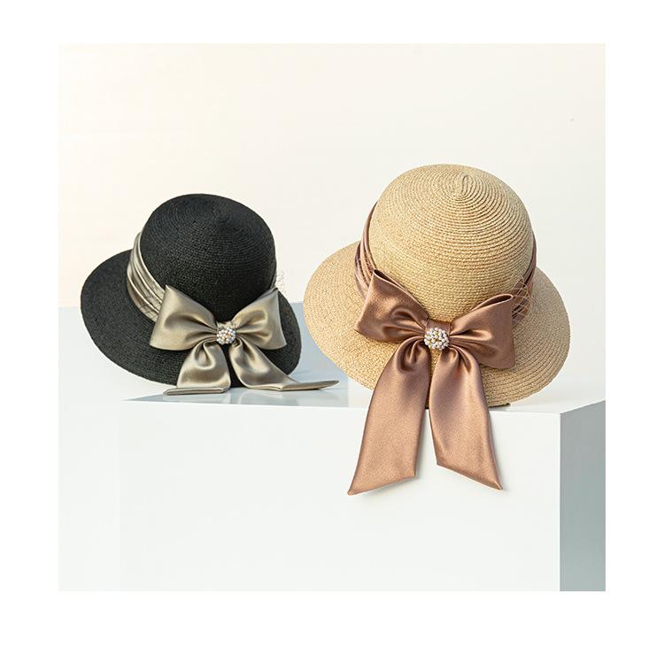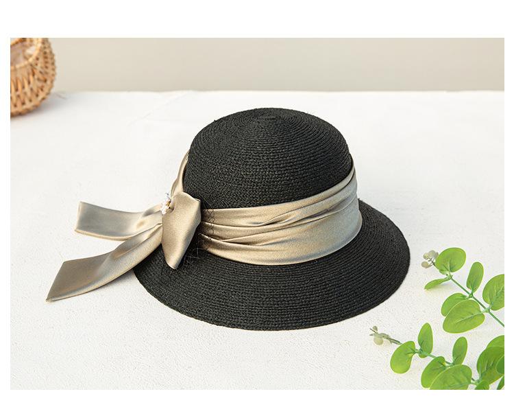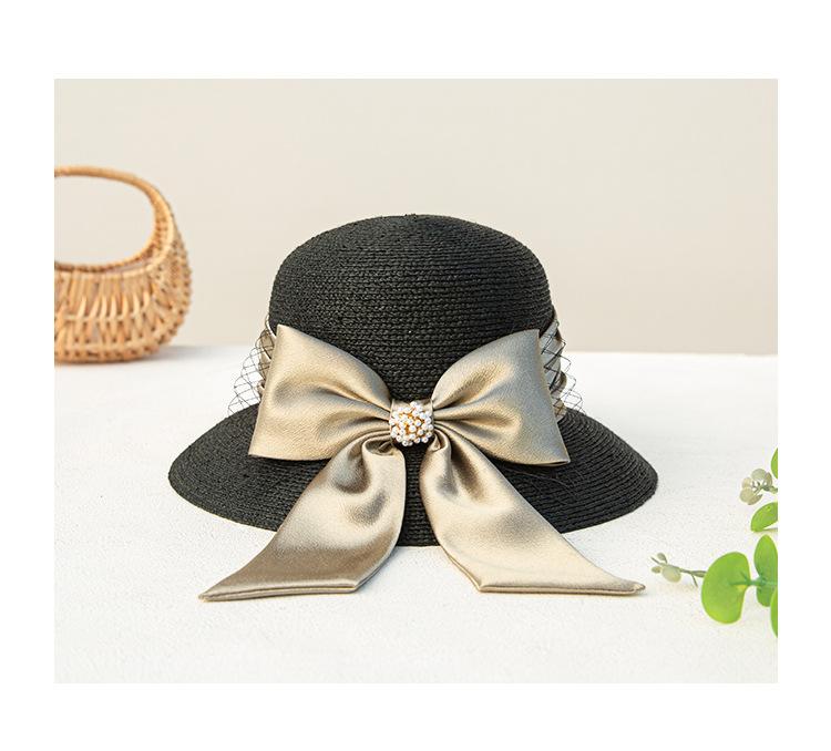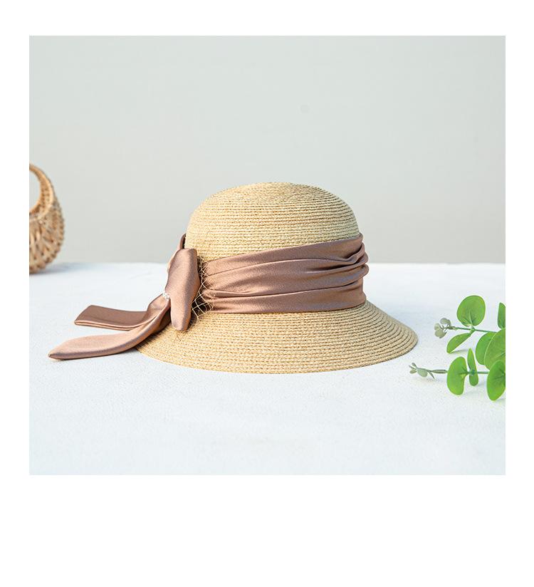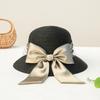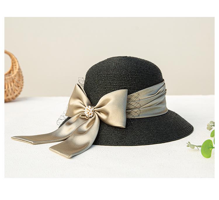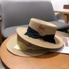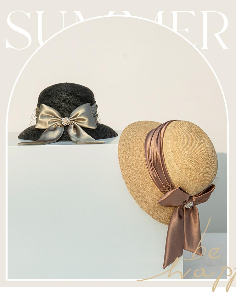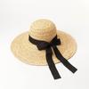 Sombrero de paja con lazo francés de verano, protección solar, tejido de paja, elegante, estilo Hepburn, rafia, venta al por mayor