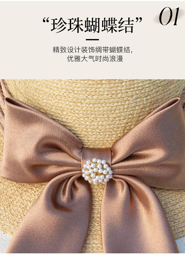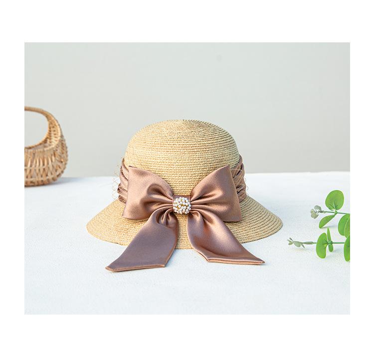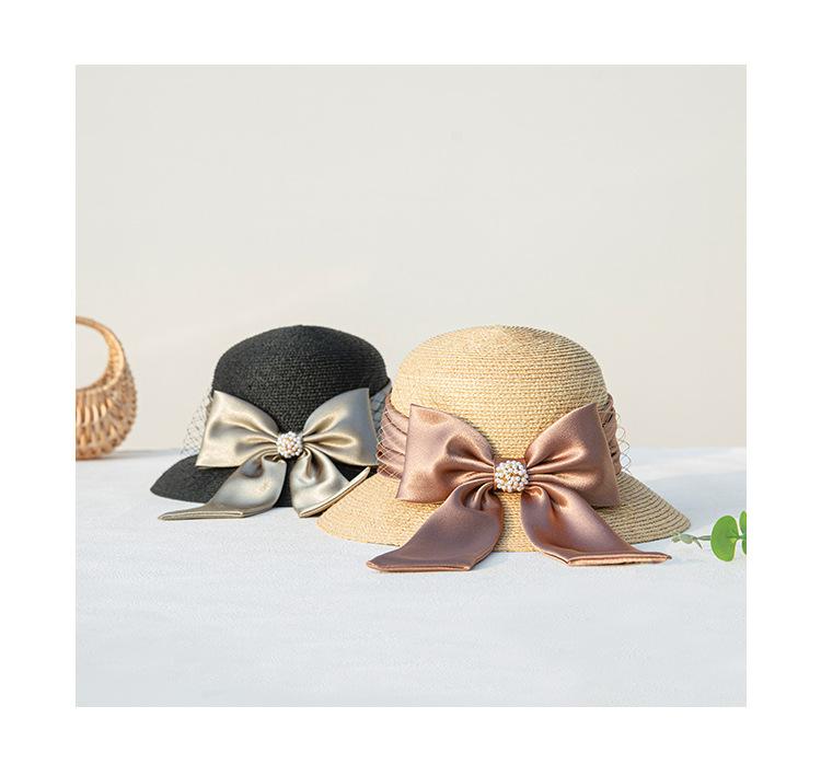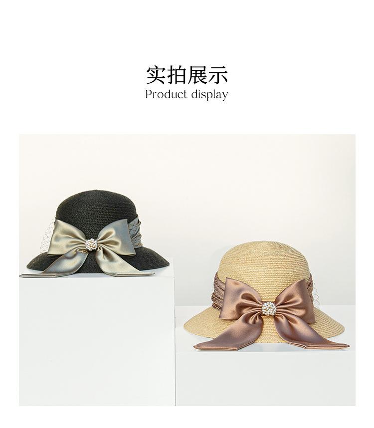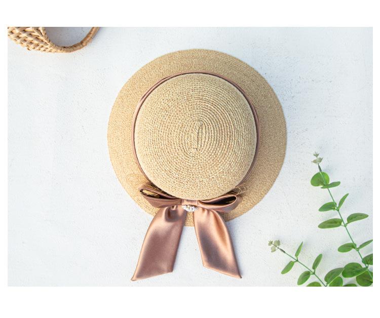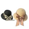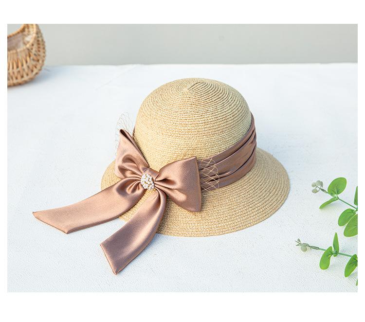 Sombrero de paja con lazo francés de verano, protección solar, tejido de paja, elegante, estilo Hepburn, rafia, venta al por mayor