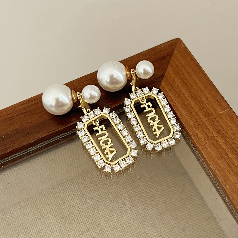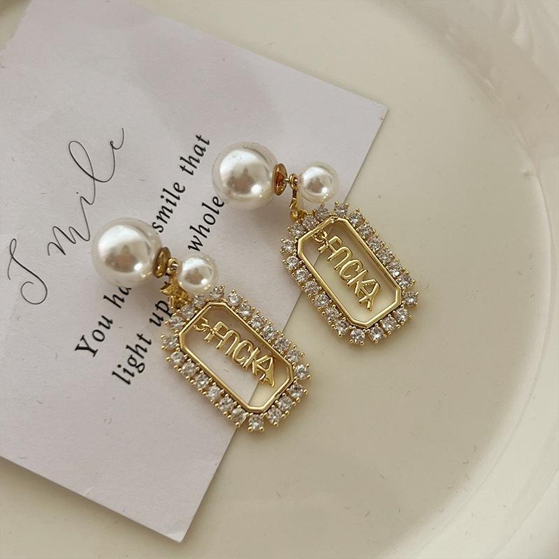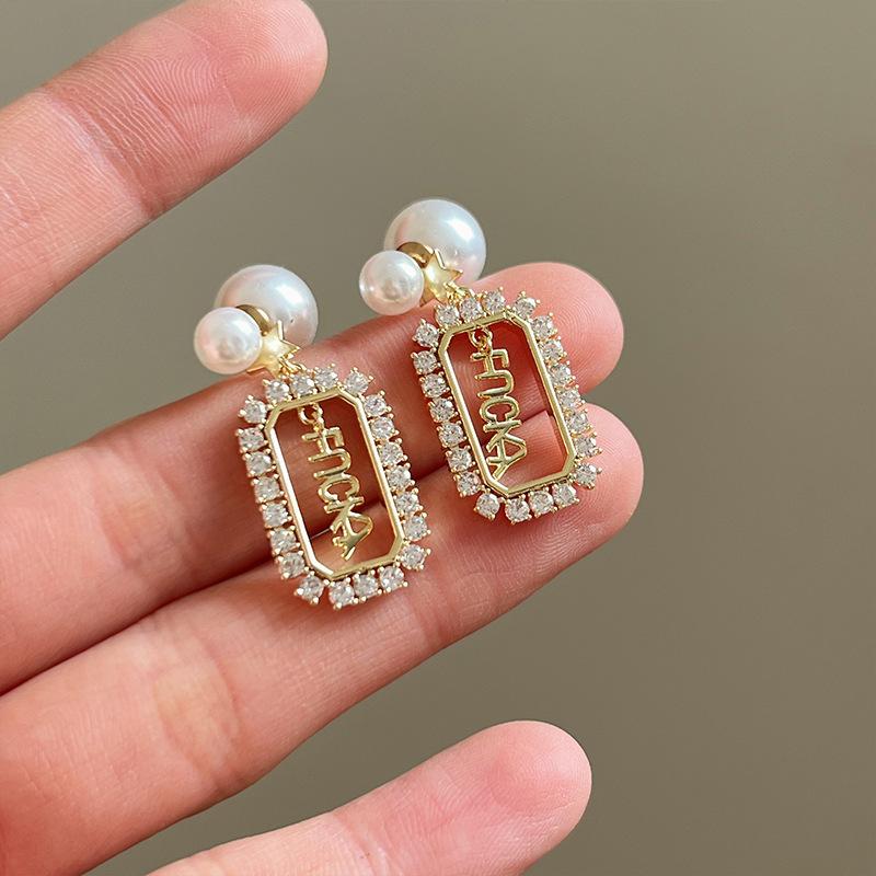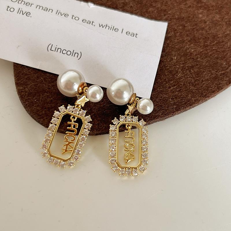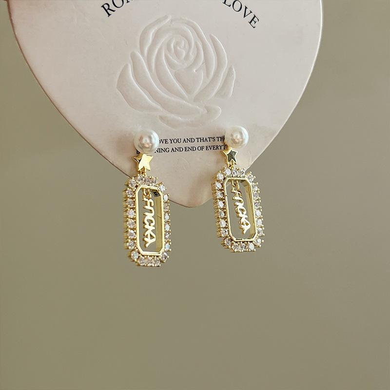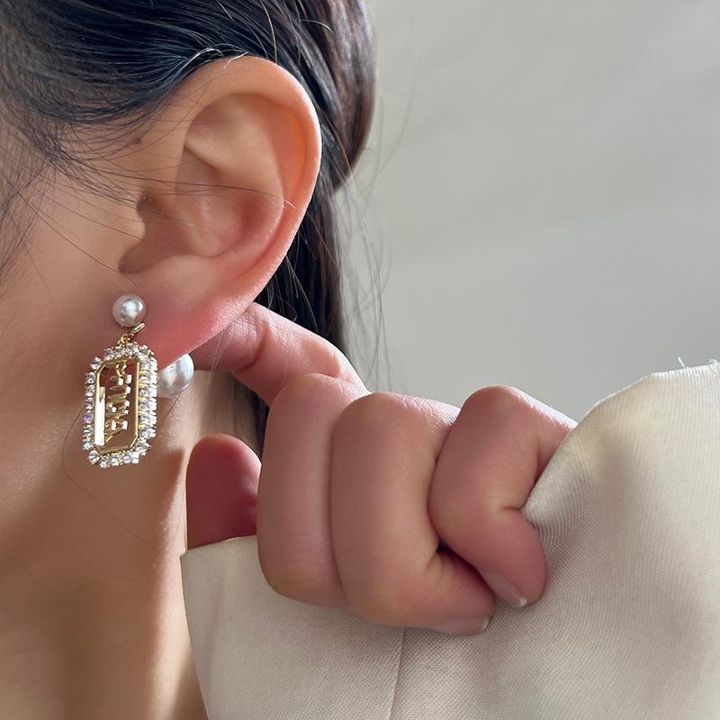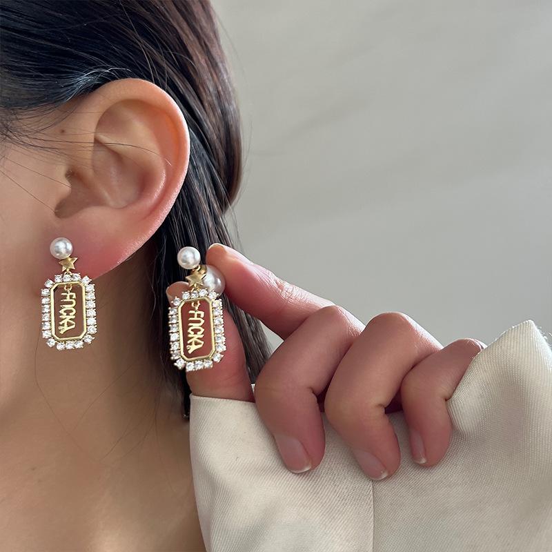 Pendientes de la suerte con letras francesas para mujer, de red roja, de perla de alta calidad, ligeros, de lujo, con aguja de plata, nueva moda 2021.