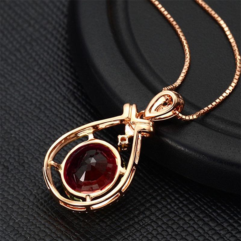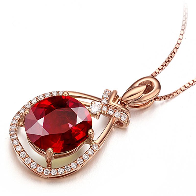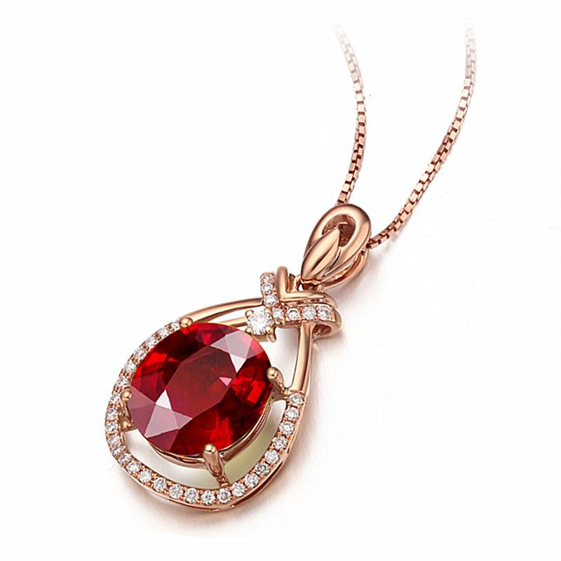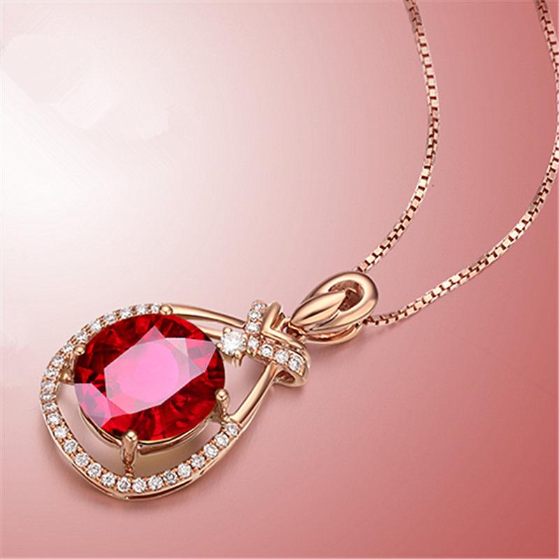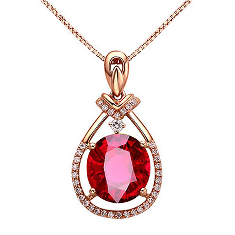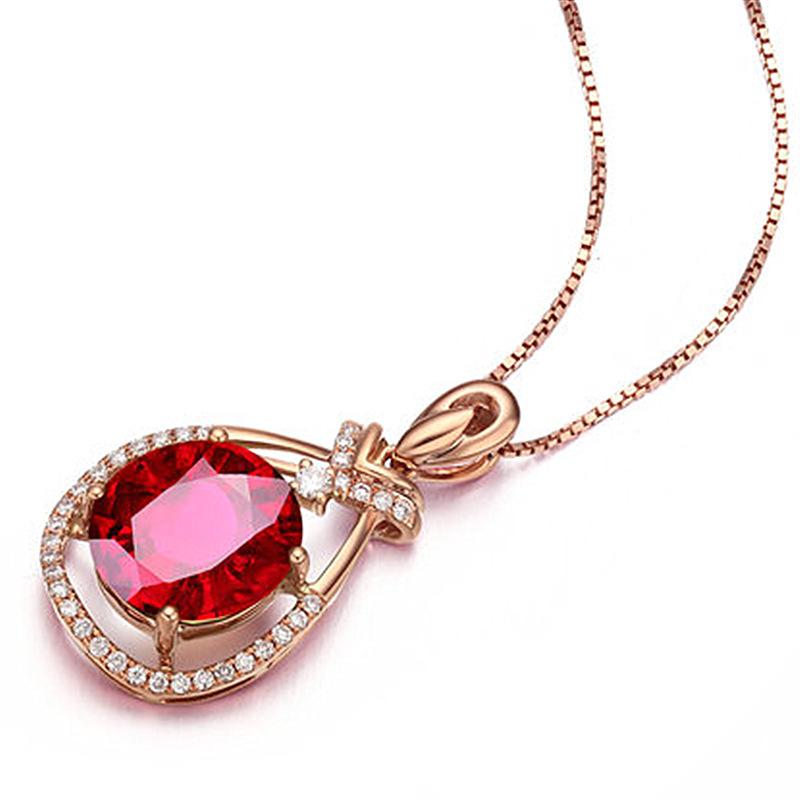 Nuevo colgante elegante de turmalina y rubí con forma de concubina imperial europea y americana chapado en oro rosa de 18 quilates con forma de huevo y perforación completa para banquetes.