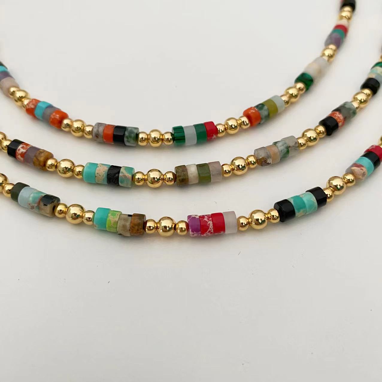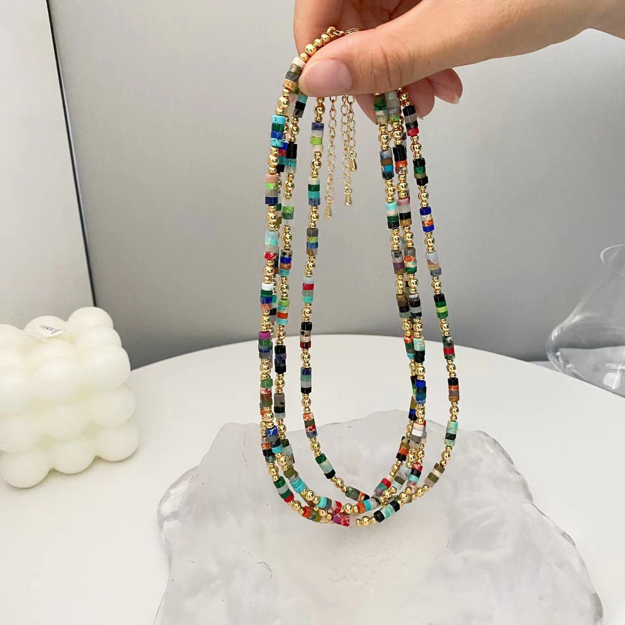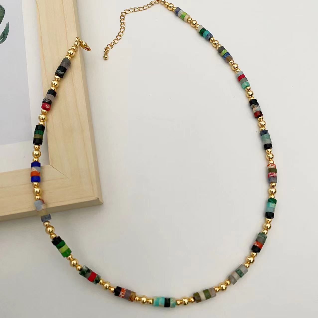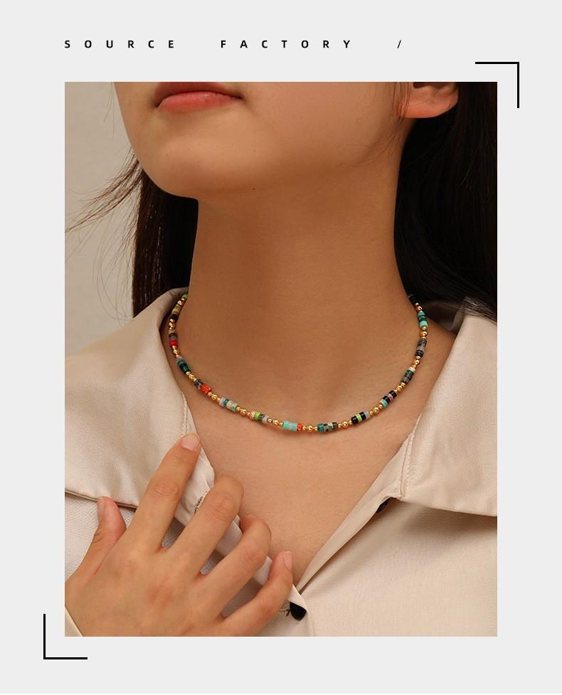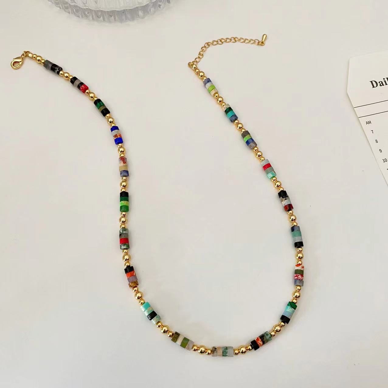 Collar retro bohemio de cuentas de piedra natural coloridas para mujer, collar de lujo ligero de nicho de estilo ins de alta calidad que combina con todo