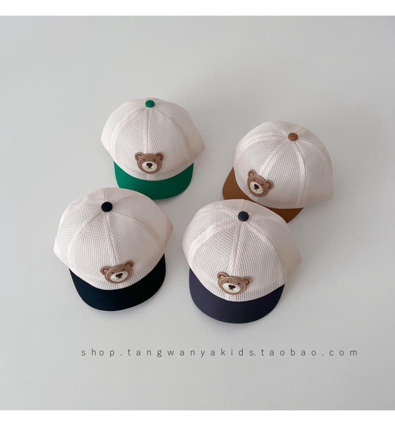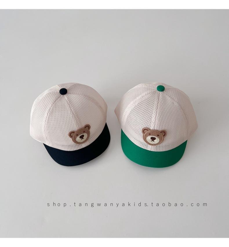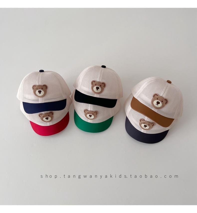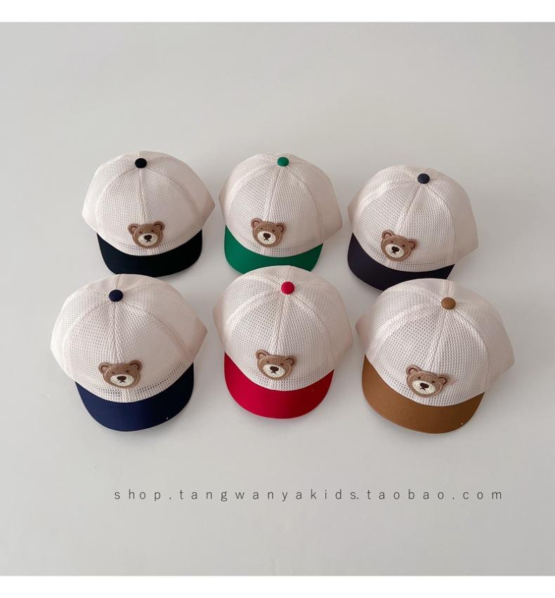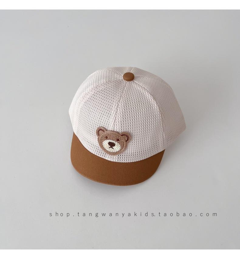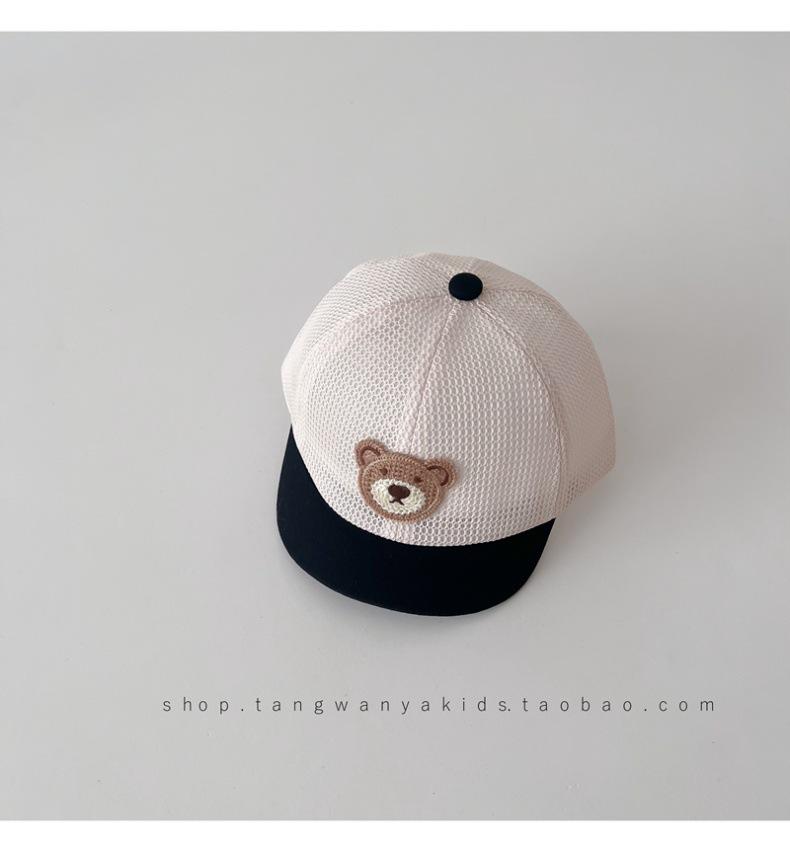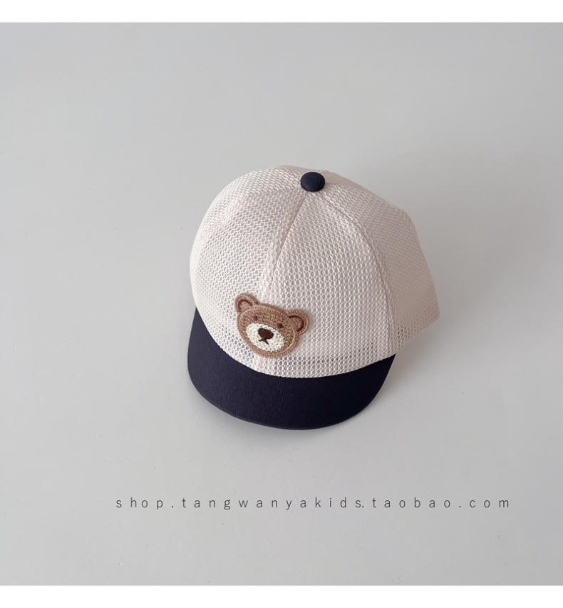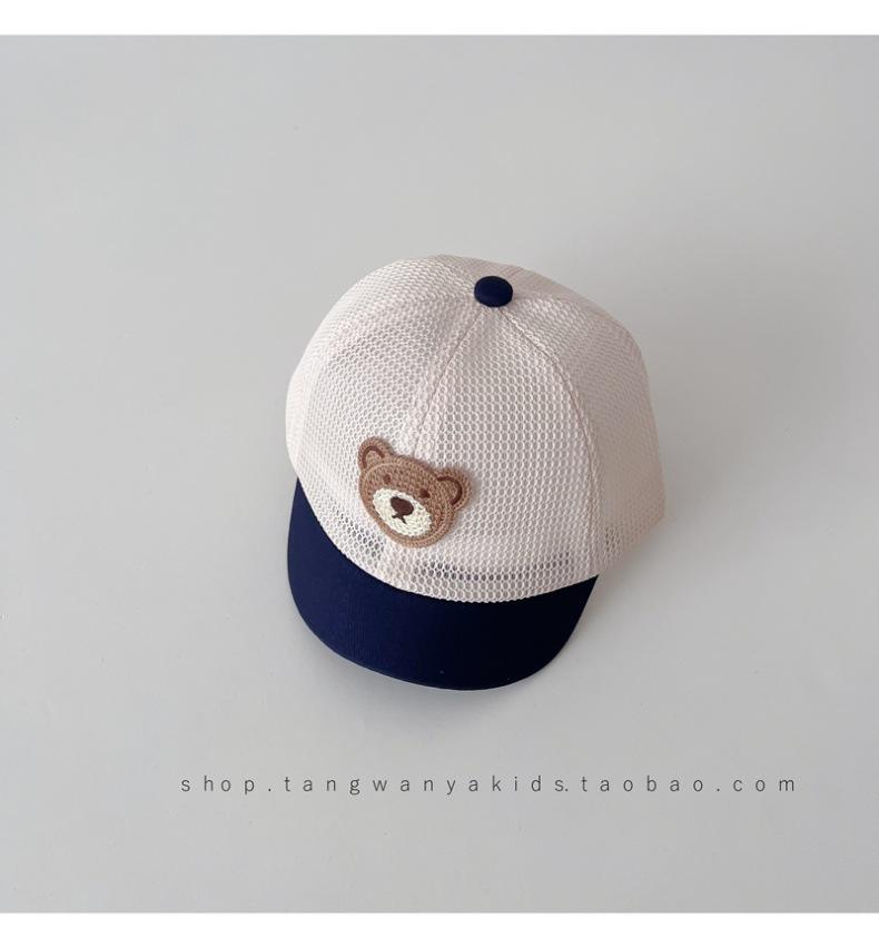 Gorra de malla con visera de verano para niños, linda gorra de sol fina para niñas con diseño de oso, gorra de béisbol con protección solar de estilo coreano para bebés y niños.