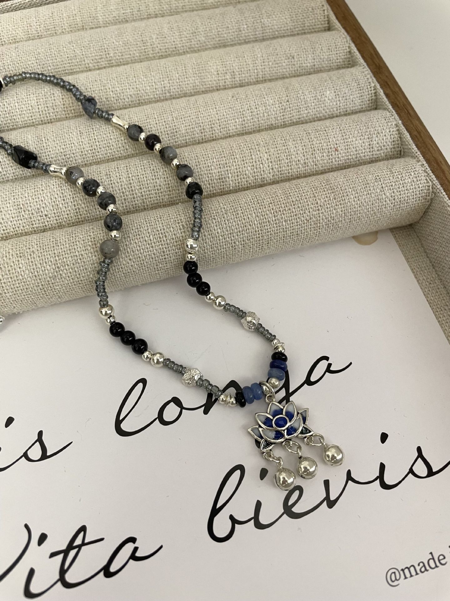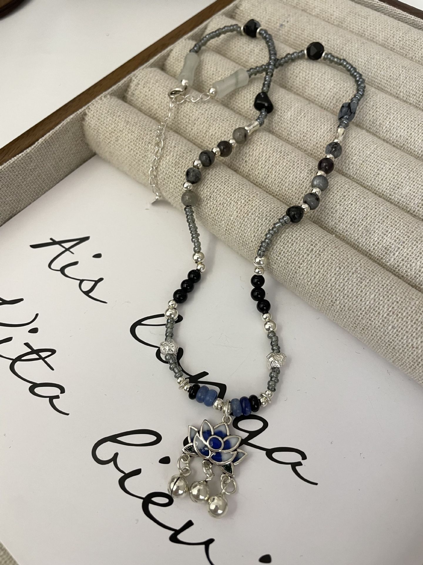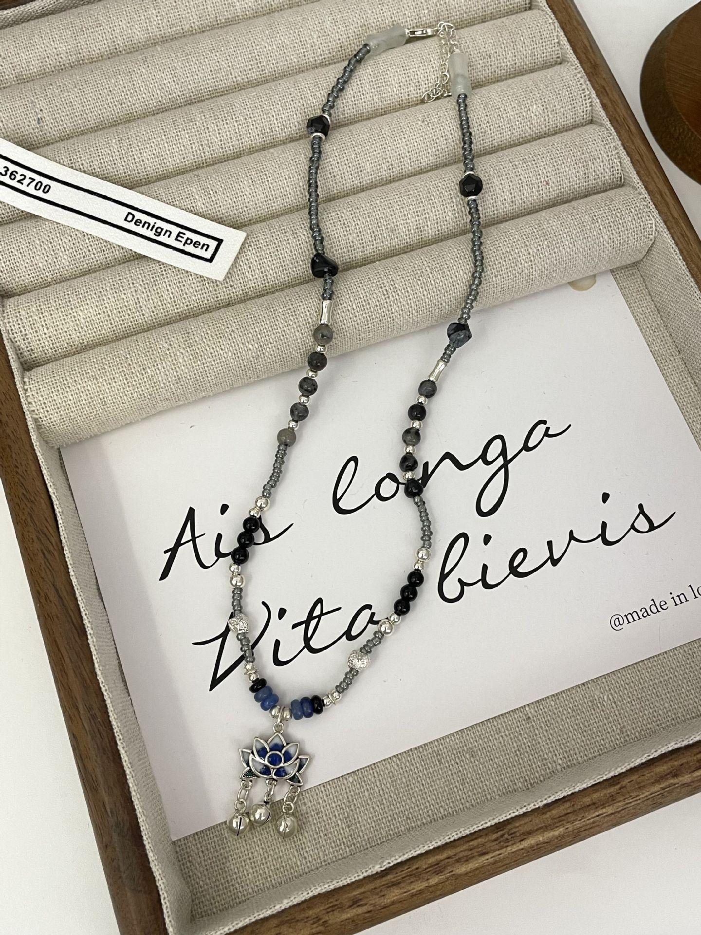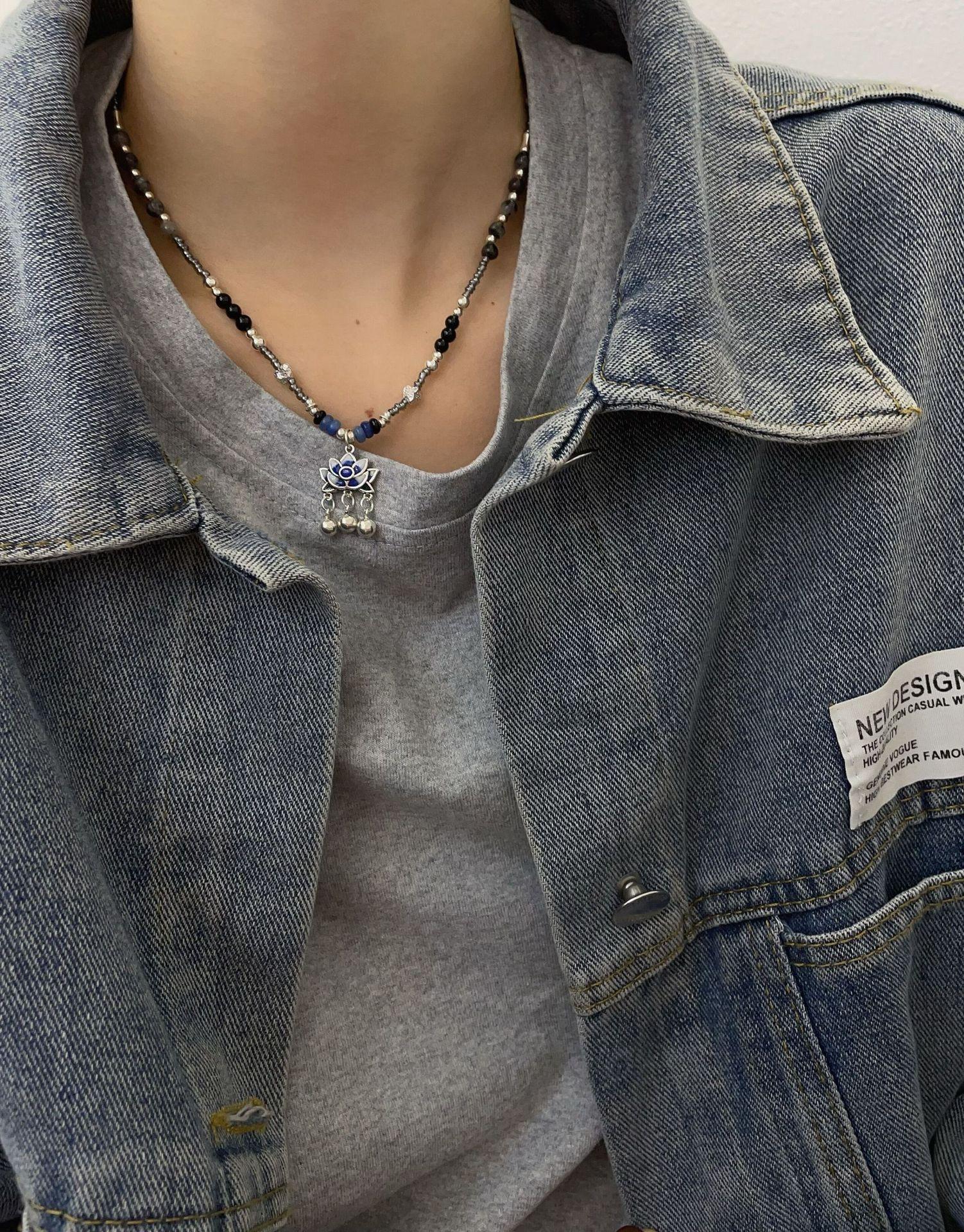 Nuevo collar de plata S925 estilo hip hop de estilo chino con personalidad original de ágata y piedra lunar con esmalte de loto epoxi