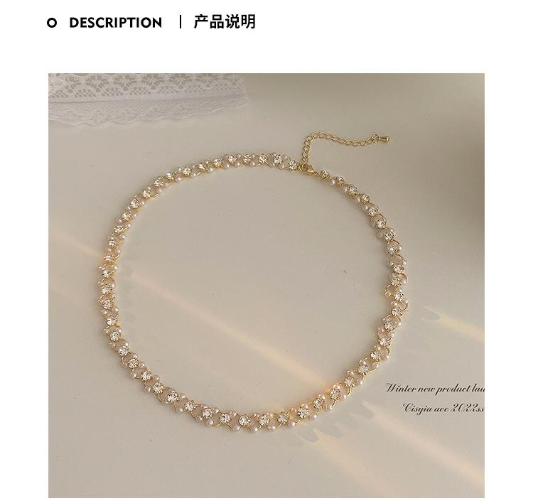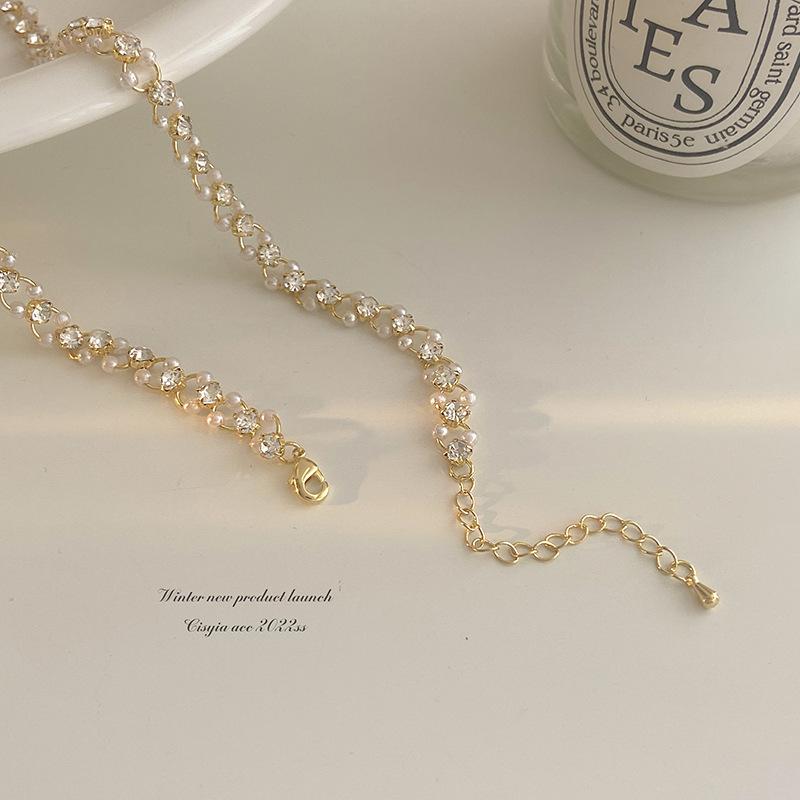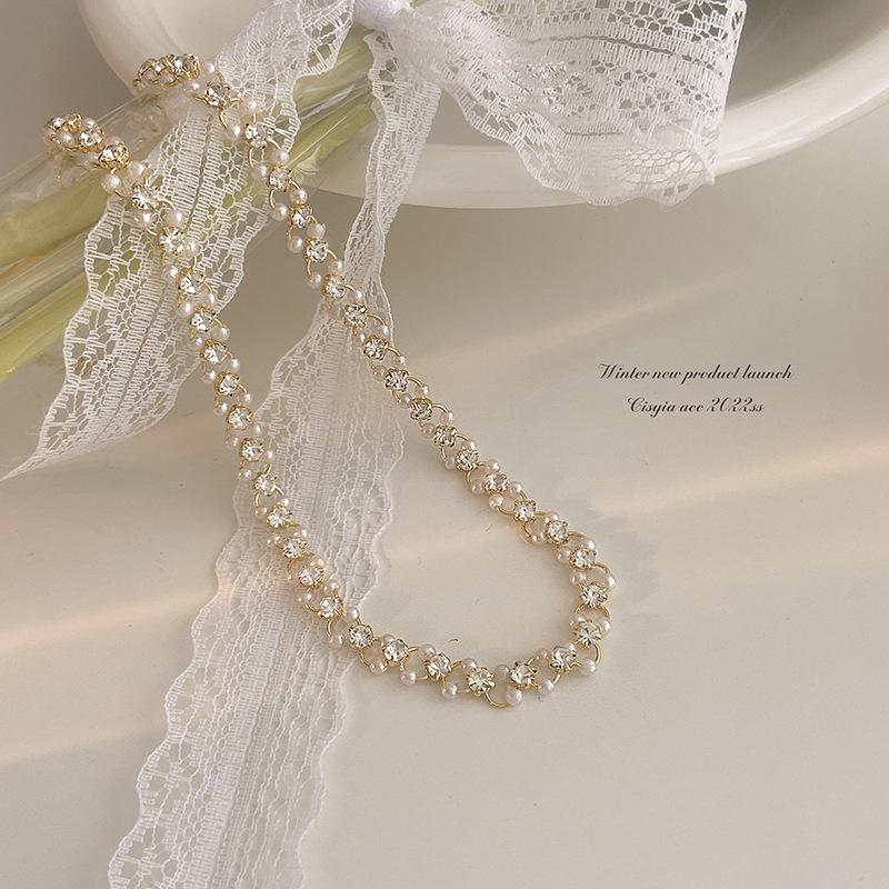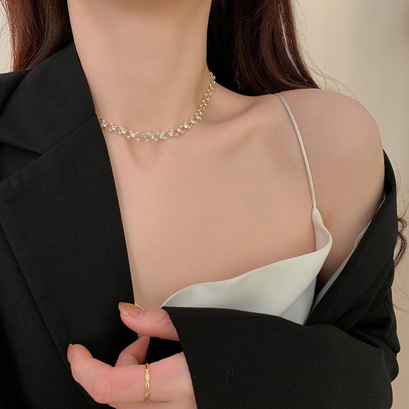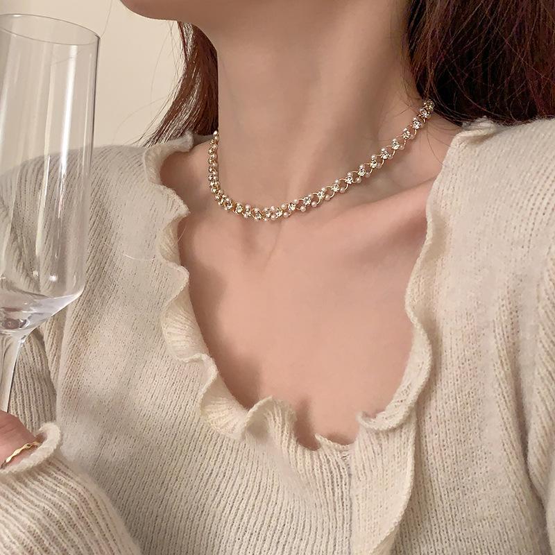 Collar de perlas pequeñas estilo francés con costura de diamantes de imitación, cadena de clavícula para mujer, estilo coreano, elegante collar con diseño de celebridad de Internet, gargantilla